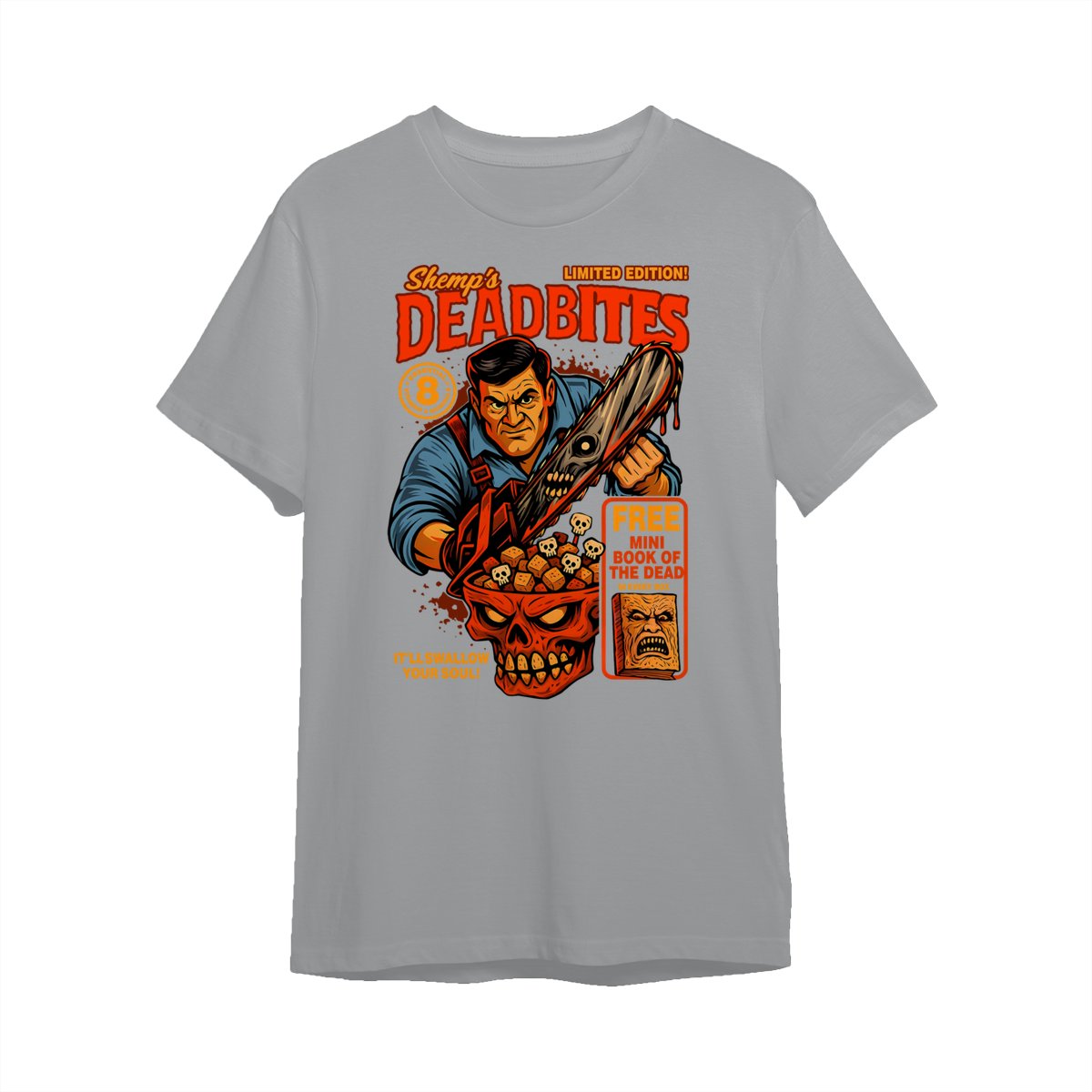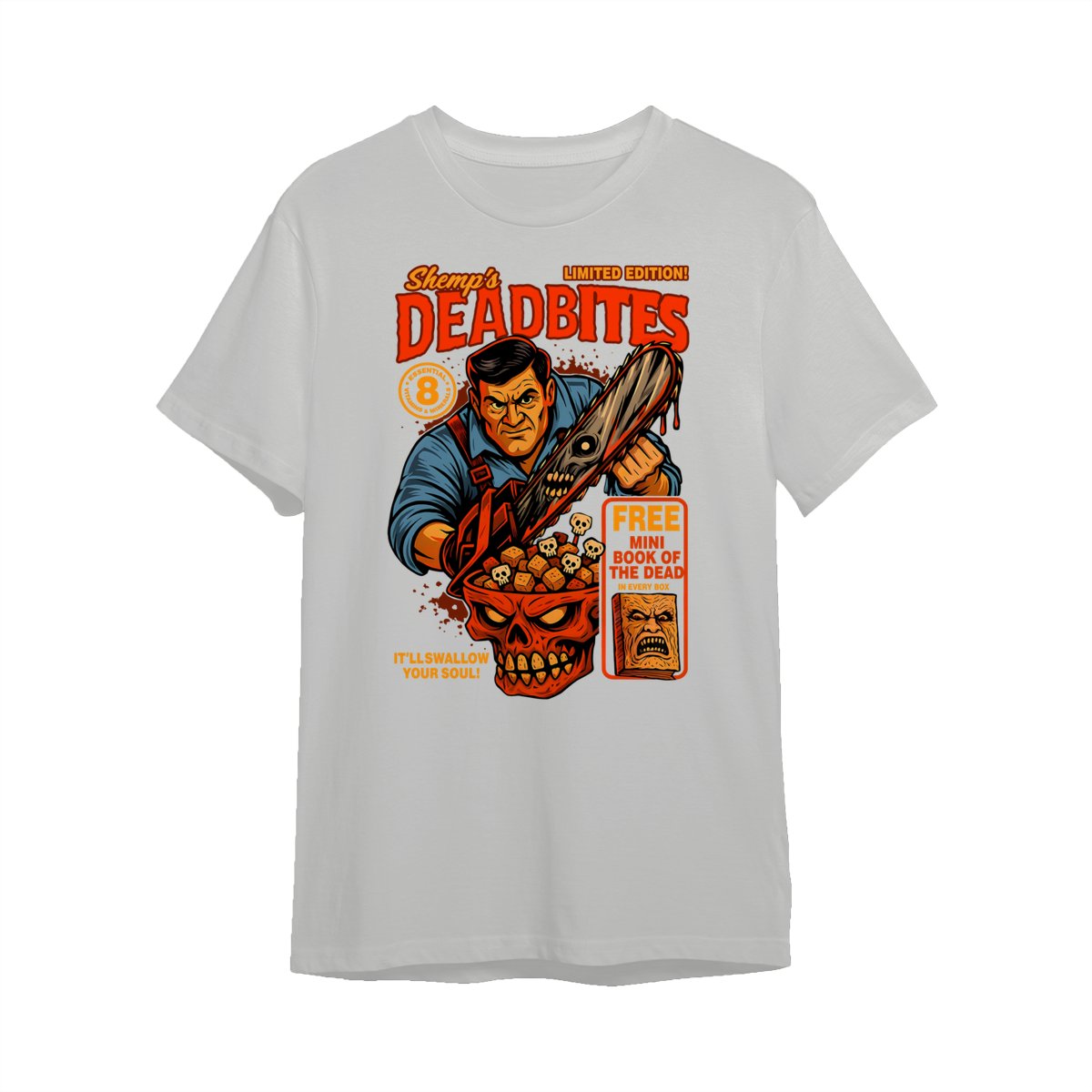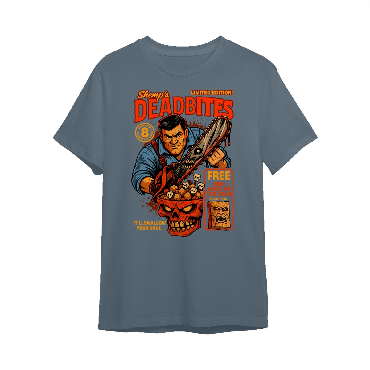 Shemp’s Deadbites Graphic T-Shirt – Retro Horror Cereal Parody Tee with Bold Cartoon Print, Gift For Women, For Mom, Womenswears