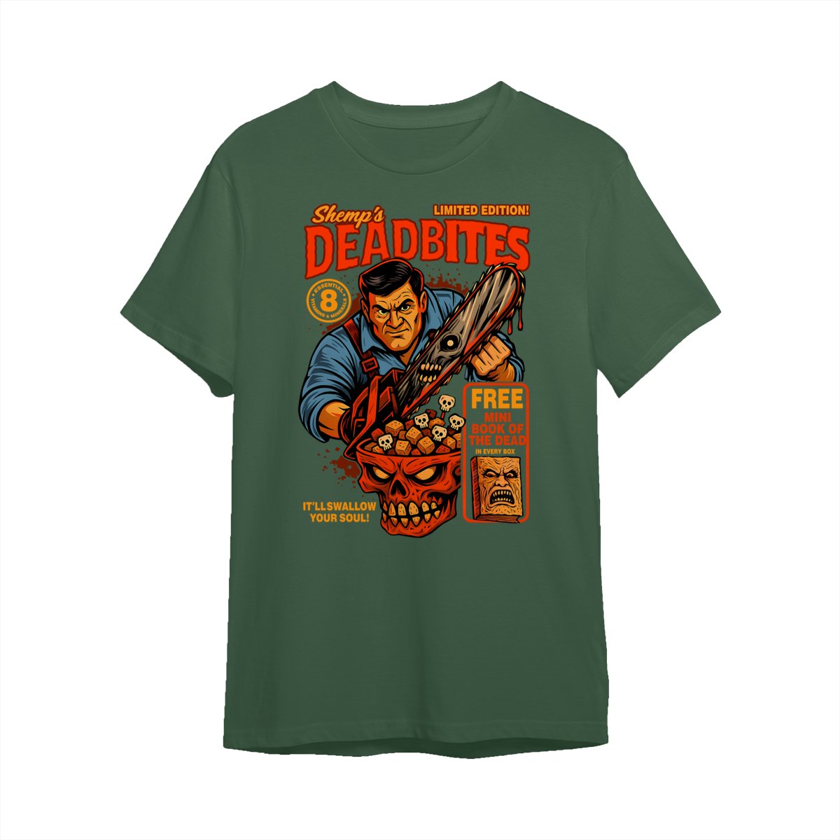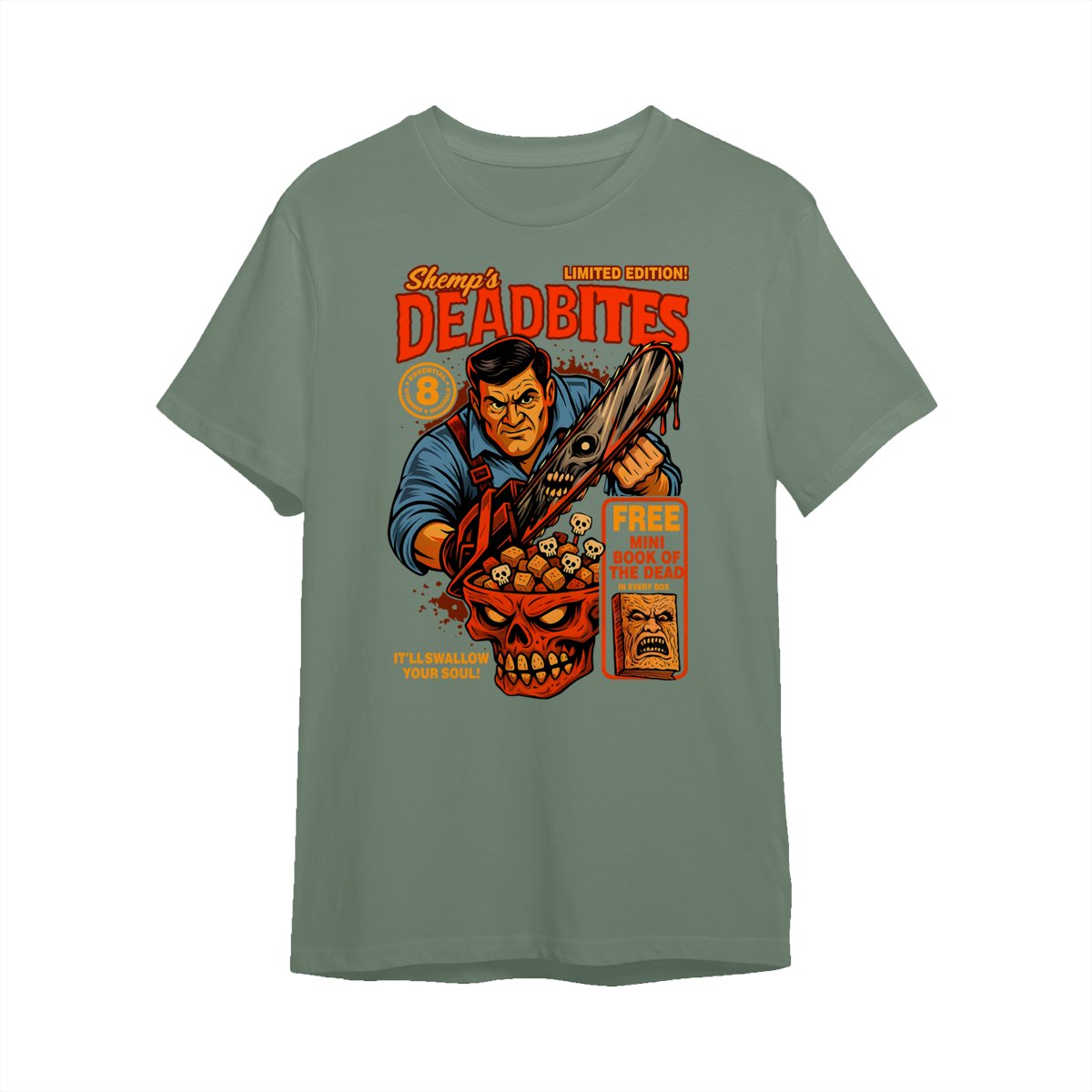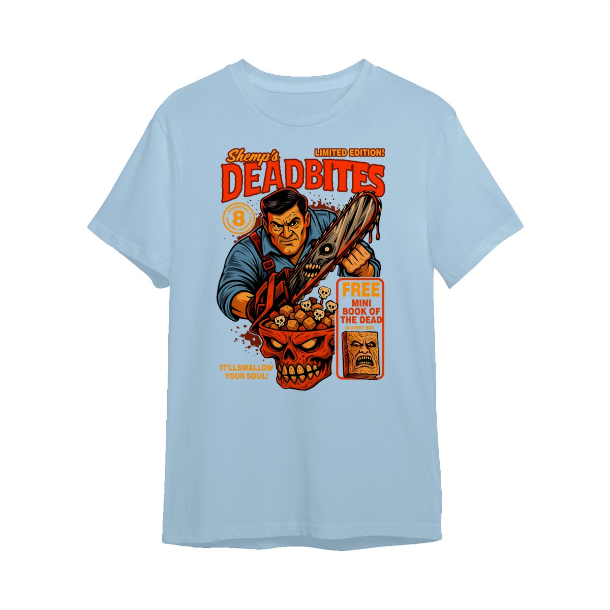 Shemp’s Deadbites Graphic T-Shirt – Retro Horror Cereal Parody Tee with Bold Cartoon Print, Gift For Women, For Mom, Womenswears