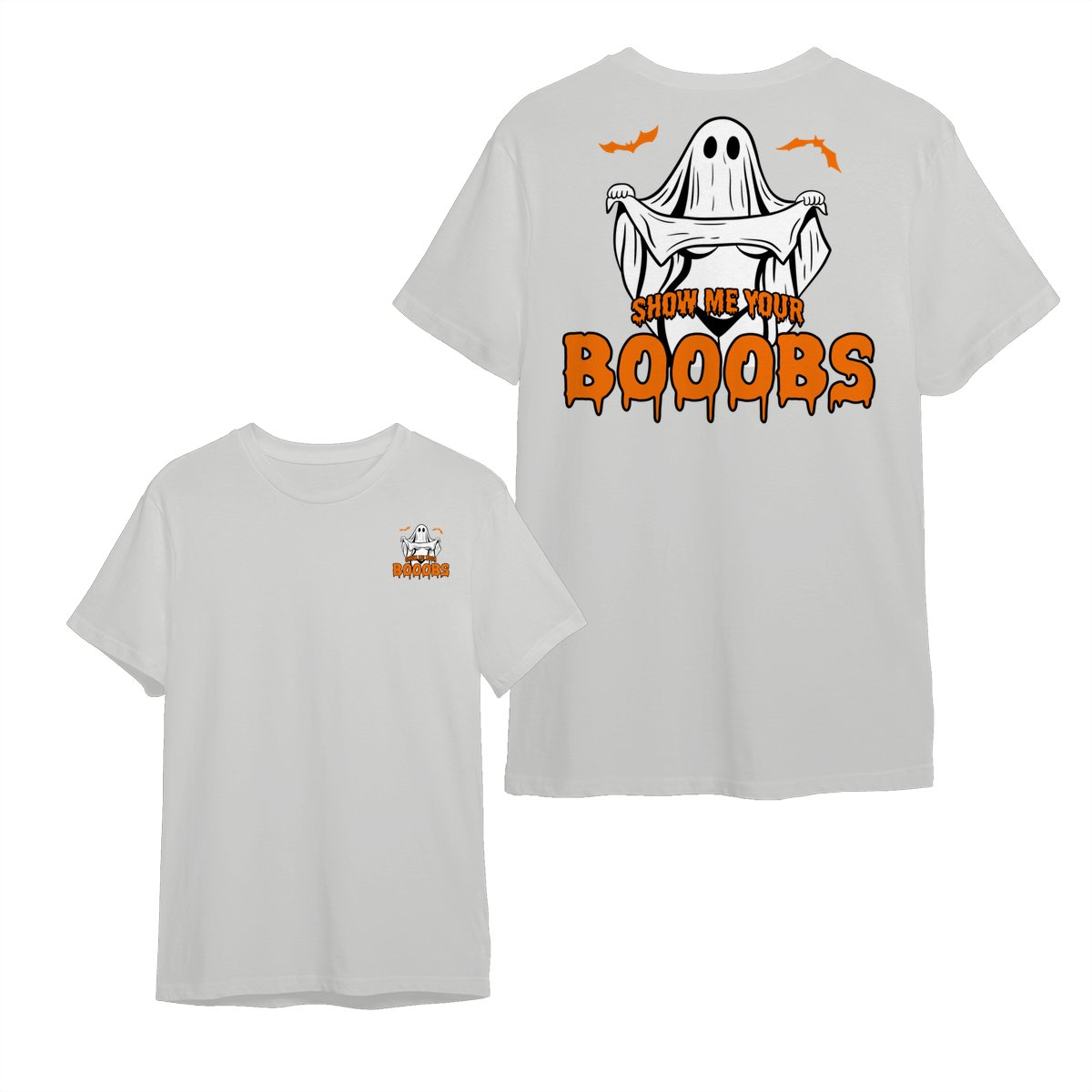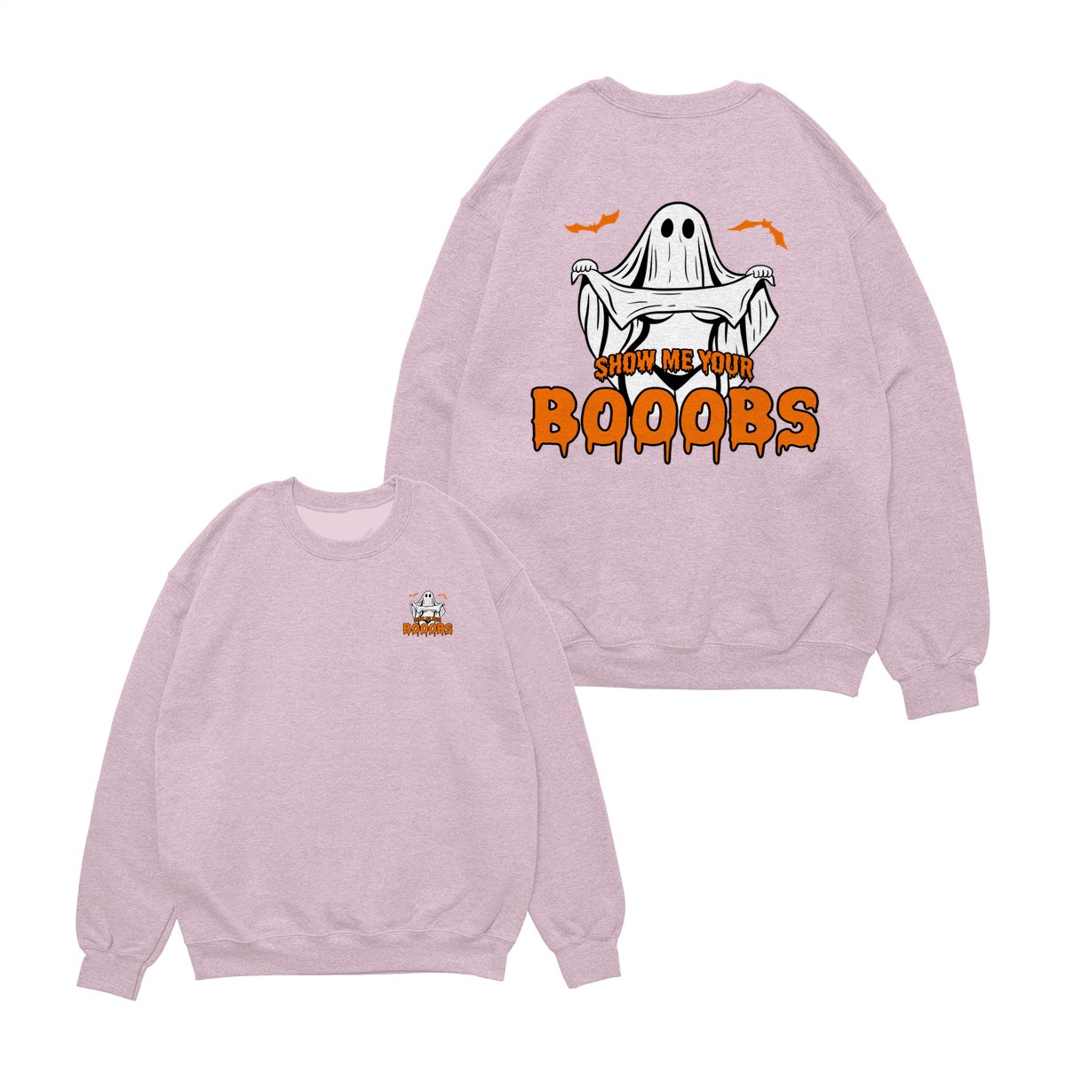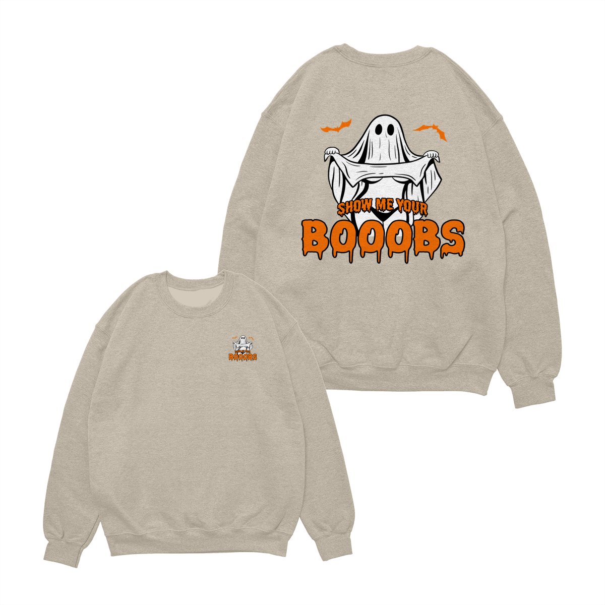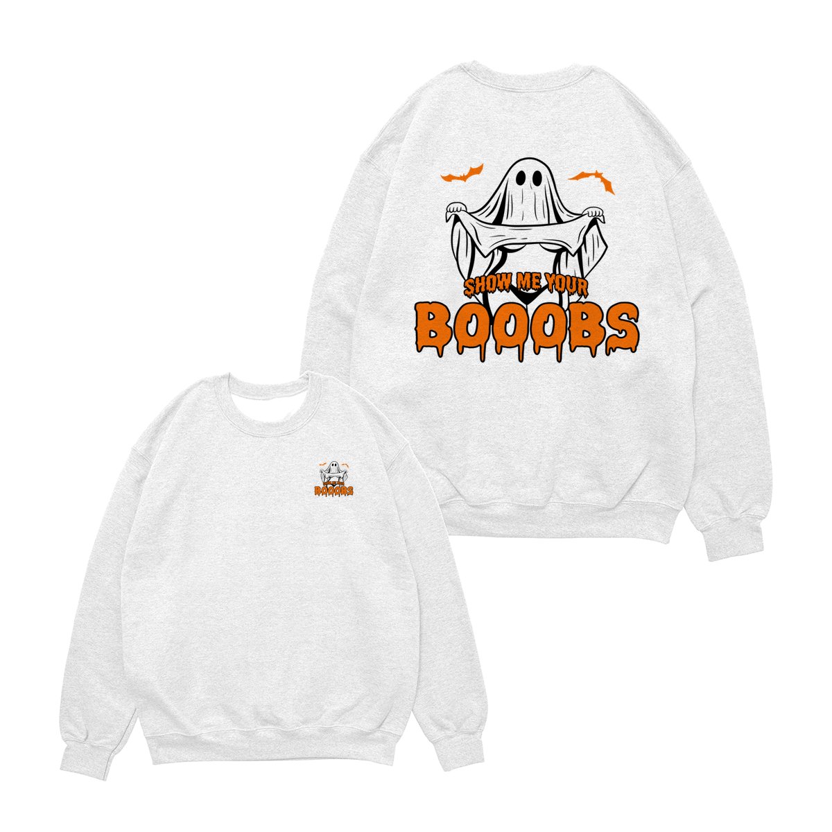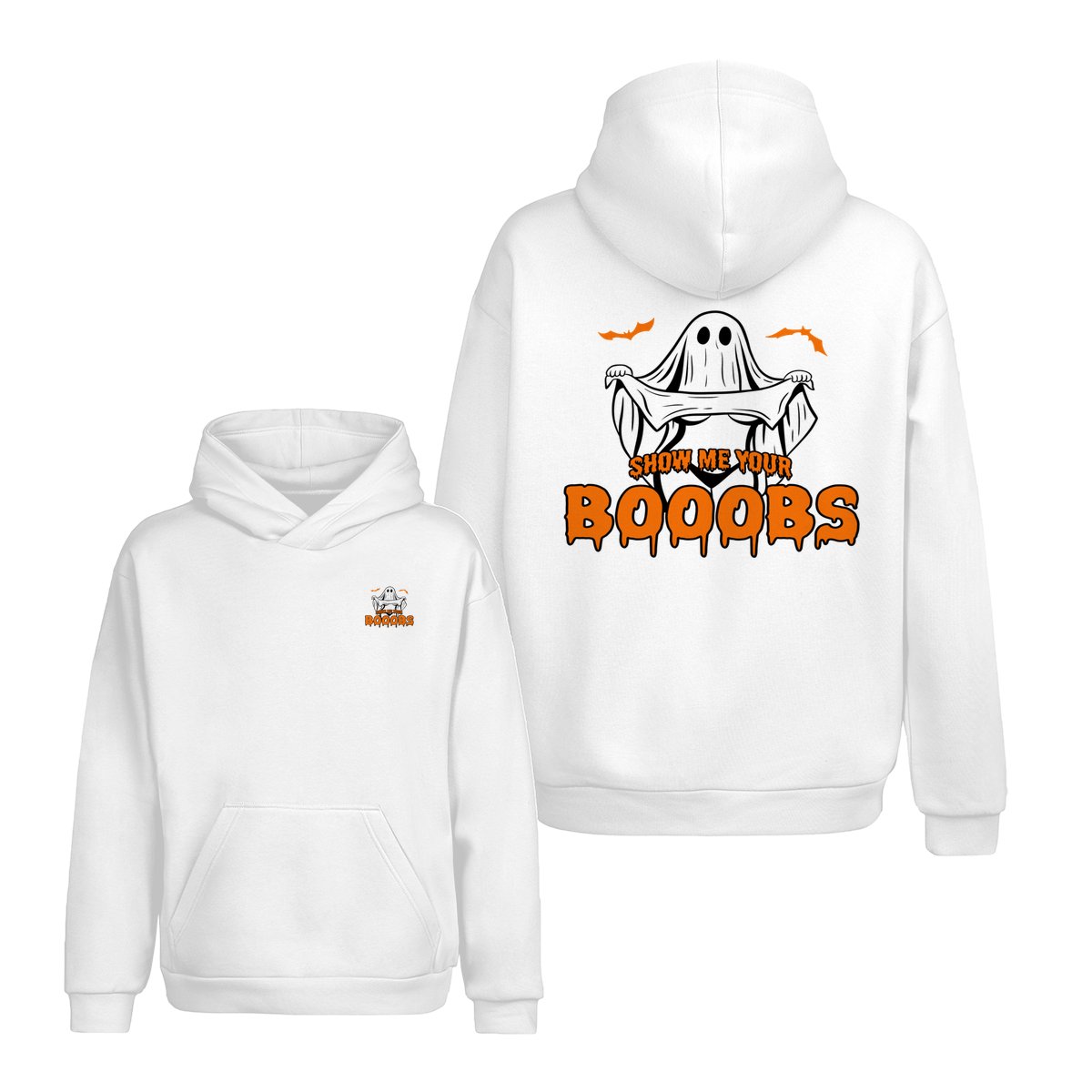 Show Me Your Boobie Ghost Shirt, Funny Ghost Unisex Hoodie for Halloween, Cute Vintage Pullover Shirt for Men and Women, Perfect for Celebrating the Spooky Season in Style
