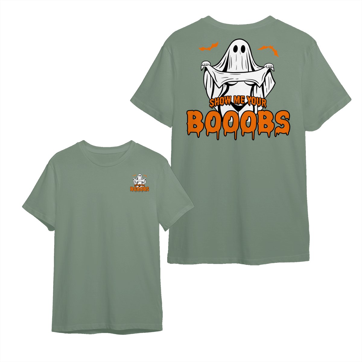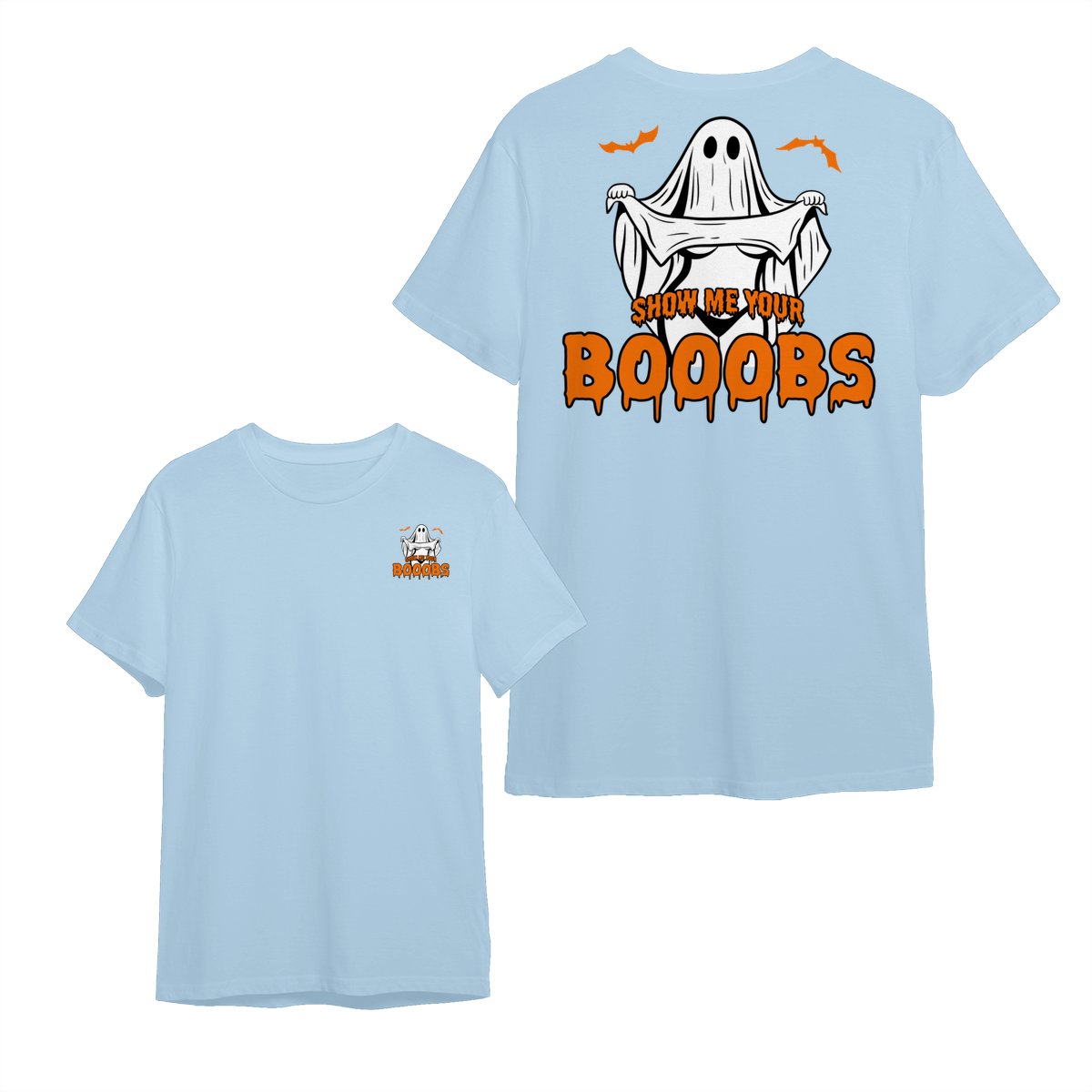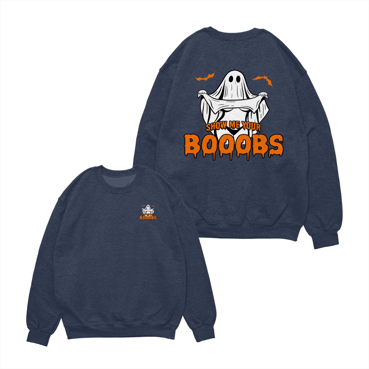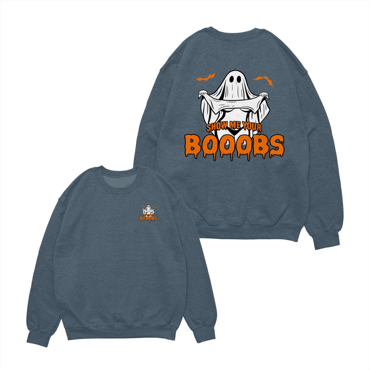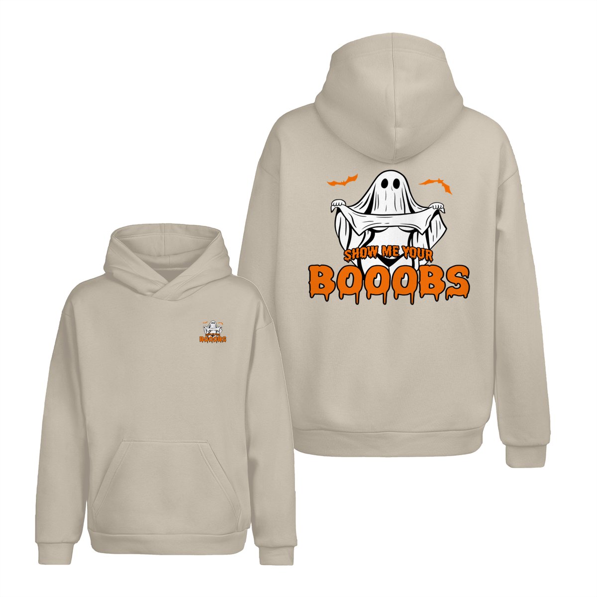 Show Me Your Boobie Ghost Shirt, Funny Ghost Unisex Hoodie for Halloween, Cute Vintage Pullover Shirt for Men and Women, Perfect for Celebrating the Spooky Season in Style