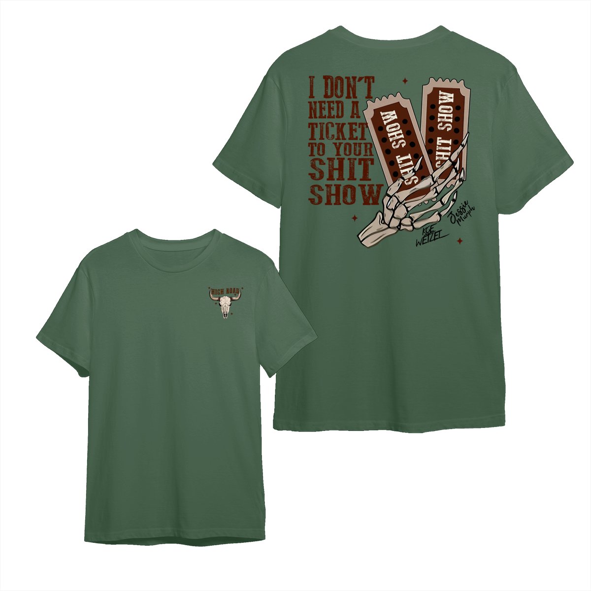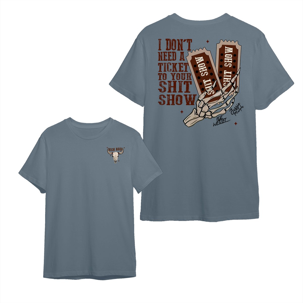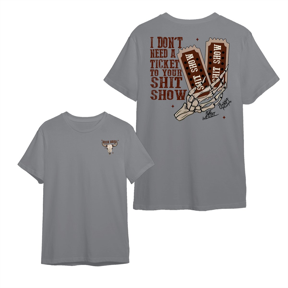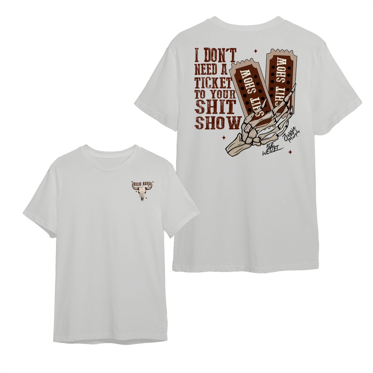 Sh*t Show TShirt/Sweatshirt/Hoodie – High Road Skeleton Graphic for Western Country Fans Who Love Dark Humor, Attitude Style, and a Bit of Sarcastic Edge in Fashion Menswear Tops