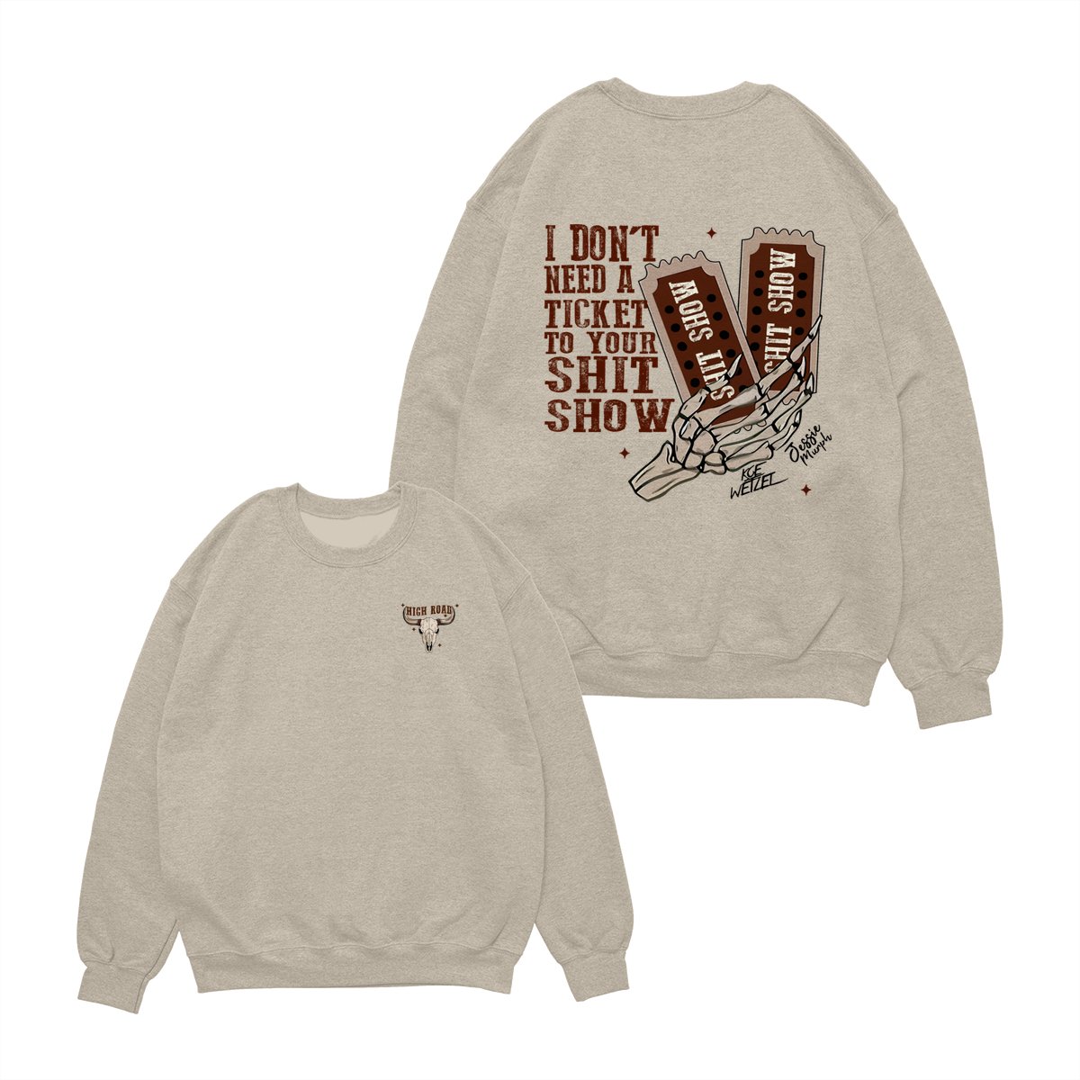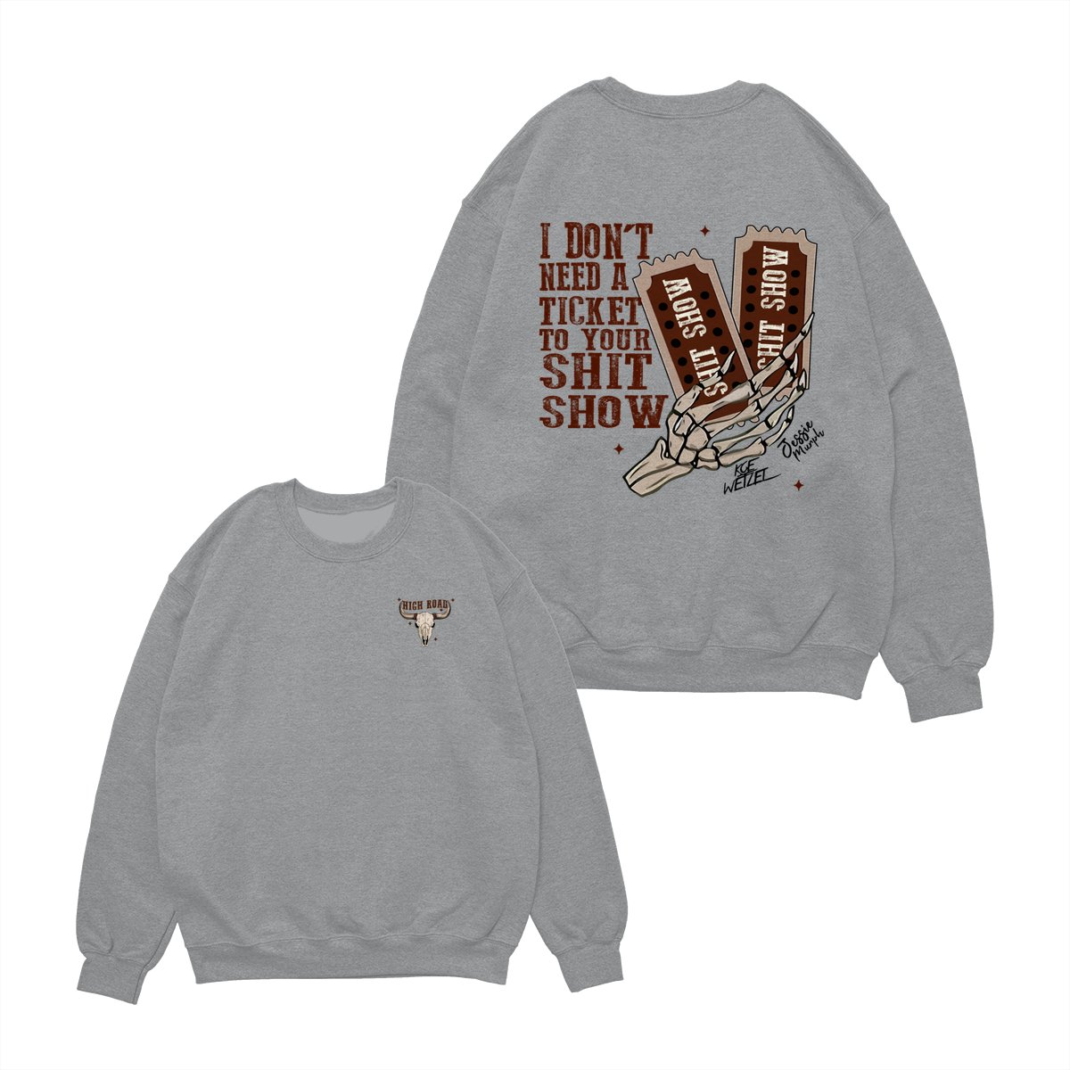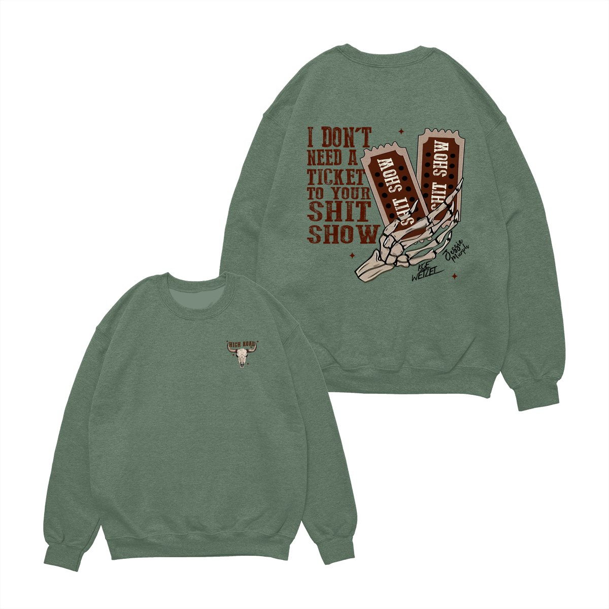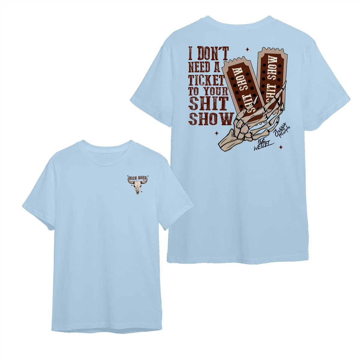 Sh*t Show TShirt/Sweatshirt/Hoodie – High Road Skeleton Graphic for Western Country Fans Who Love Dark Humor, Attitude Style, and a Bit of Sarcastic Edge in Fashion Menswear Tops