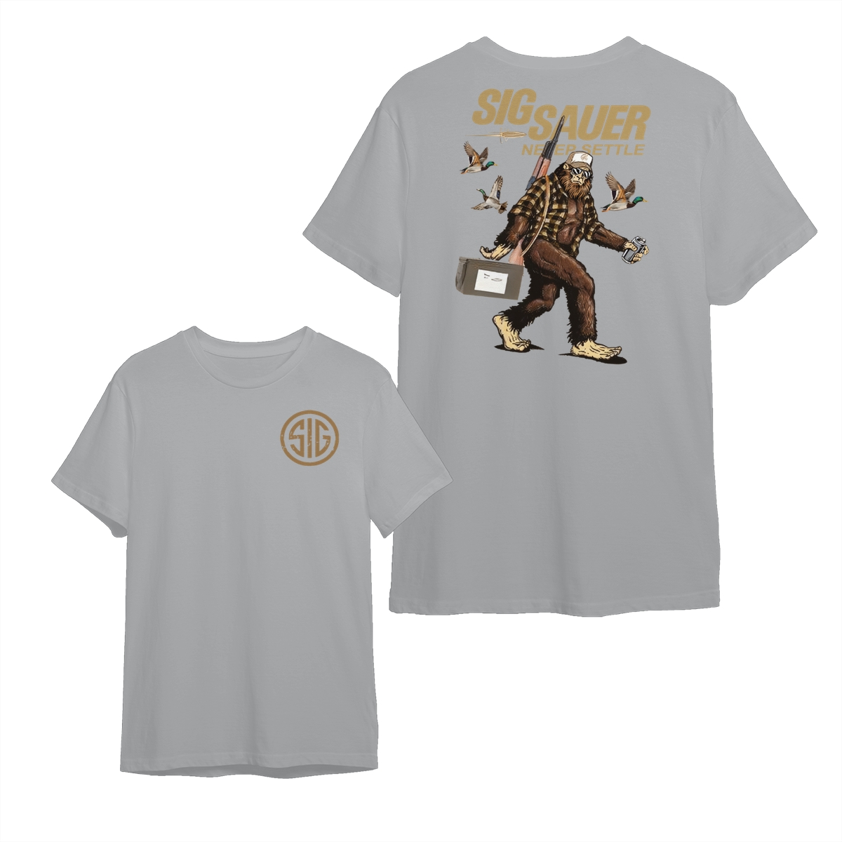 Sig Sauer Bigfoot Never Settle 2025 T-Shirt – Double-Sided Tactical Tee for Men, Rugged Outdoor Style & Top-Tier Menswear