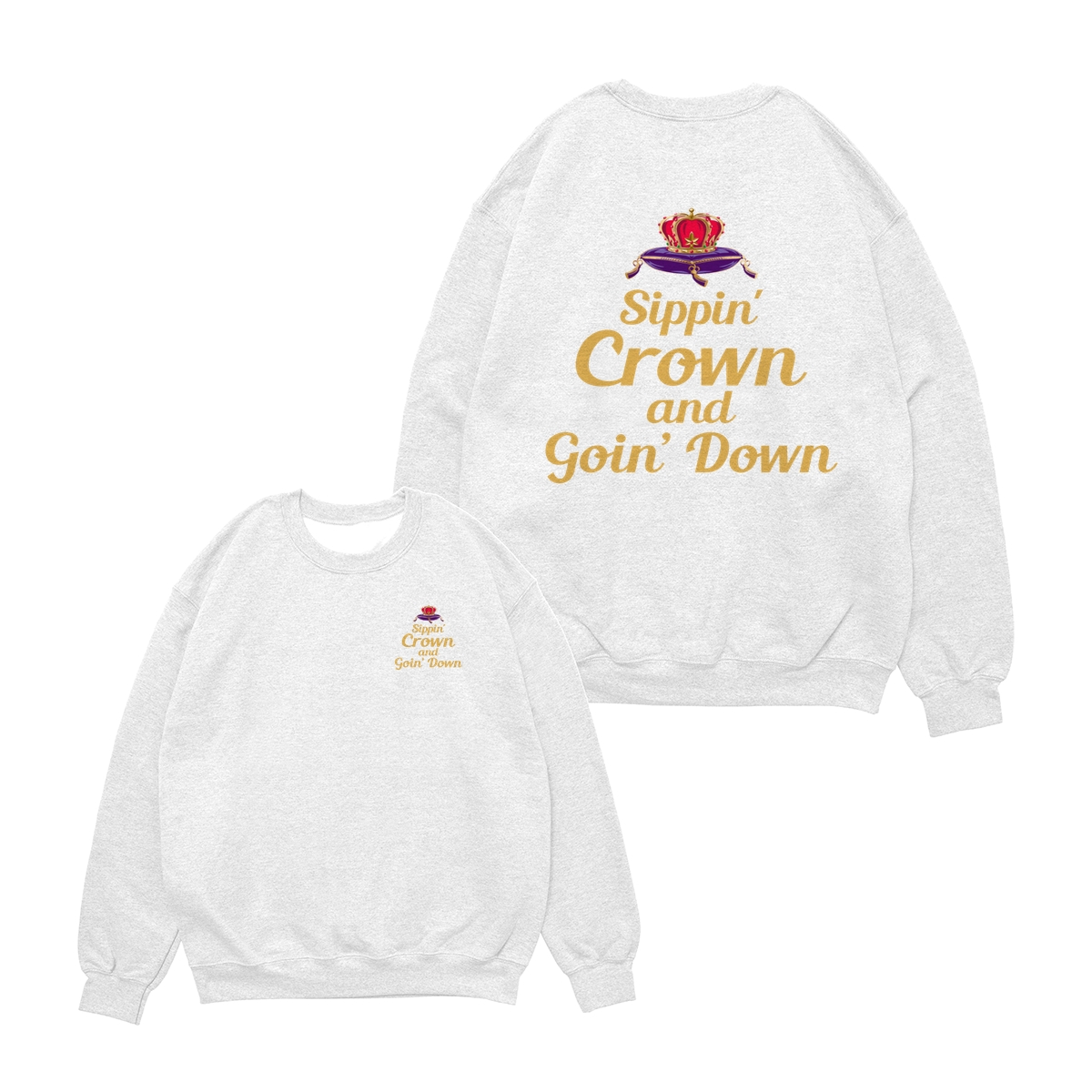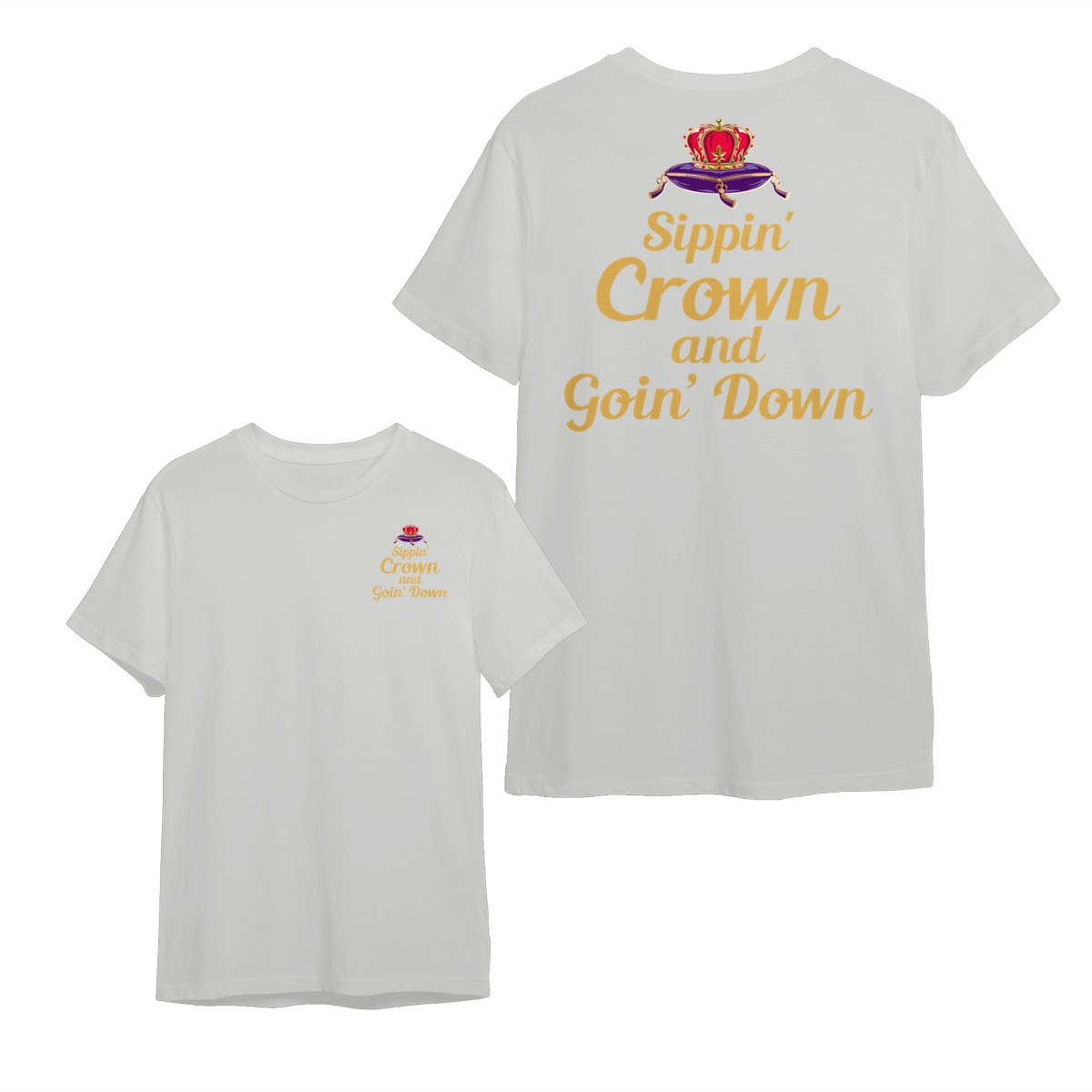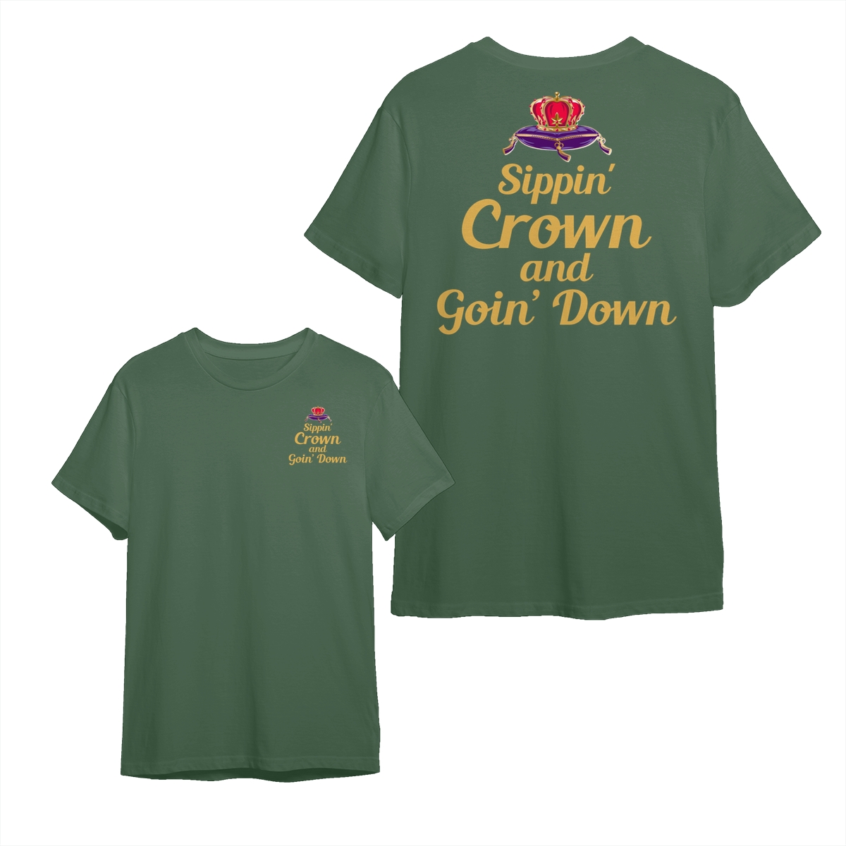 Sippin’ Crown and Goin’ Down T-Shirt – Funny Drinking Graphic Tee for Whiskey Lovers, Country Party Shirt for Men and Women