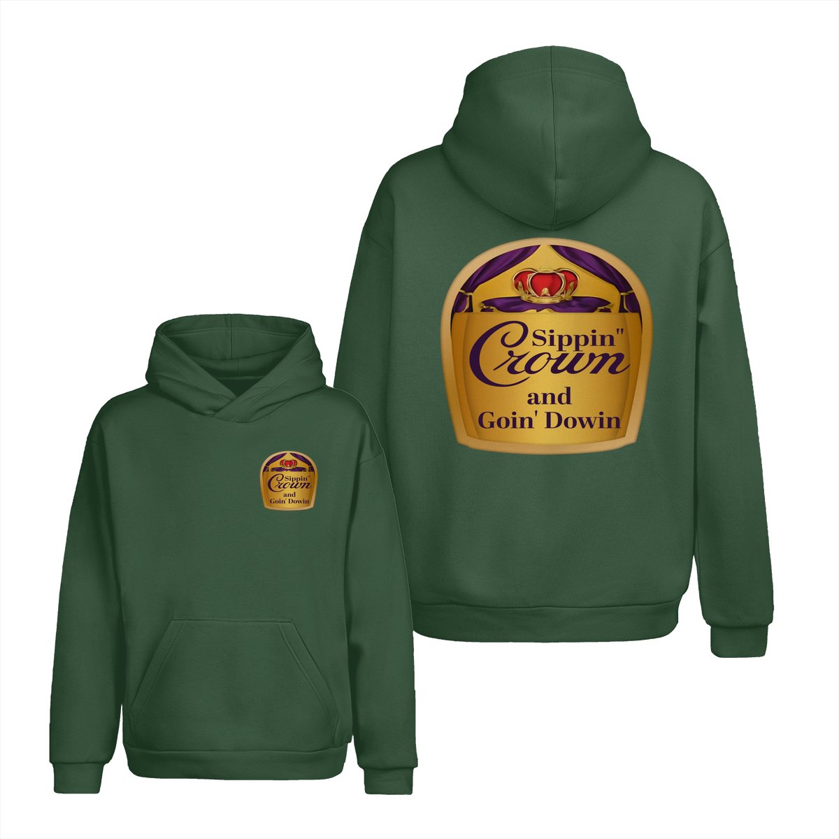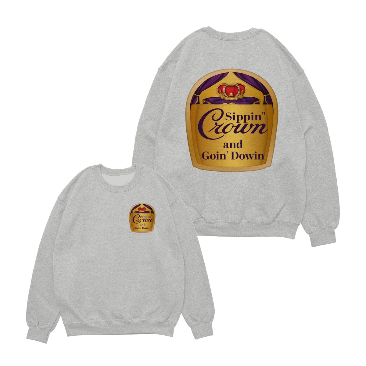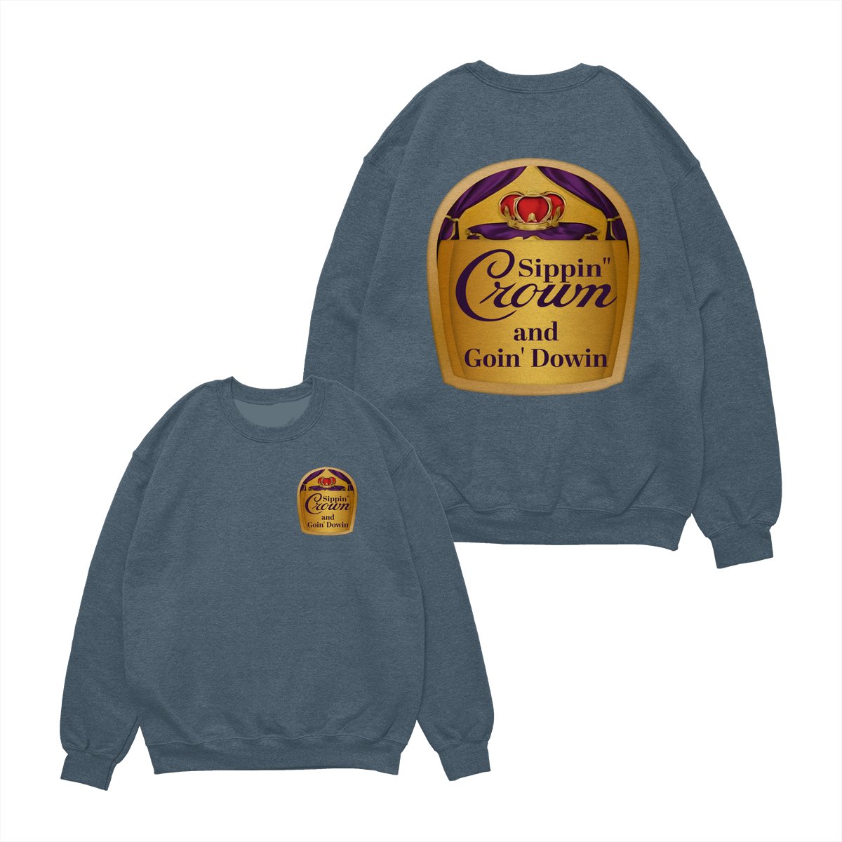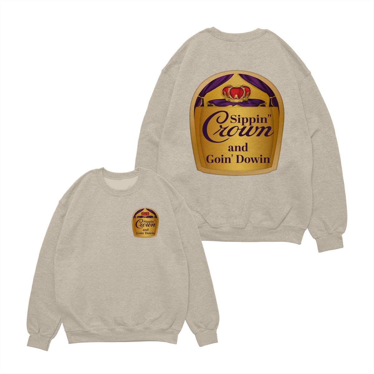 Sippin’ Crown And Goin’ Down T-Shirt – Funny Whiskey Lover Graphic Tee, Crown Bottle Design Shirt For Parties, Tailgates, And Casual Nights Out