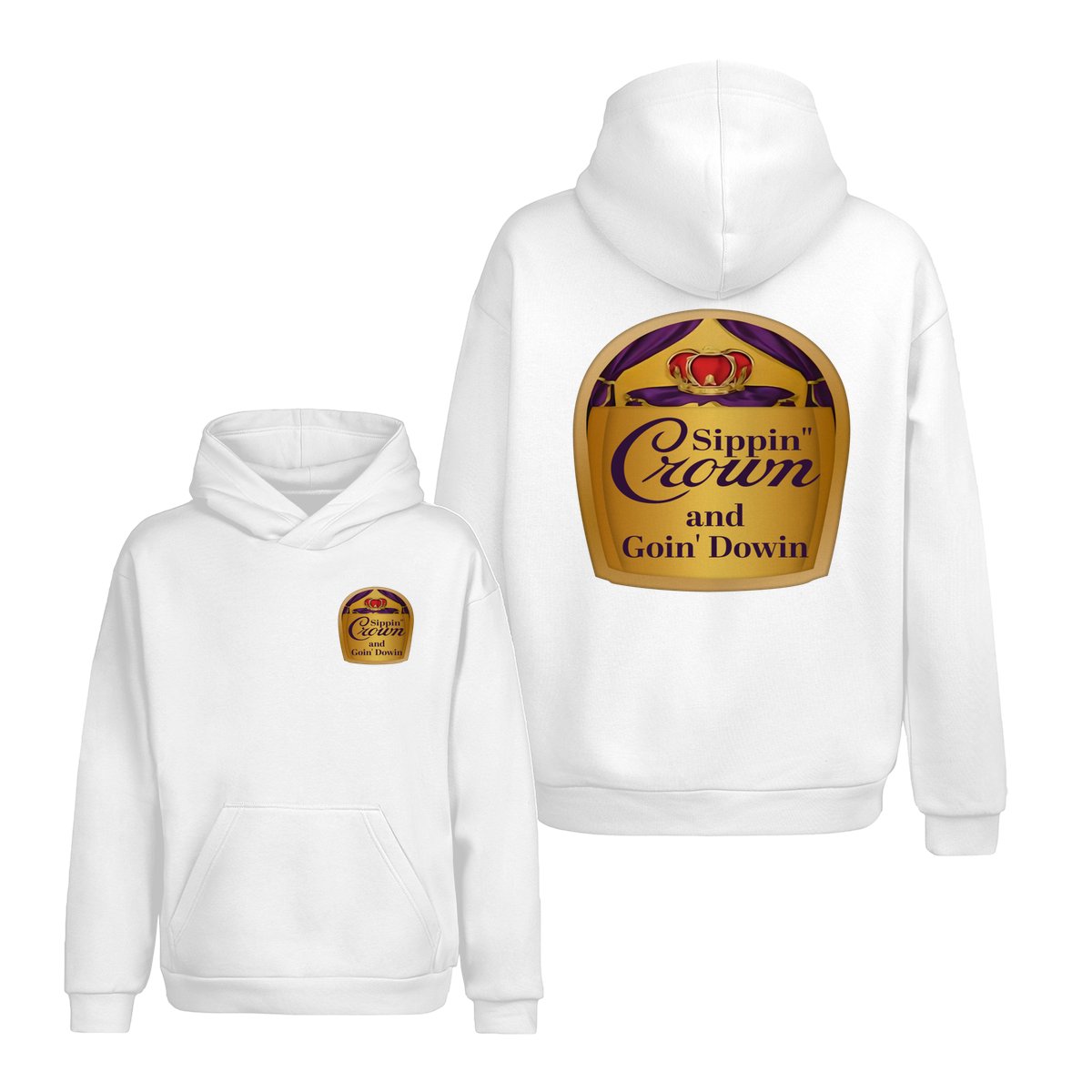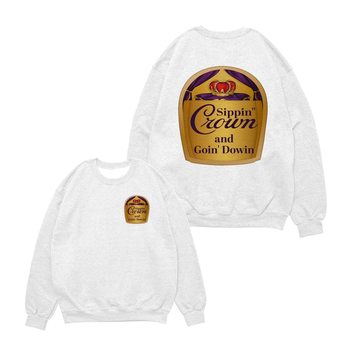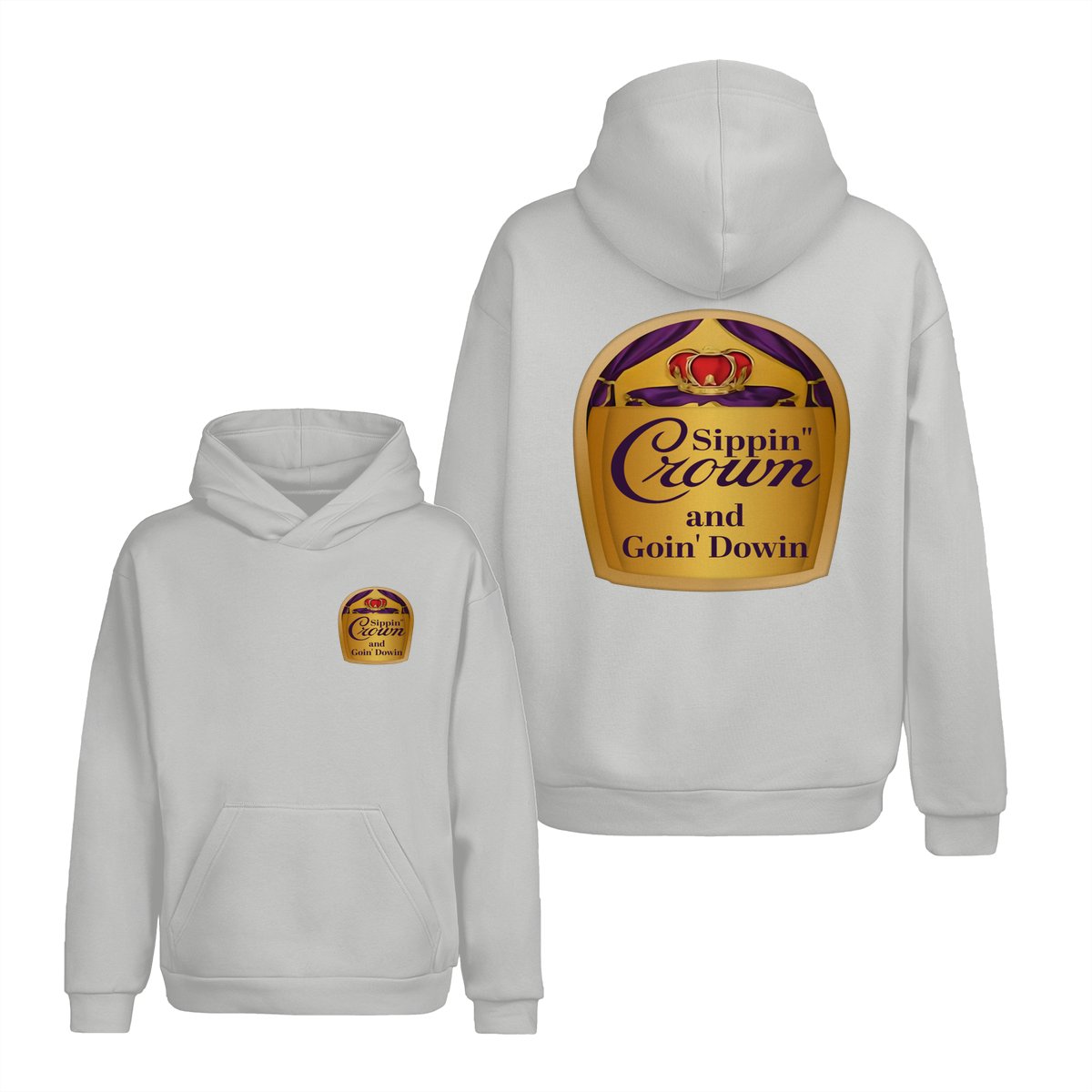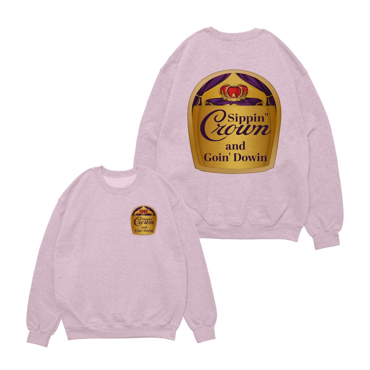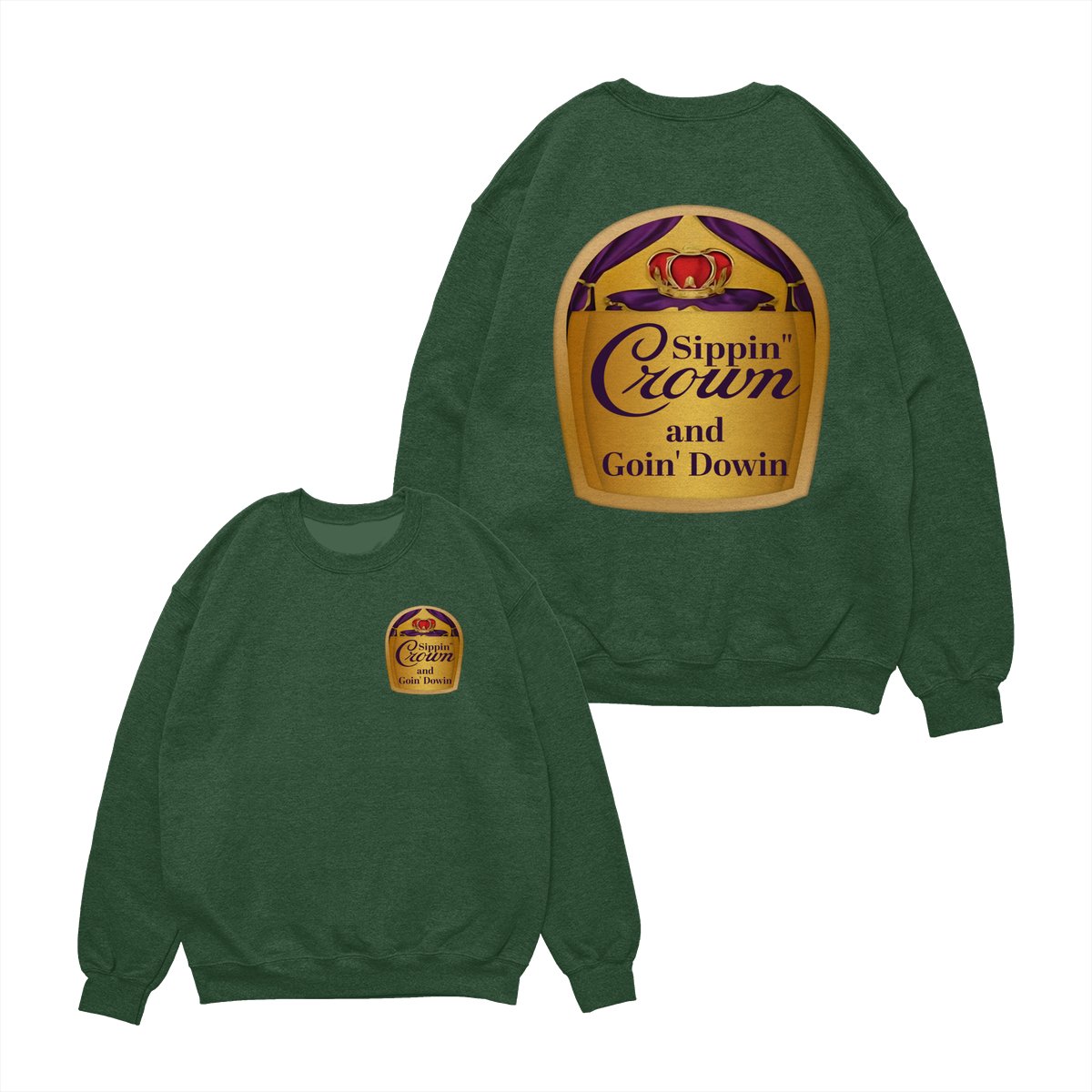 Sippin’ Crown And Goin’ Down T-Shirt – Funny Whiskey Lover Graphic Tee, Crown Bottle Design Shirt For Parties, Tailgates, And Casual Nights Out