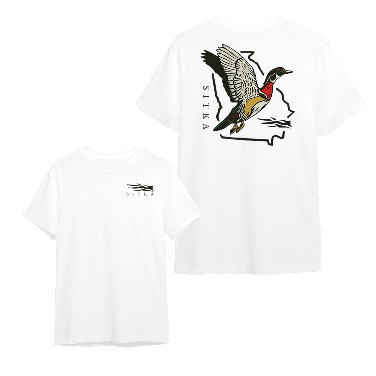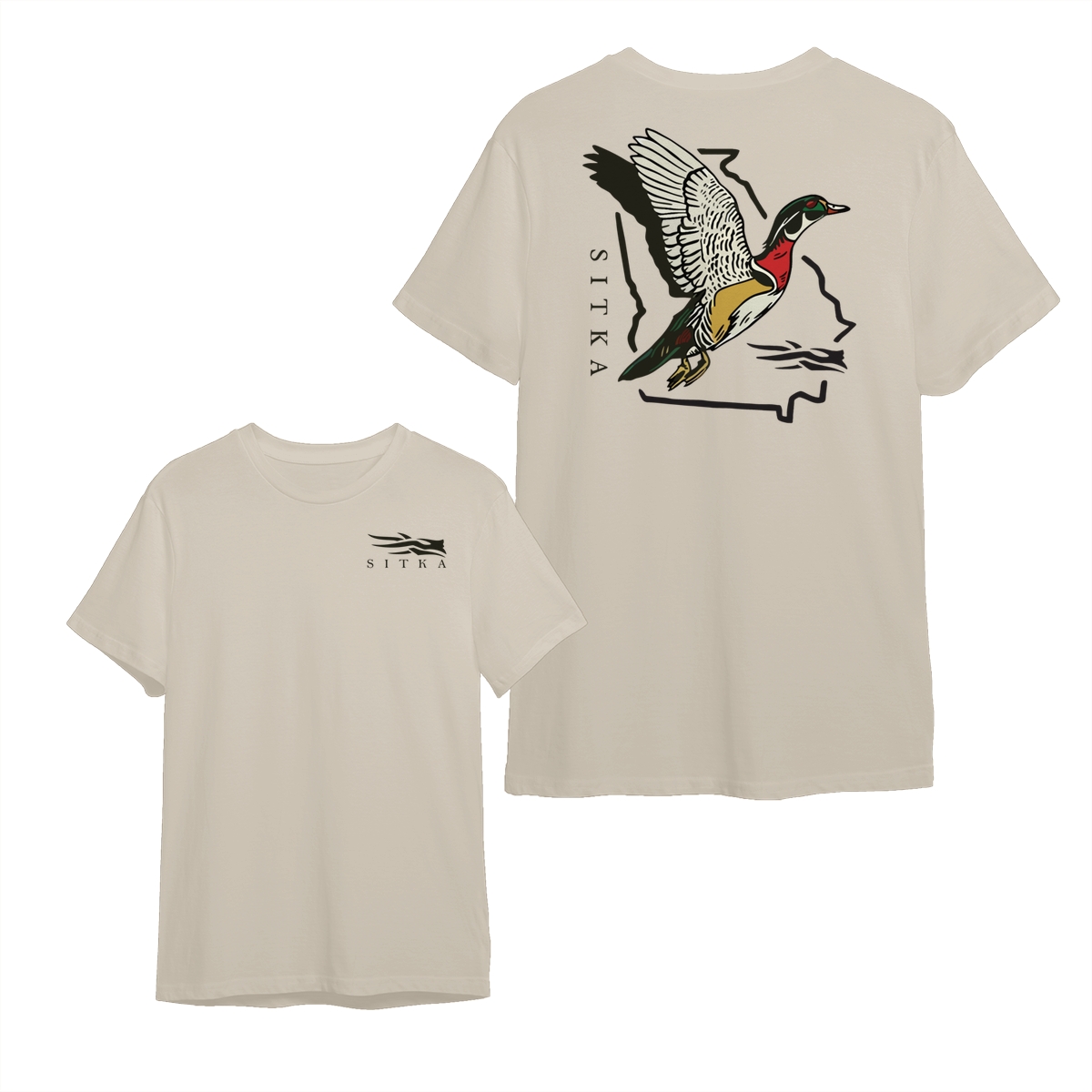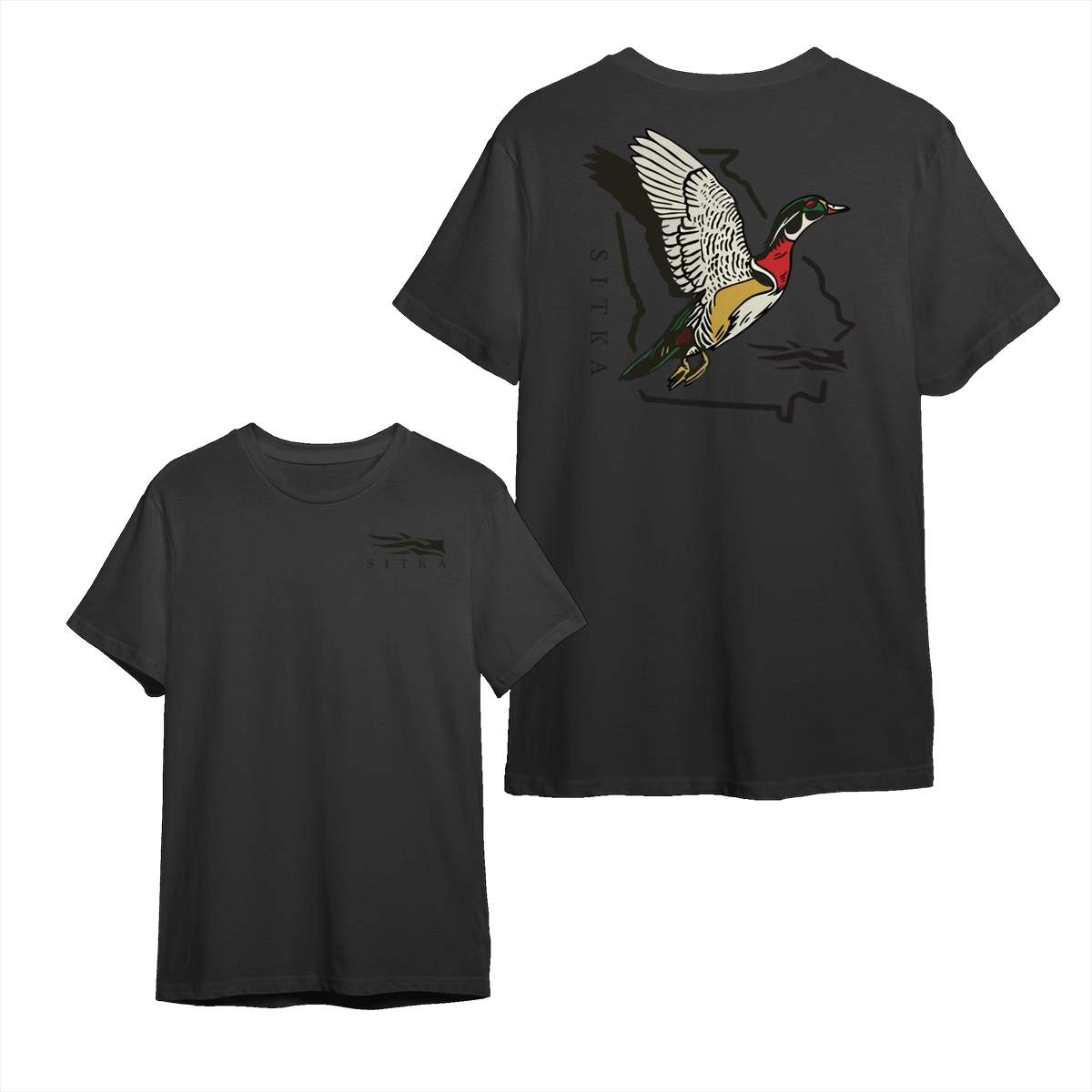 Sitka Flying Duck Graphic Shirt , Detailed Duck Over State Outline , Outdoor Wildlife Style , Ideal For Hunting Lovers , Nature Tee , Gift For Outdoor Enthusiasts Fabric Menswear Sport Tops