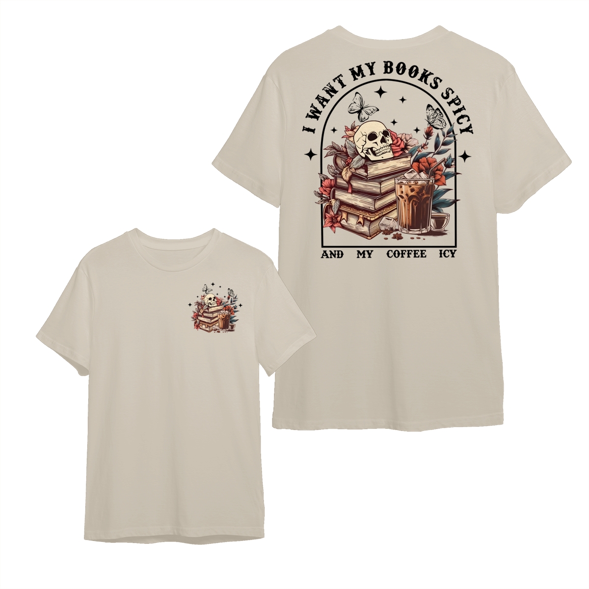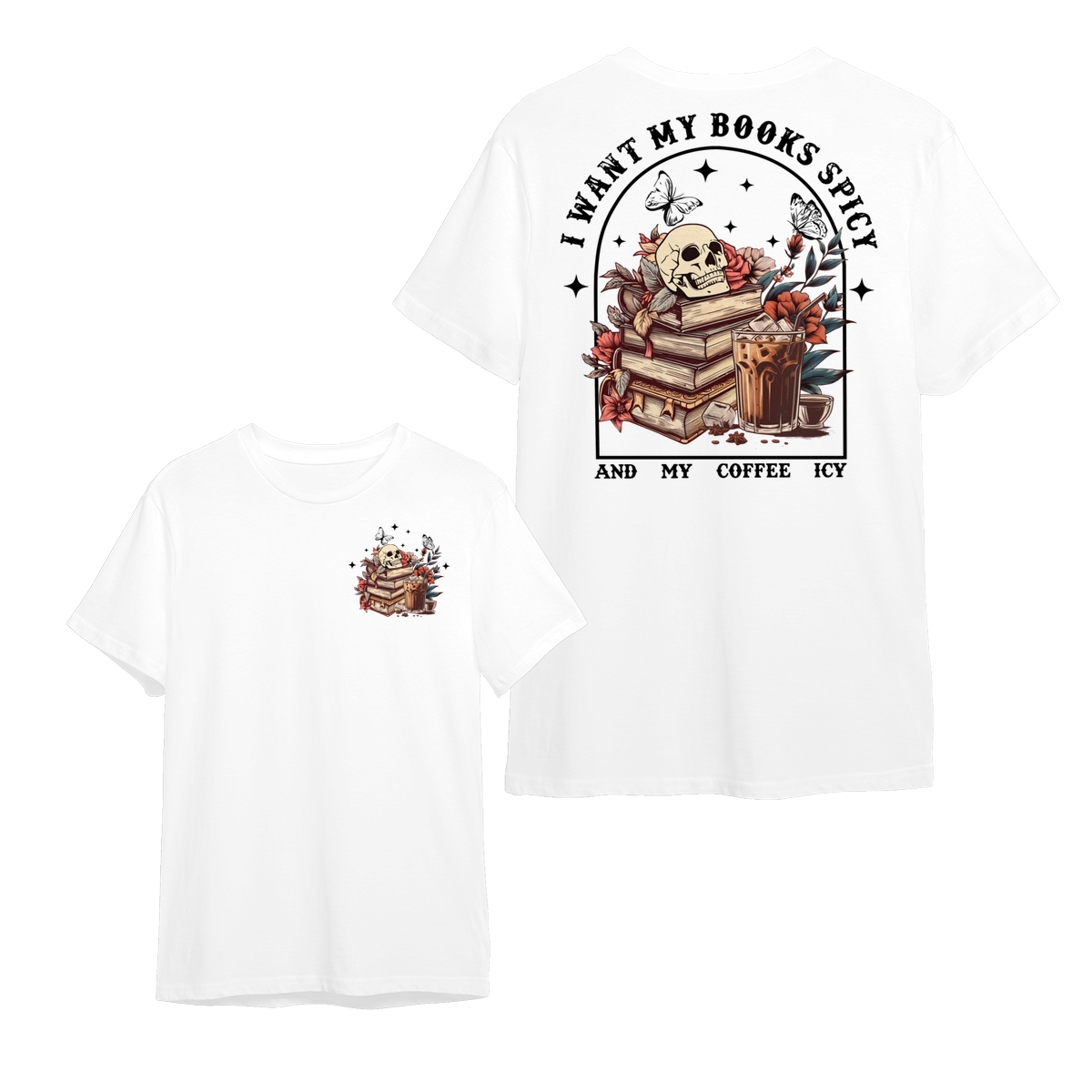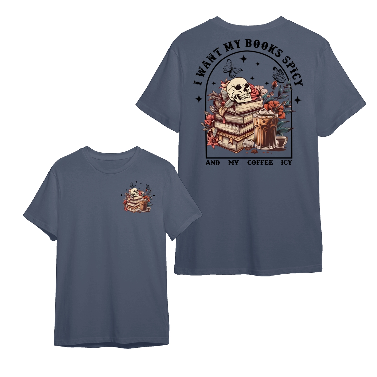 Skeleton Bookish Library Shirt, 2 Side Halloween I Like My Books Spicy And My Coffee Icy Hoodie, Fall Tee, Spicy Book Lover Design Tee, Halloween Casual Sweatshirt Hooded Outfiter Gift For Best Friend HusBand Wife
