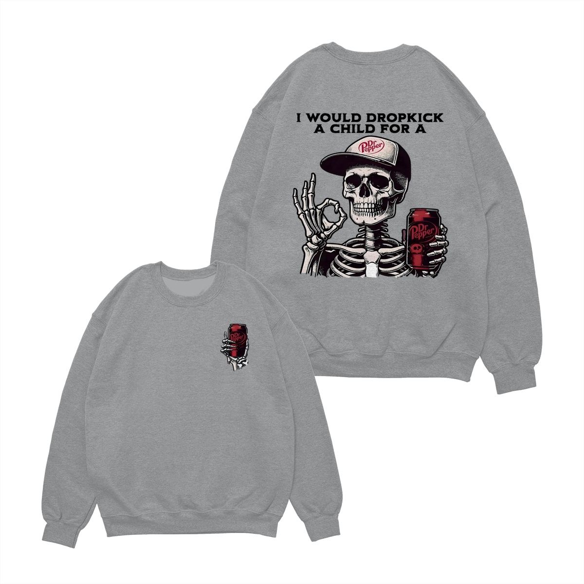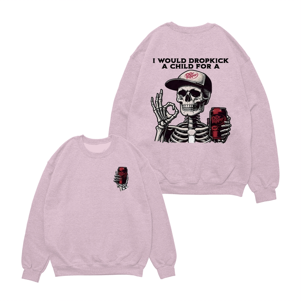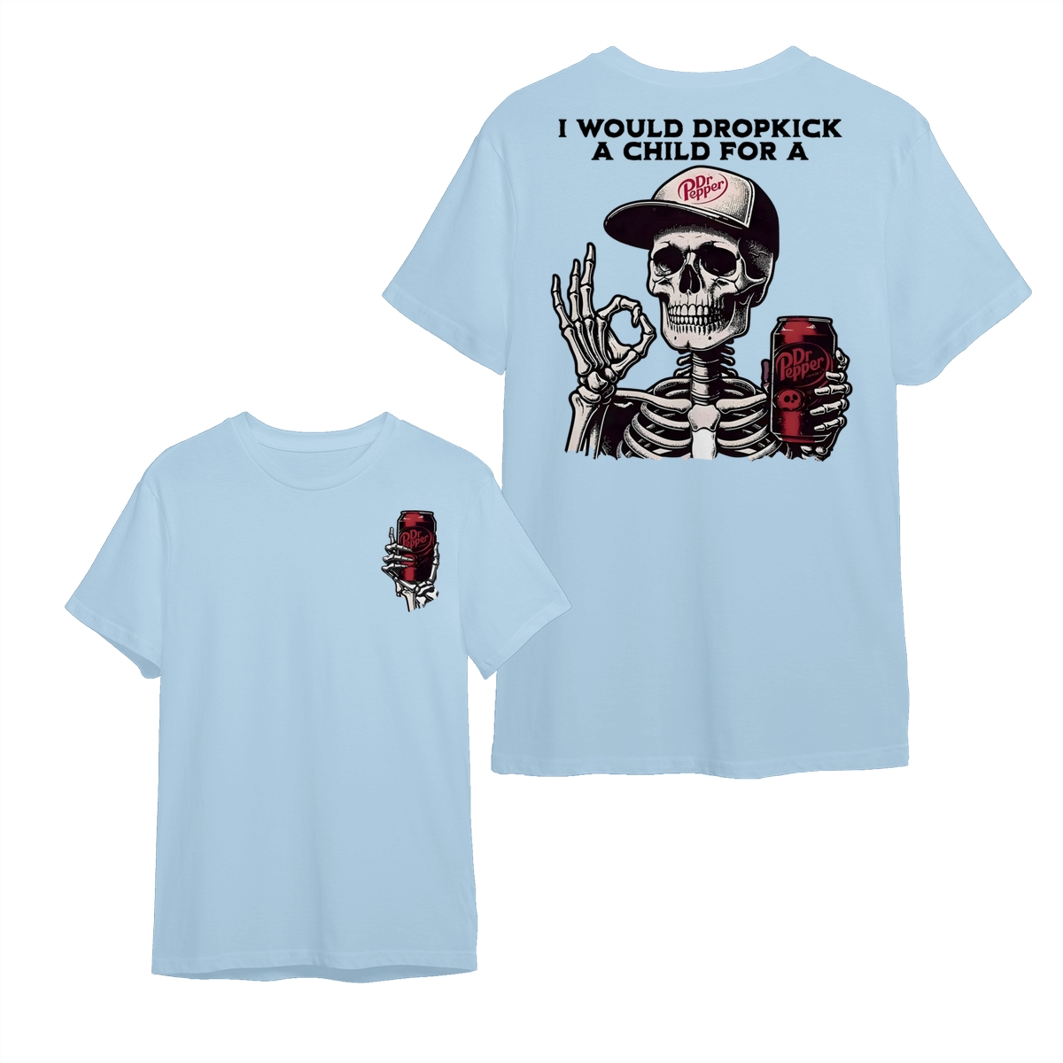 Skeleton I Would Dropkick A Child For A Dr. Pepper 2 Sided Shirt – Sweatshirt – Hoodie, Graphic Round Neck Tee, Women’s Top For Daily Wear, Full Sizes