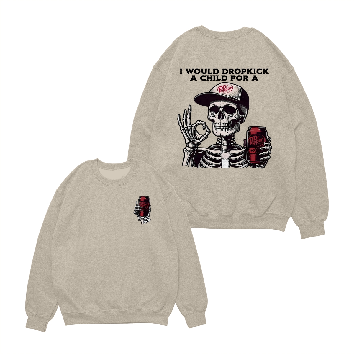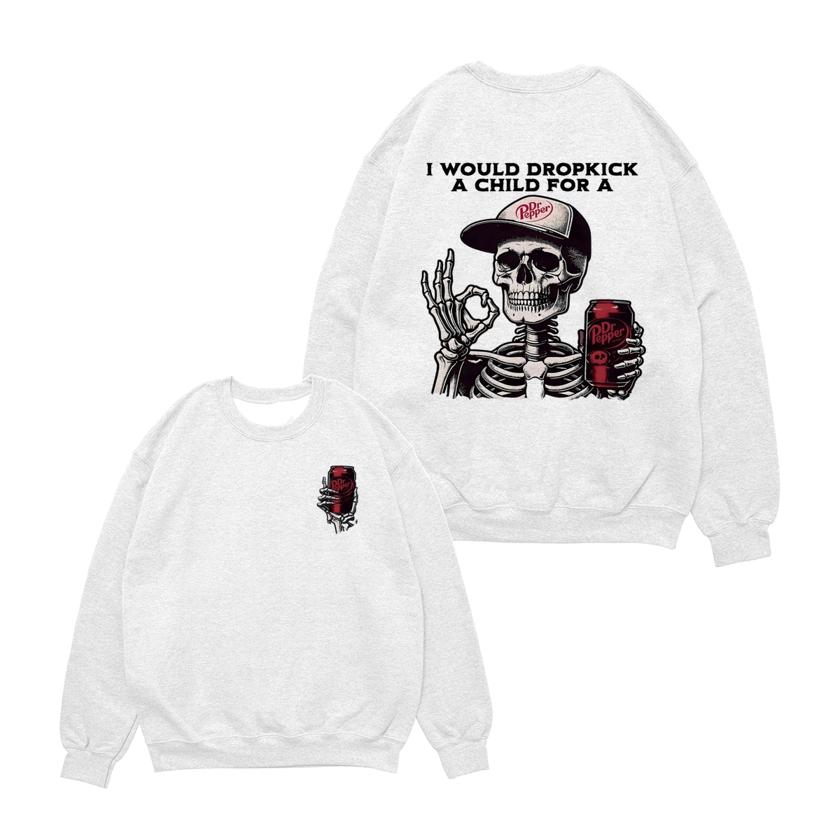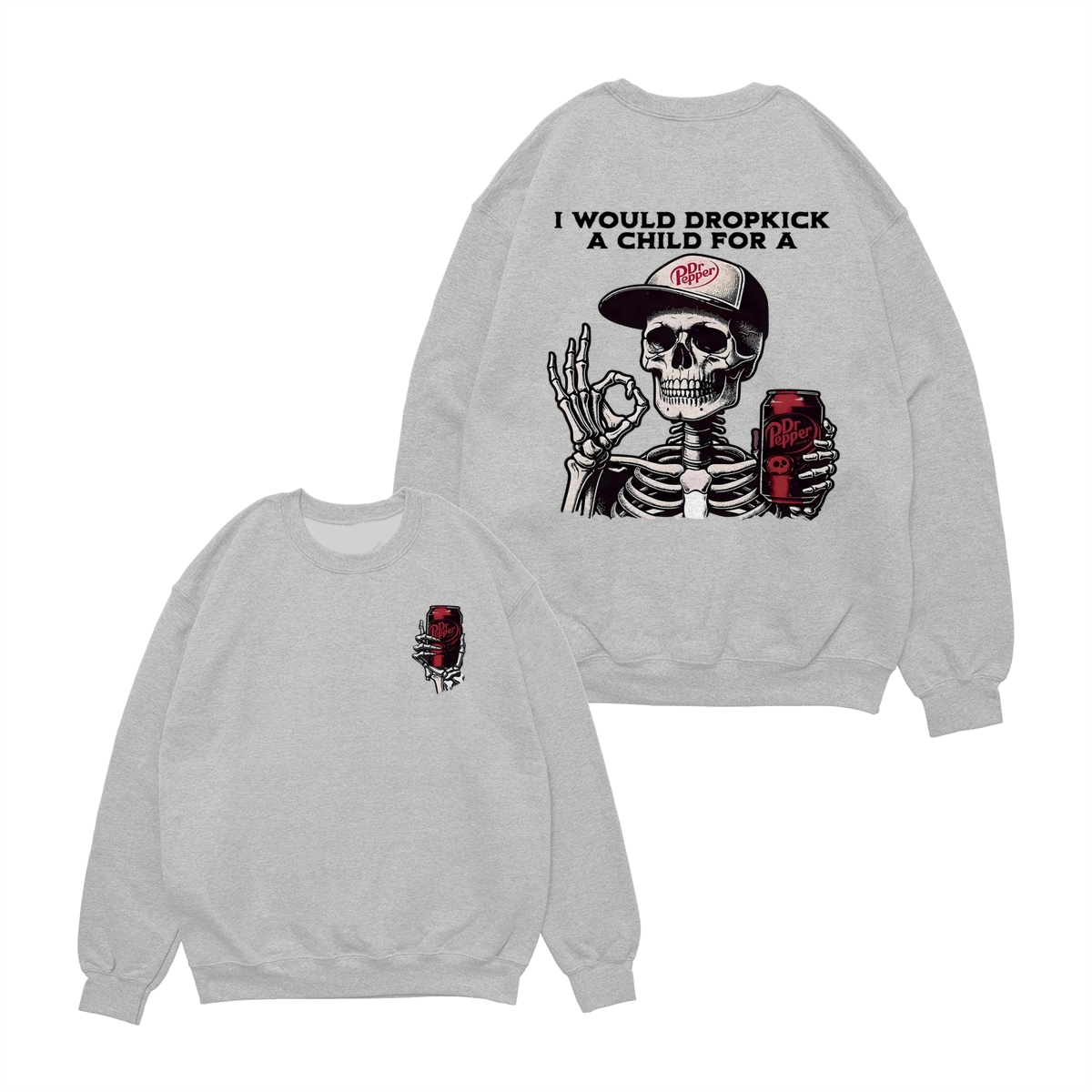 Skeleton I Would Dropkick A Child For A Dr. Pepper 2 Sided Shirt – Sweatshirt – Hoodie, Graphic Round Neck Tee, Women’s Top For Daily Wear, Full Sizes