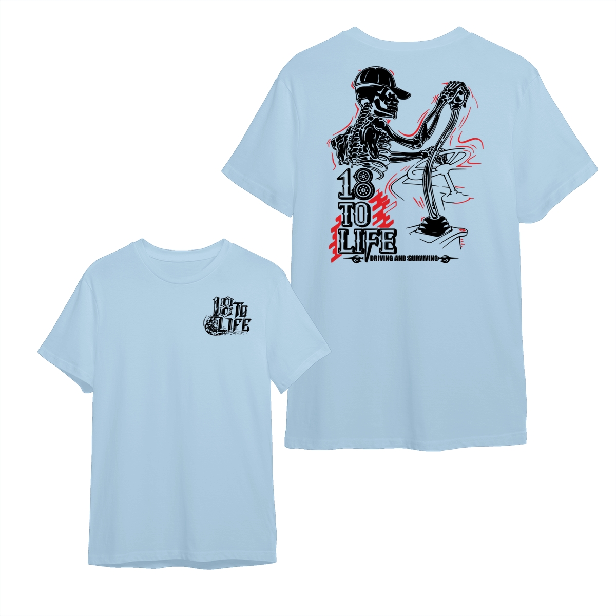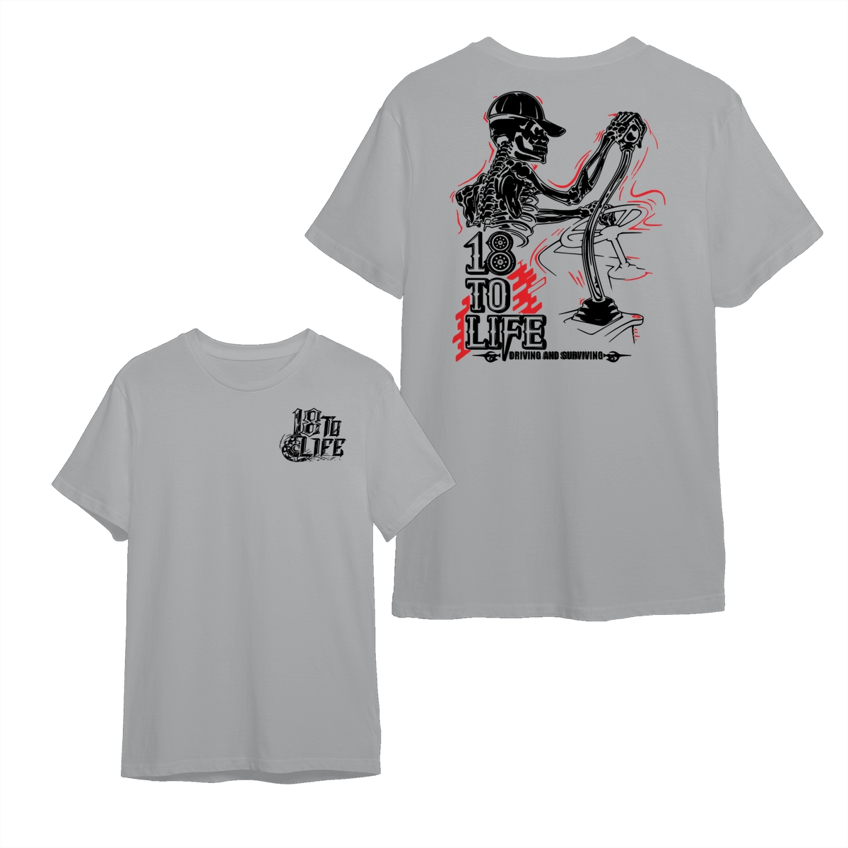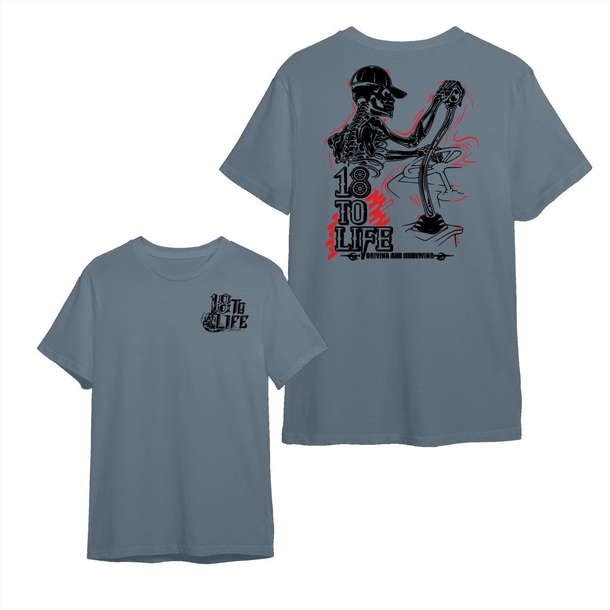 Skeleton Trucker Life T-Shirt – Funny 18 to Life Graphic Tee for Drivers, Road Warrior Gift, Casual Unisex Streetwear for Men