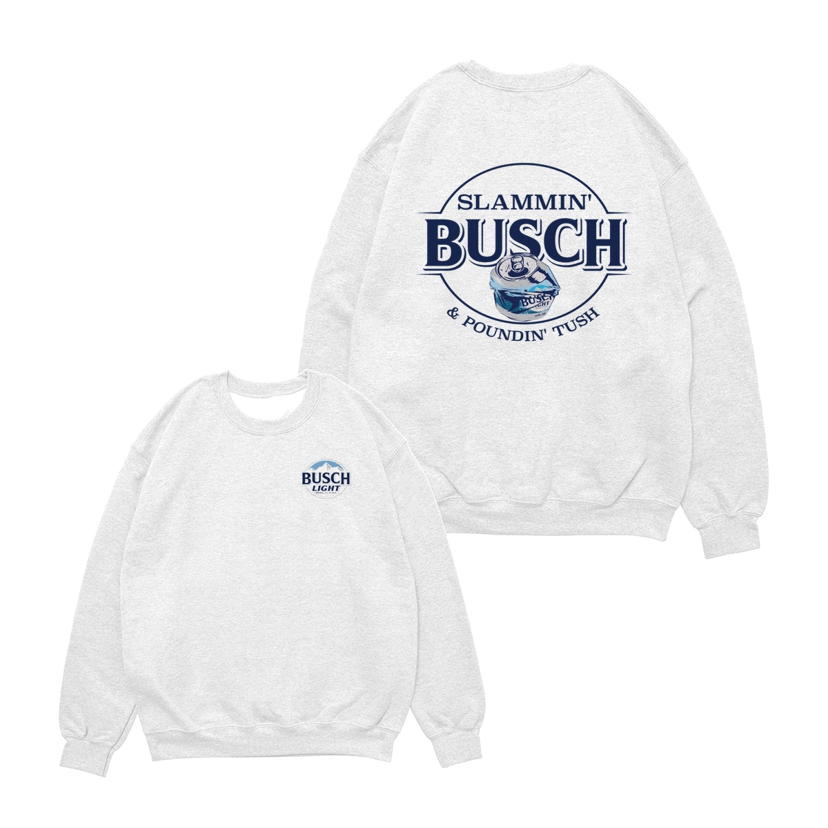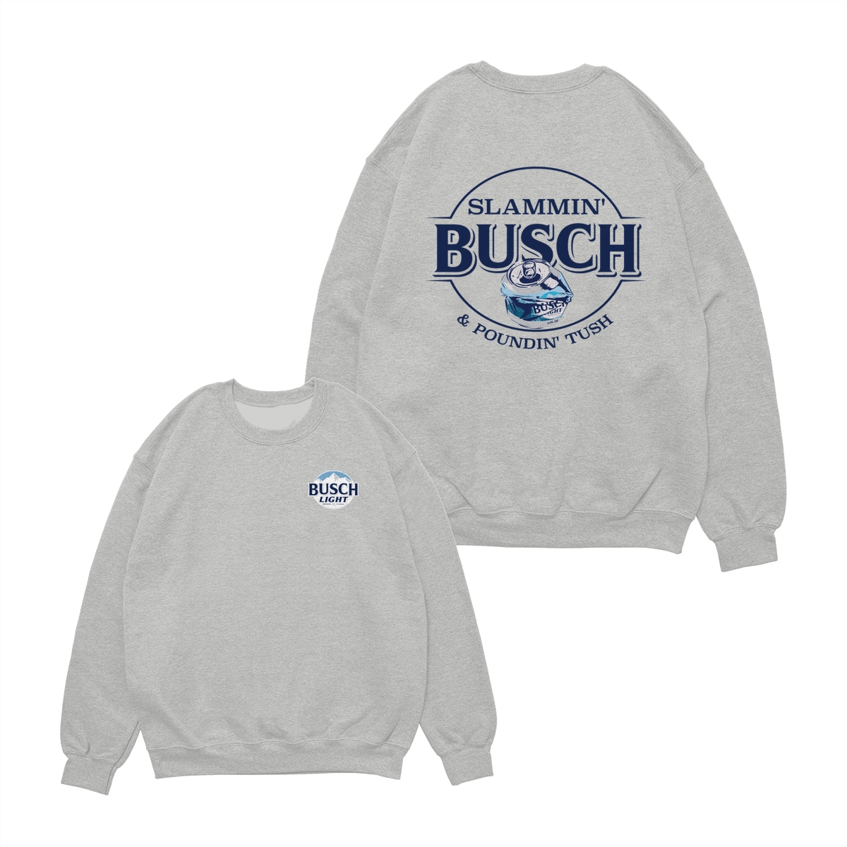 Slammin’ Busch and Poundin’ Tush Double-Sided T-Shirt – Funny Beer Lover Graphic, Premium Cotton, Perfect for Men & Women Who Enjoy Festivities & Good Times