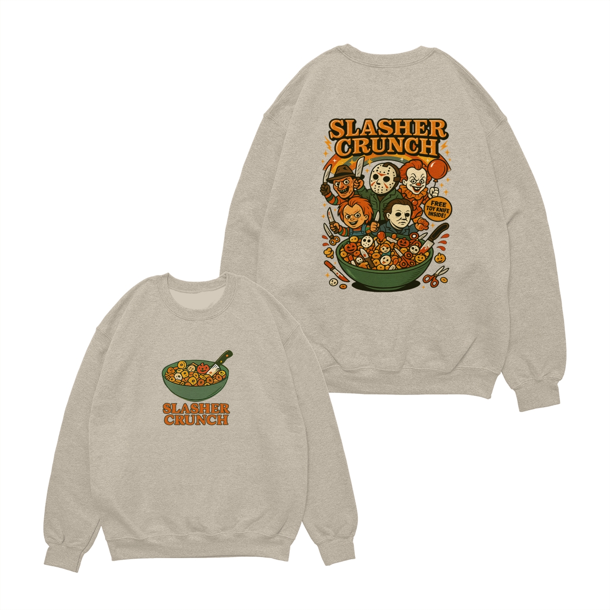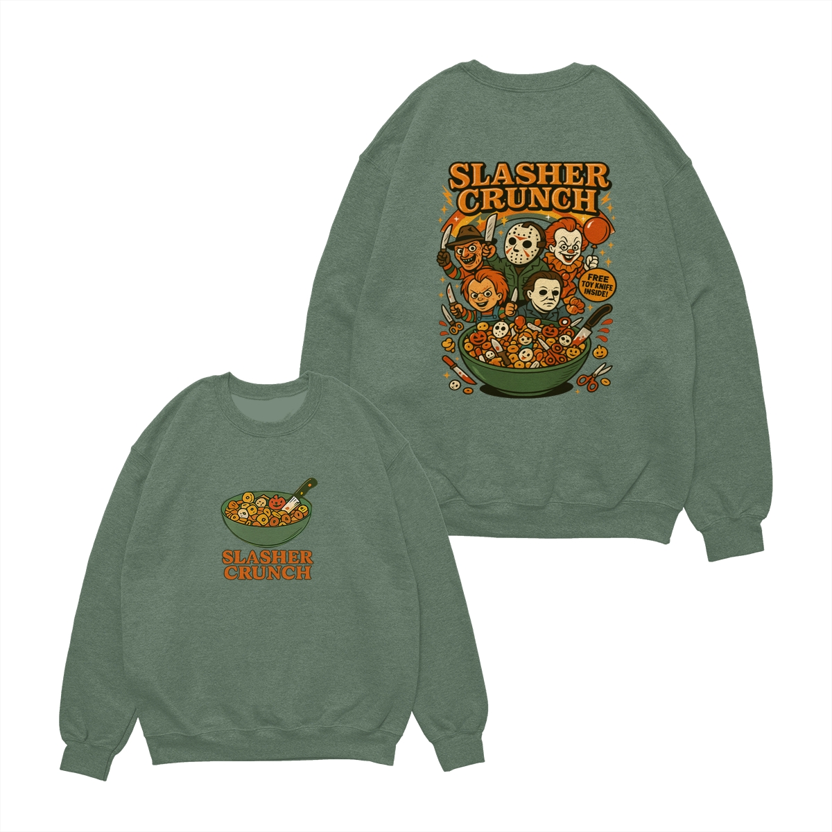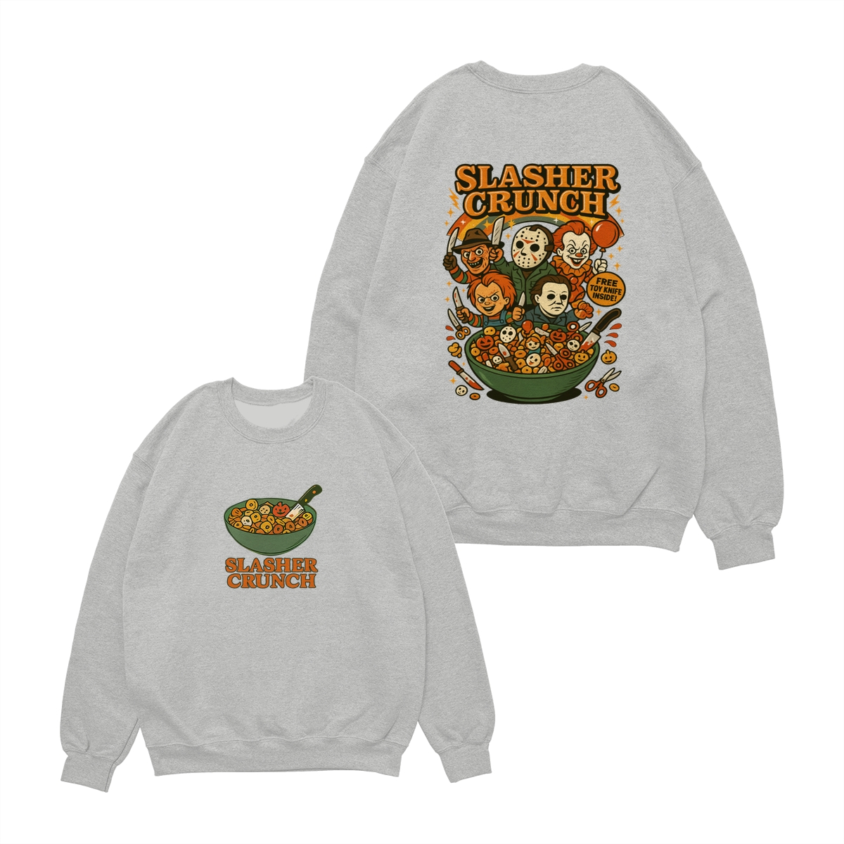 Slasher Crunch Horror Cereal Sweatshirt – K3ller Breakfast Graphic, Retro Halloween Villain Parody