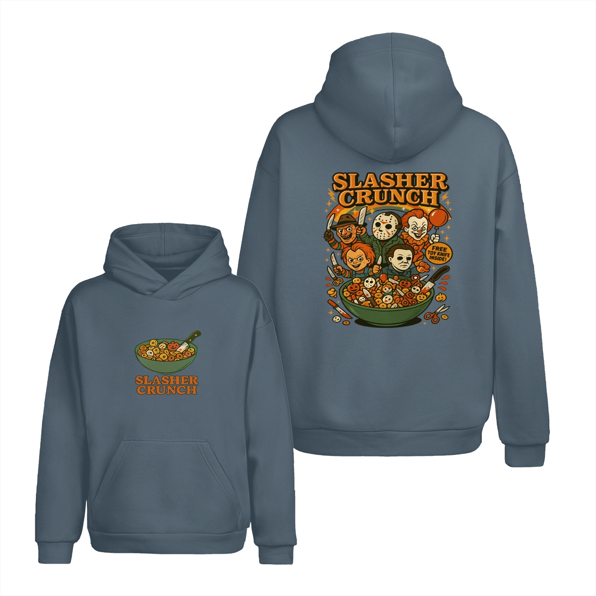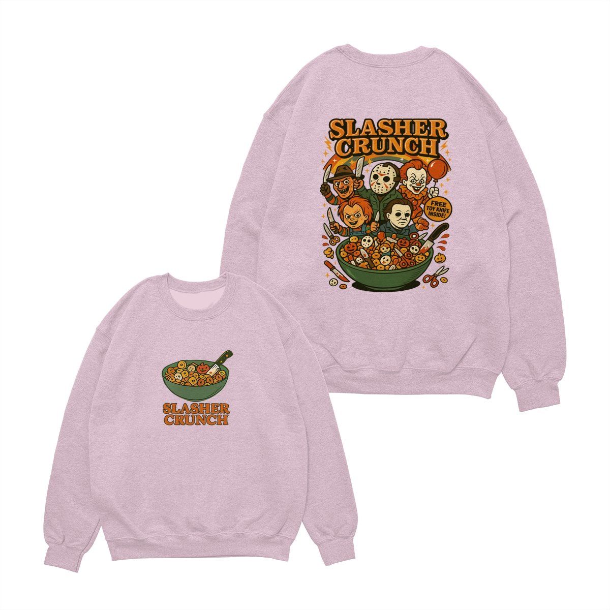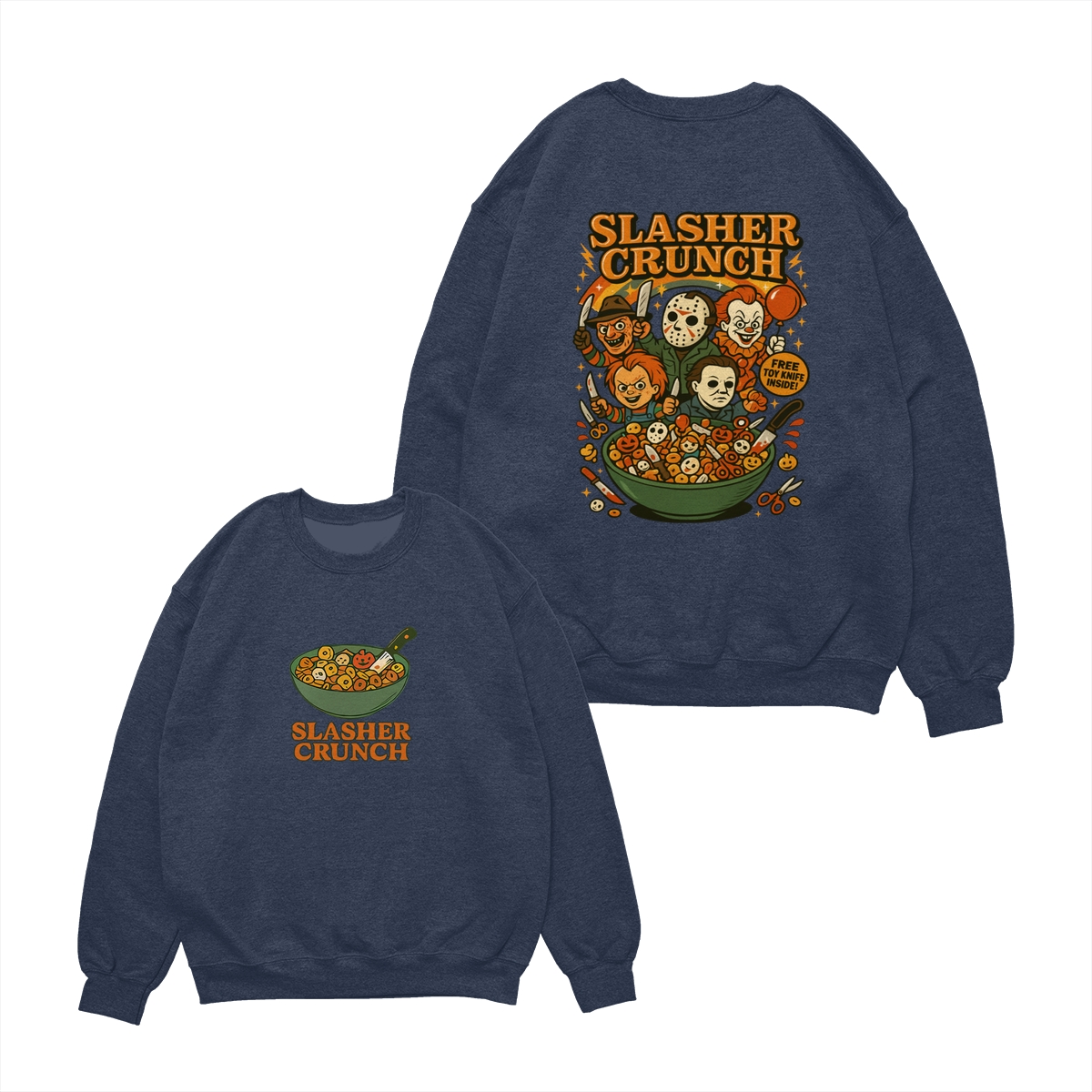 Slasher Crunch Horror Cereal Sweatshirt – K3ller Breakfast Graphic, Retro Halloween Villain Parody