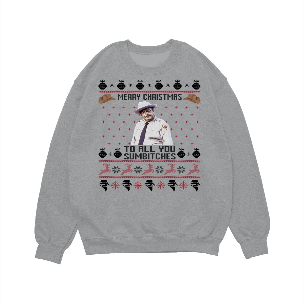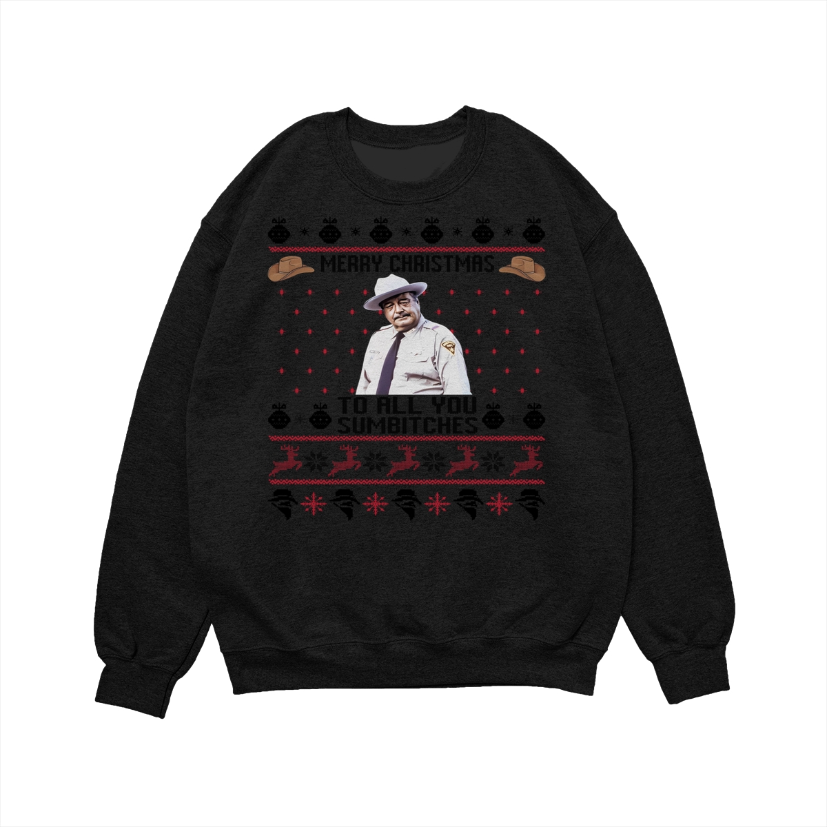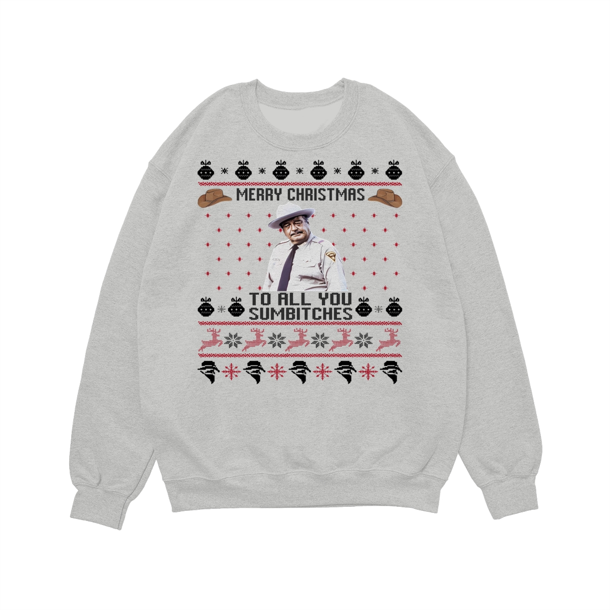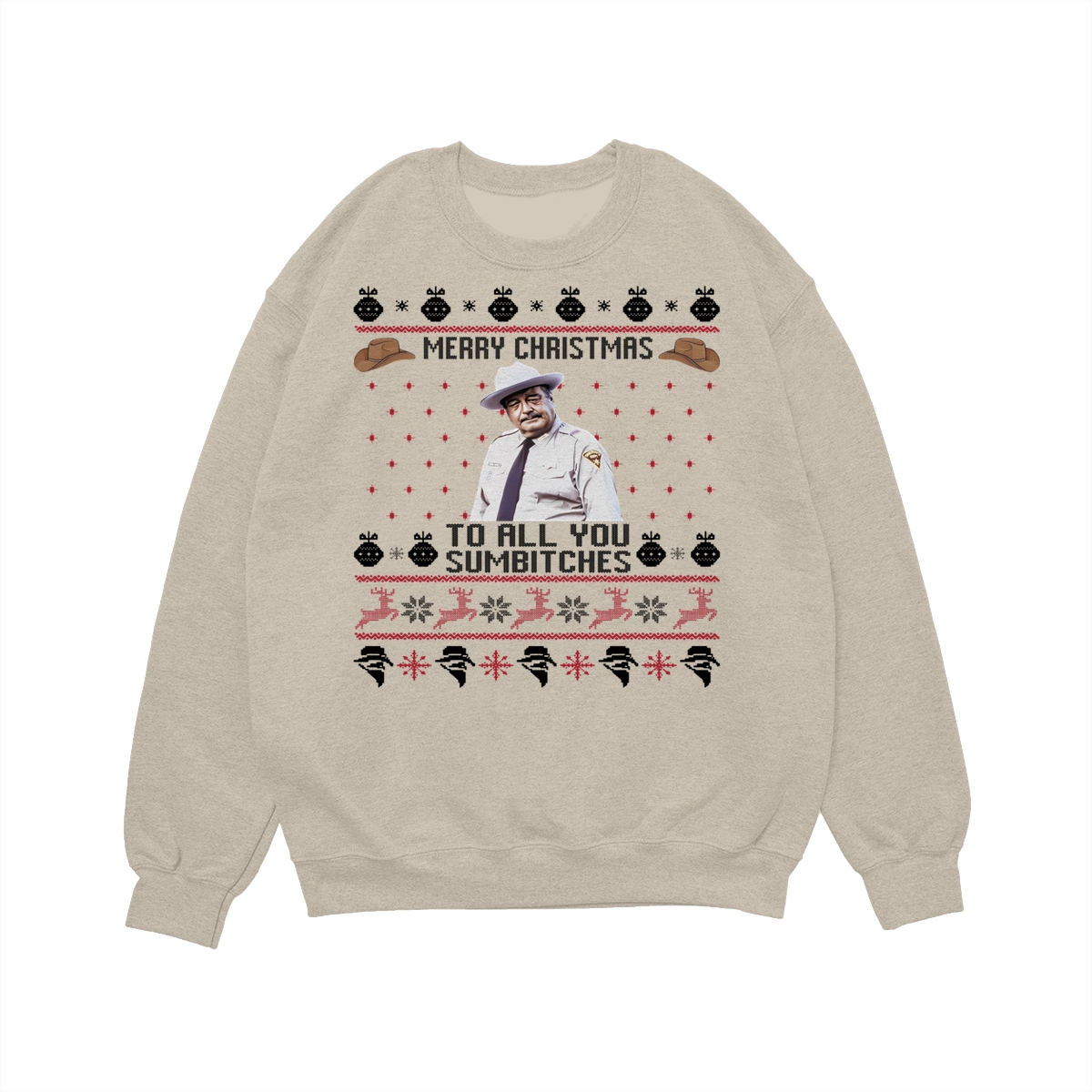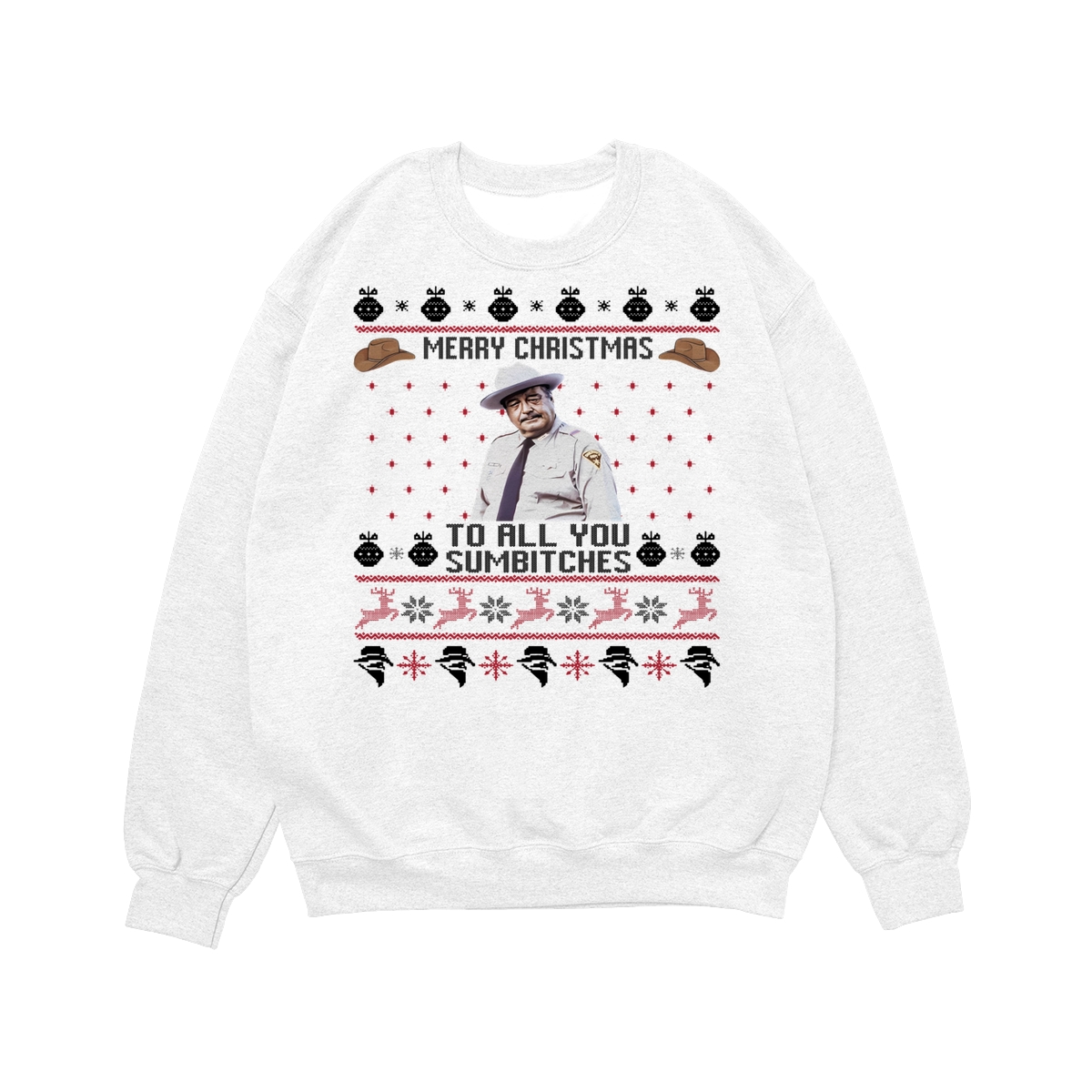 Smokey And The Bandit Merry Christmas Too All You Sumbitches Funny Christmas Sweatshirt, Hoodie, T-Shirt, Smokey And The Bandit Sweatshirt