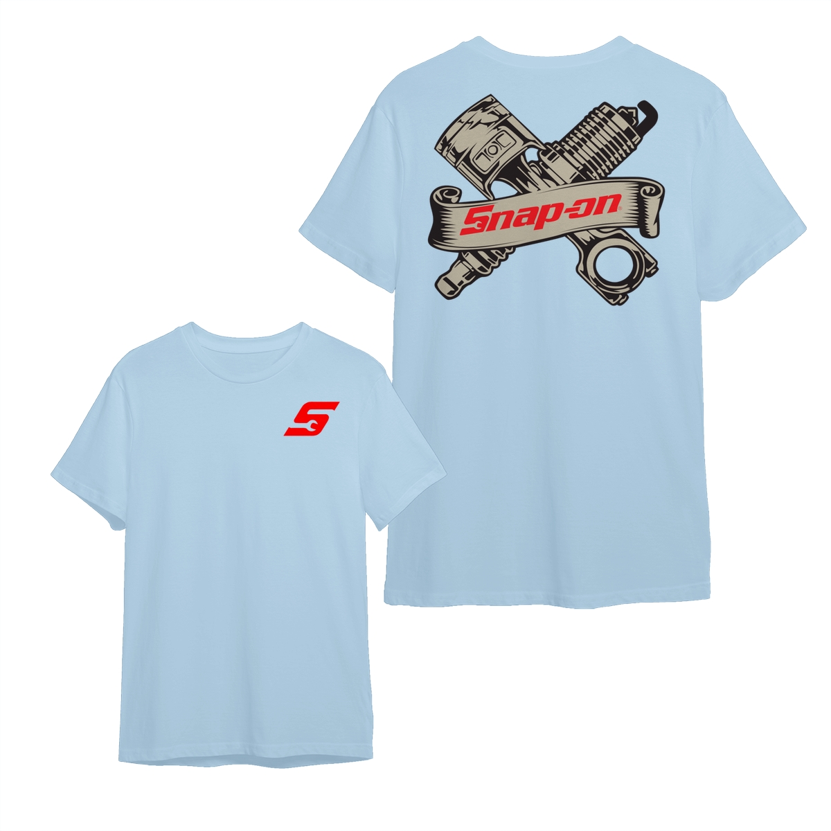 Snap-On T-Shirt with Engine Parts Graphic & Snap-On Logo | Durable, Stylish T-Shirt for Mechanics-men’s T shirt- Cotton Menswear