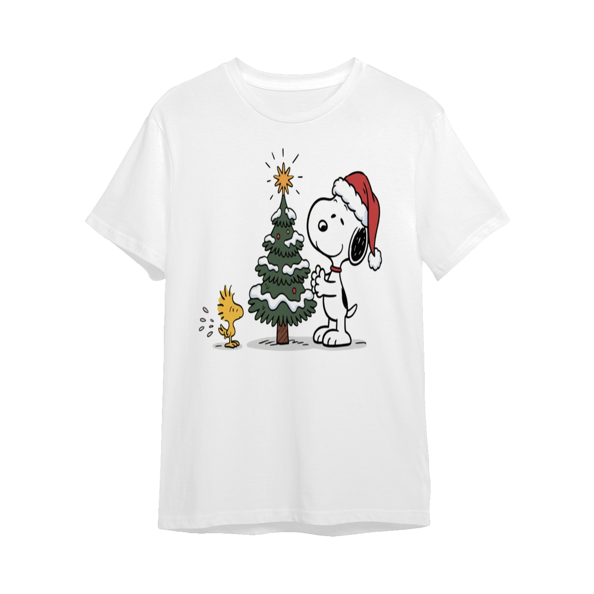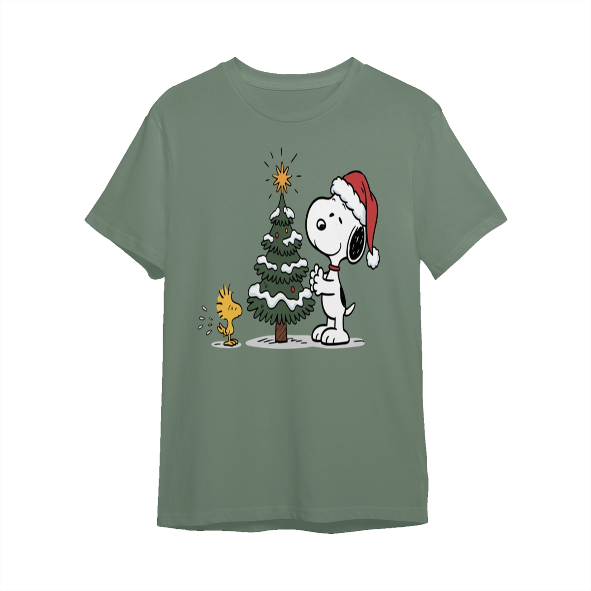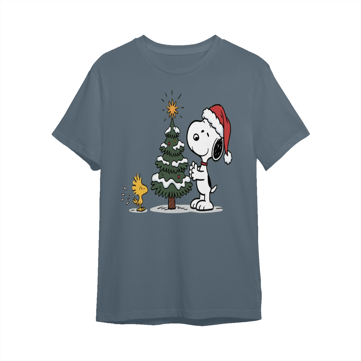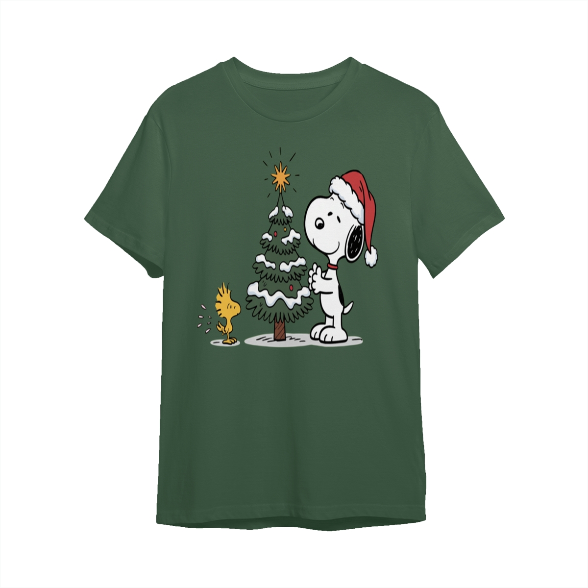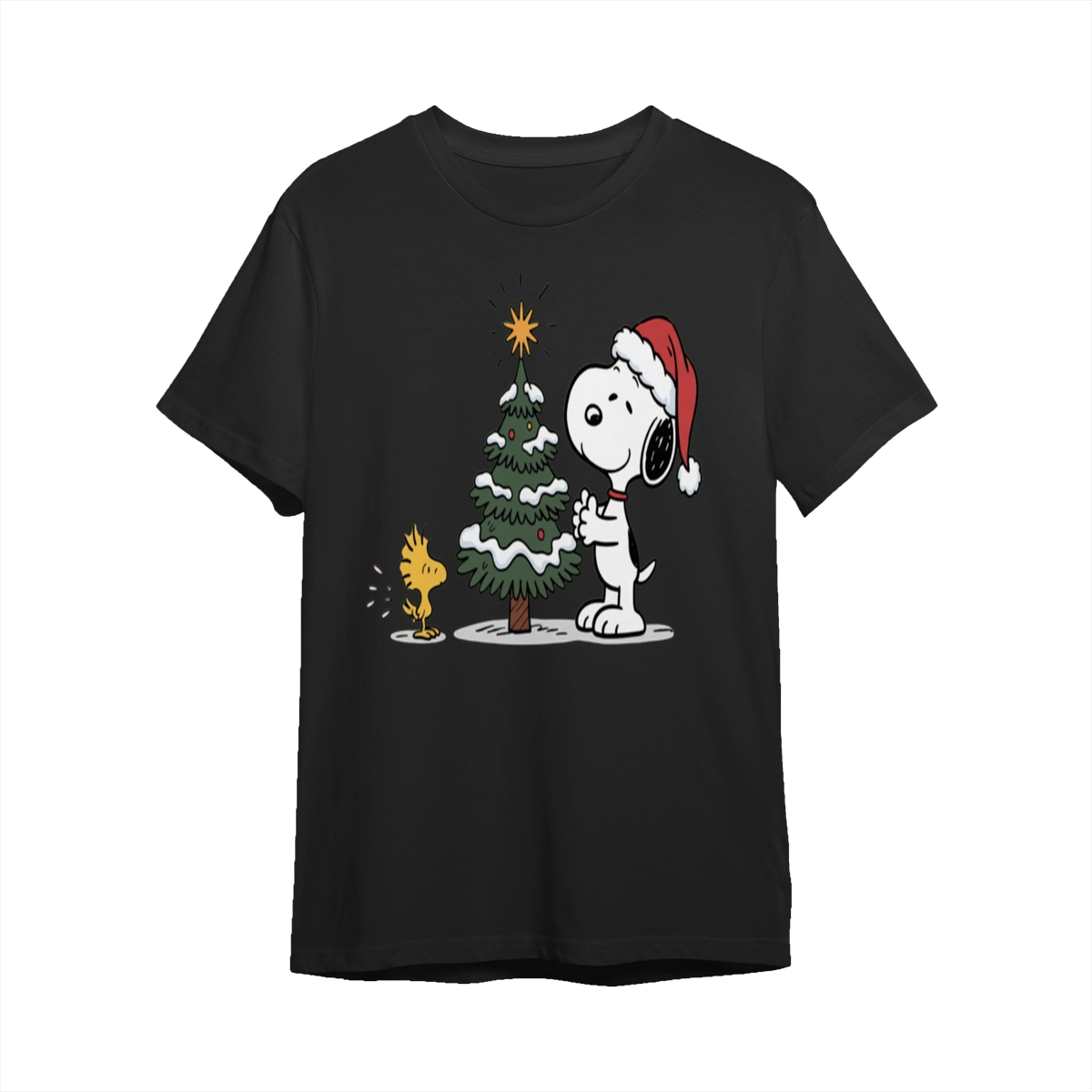 Snoopy And Woodstock Christmas T-Shirt, Cute Peanuts Holiday Tee With Christmas Tree, Festive Santa Hat Shirt, Cozy Xmas Party Tee