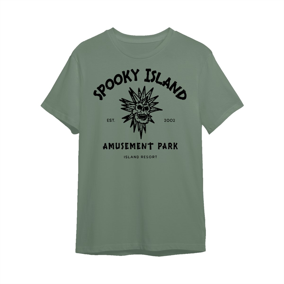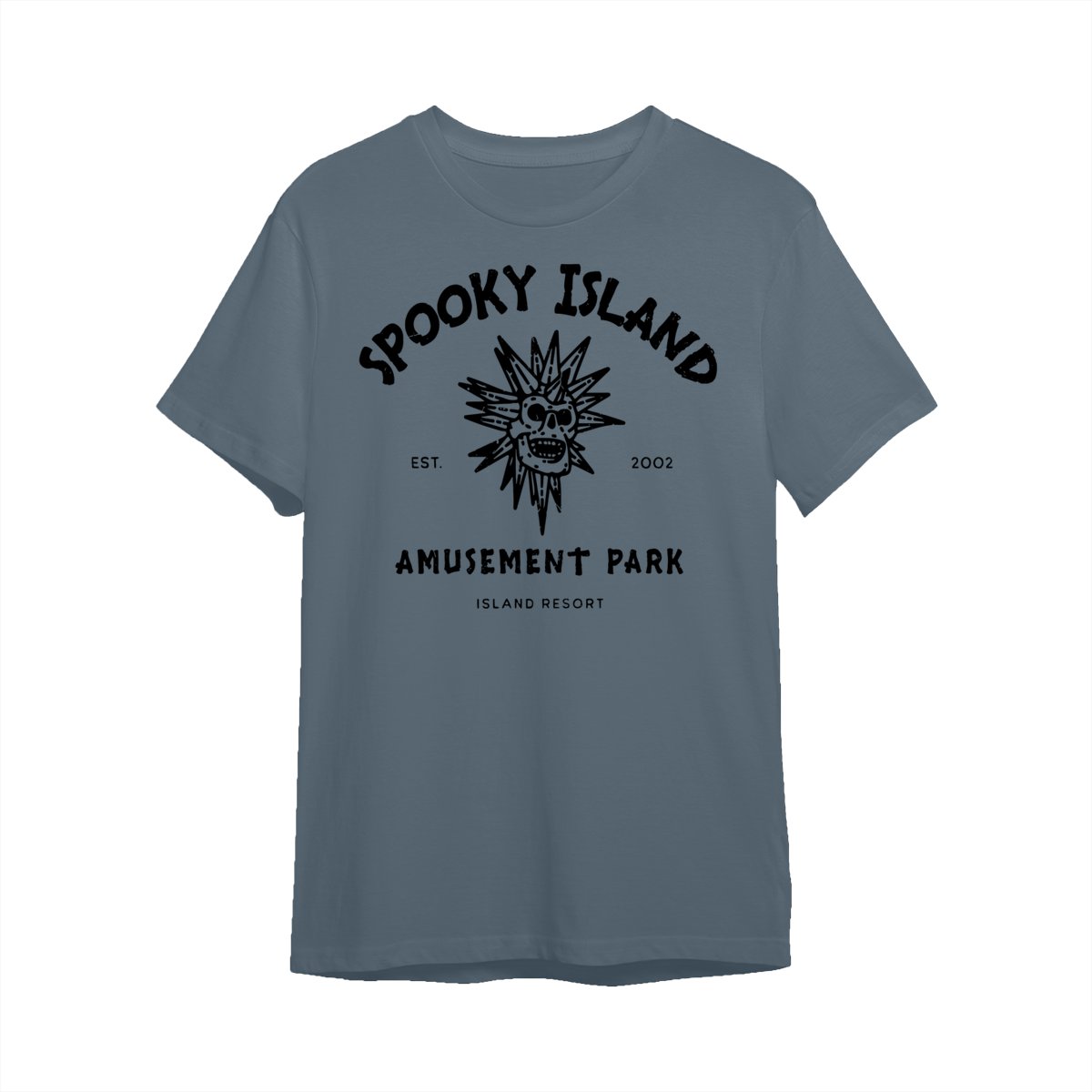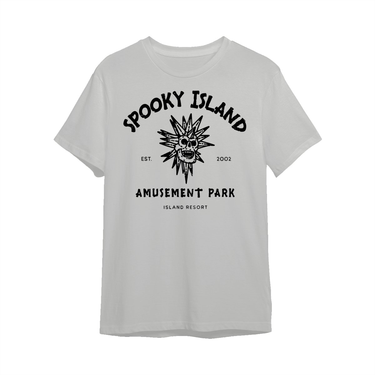 Spooky Island Shirt, Halloween Nostalgia Disco Skull Tee, Baggy T-Shirt with Skull Emblem, Spooky Disco Shirt for Ghost Town Vibes