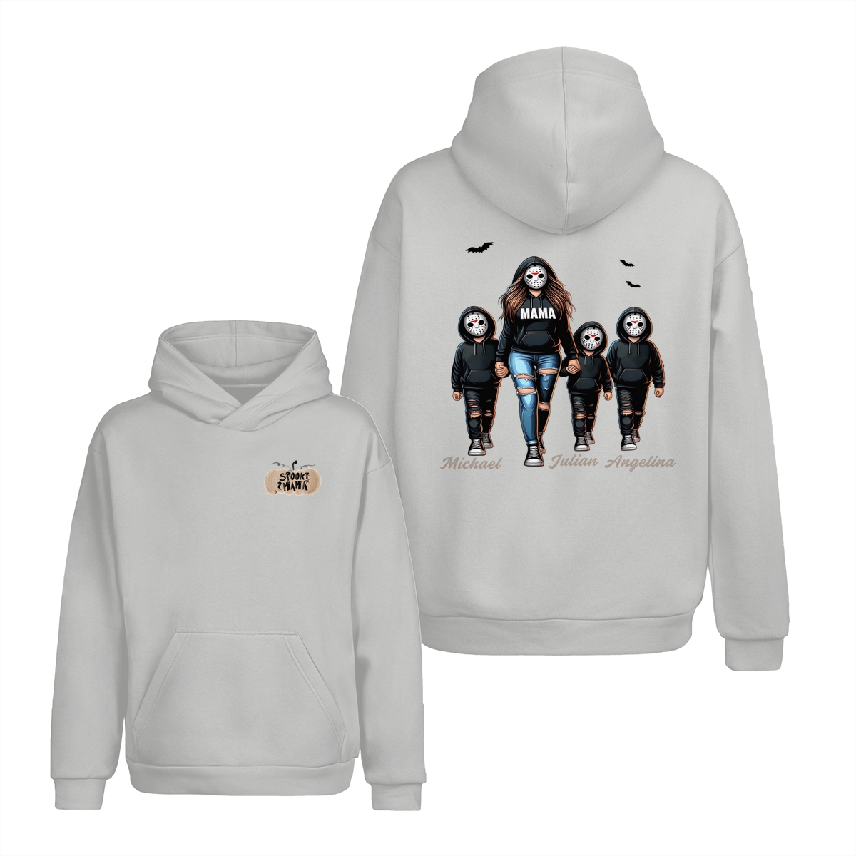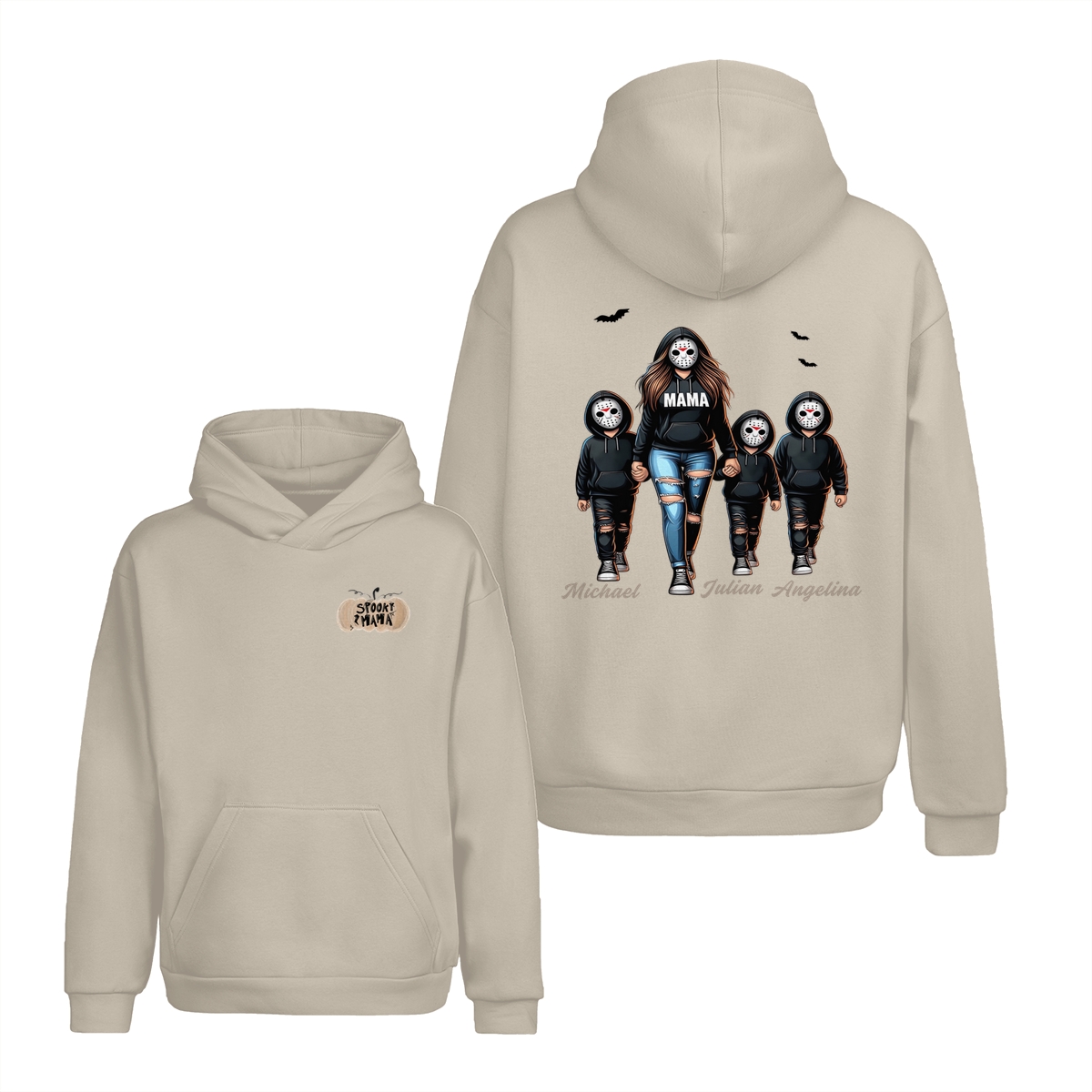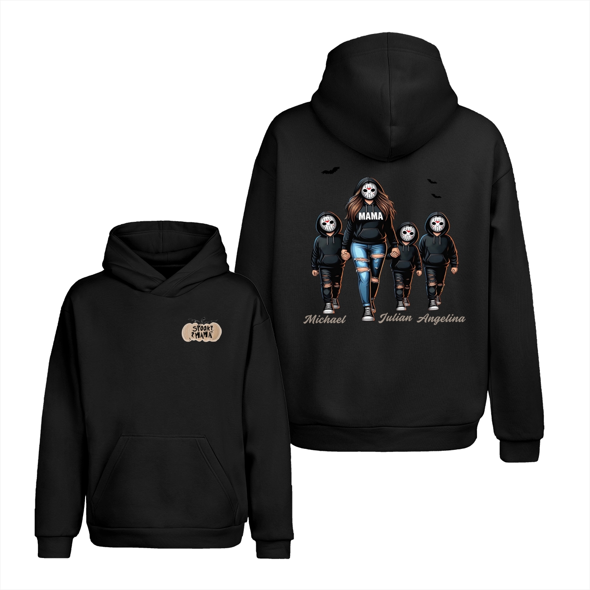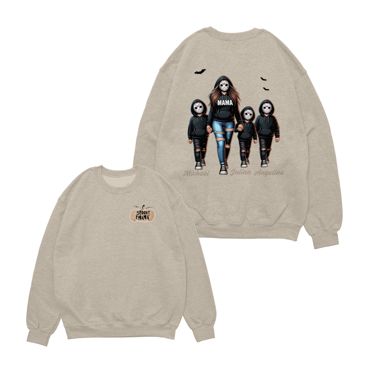 Spooky Mama Halloween Shirt – Custom Family Graphic with Mom and Kids in Masks, Matching Halloween Outfit, Gift for Spooky Season Menswear Tops