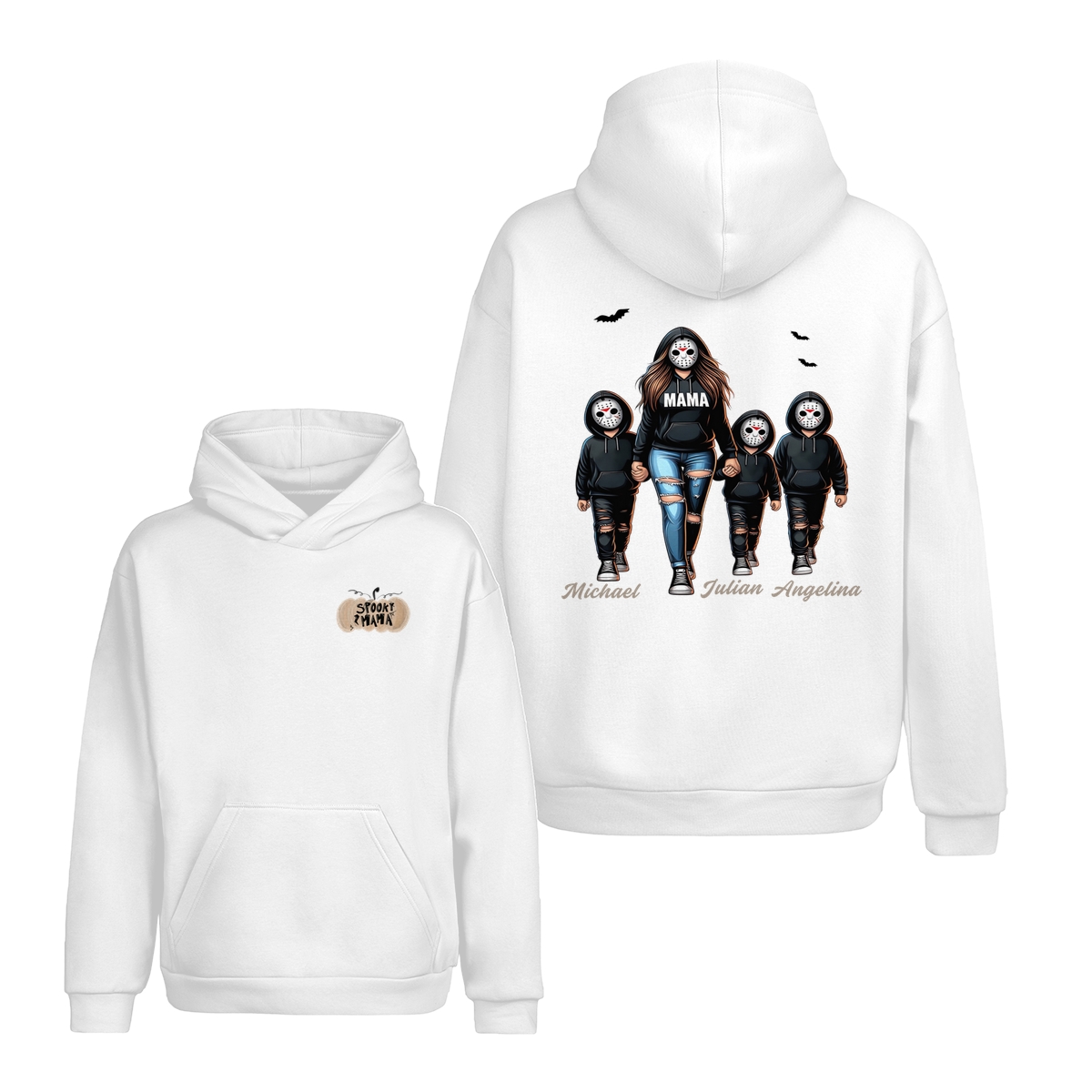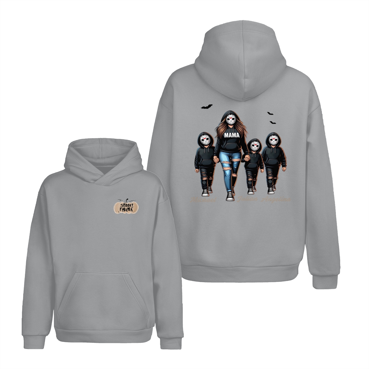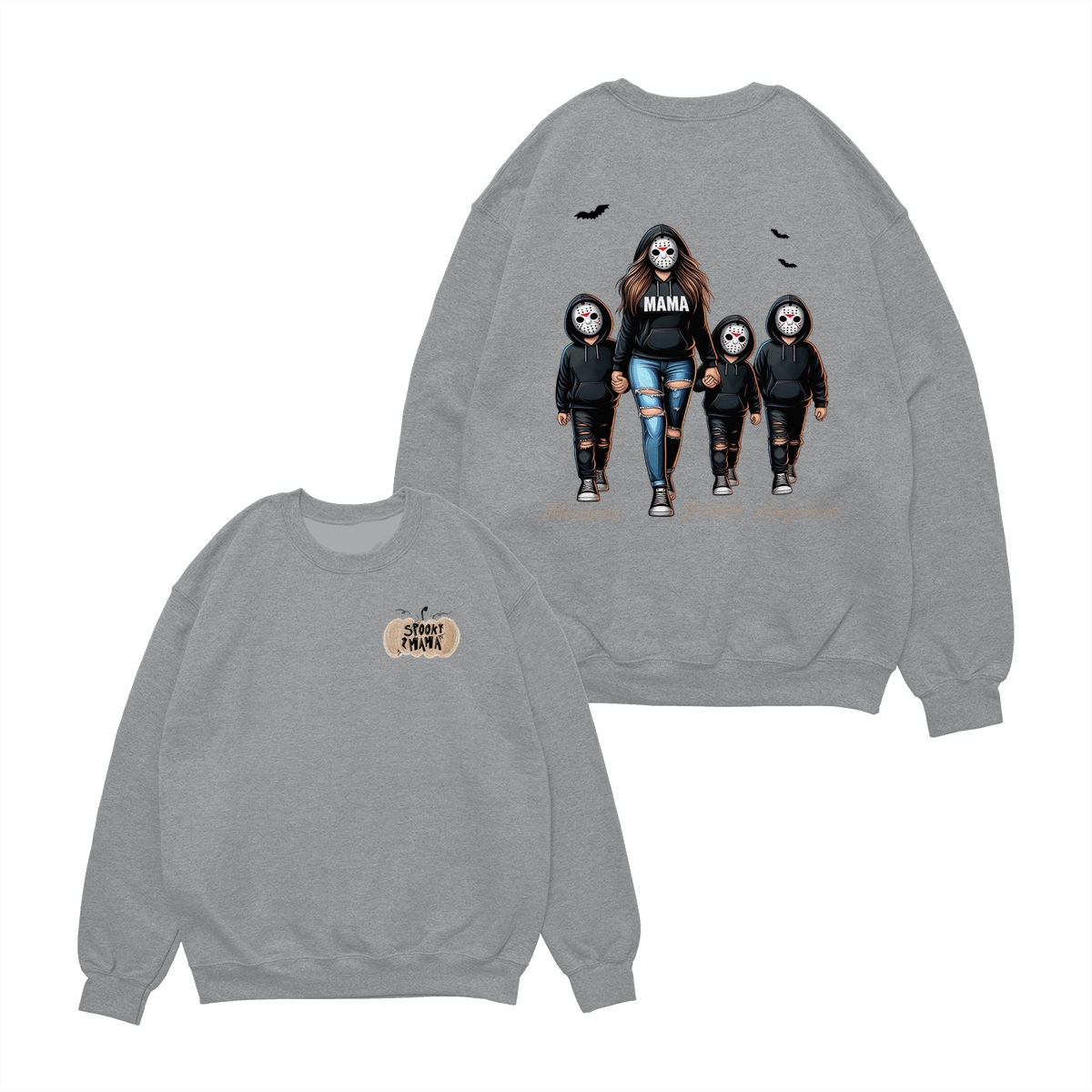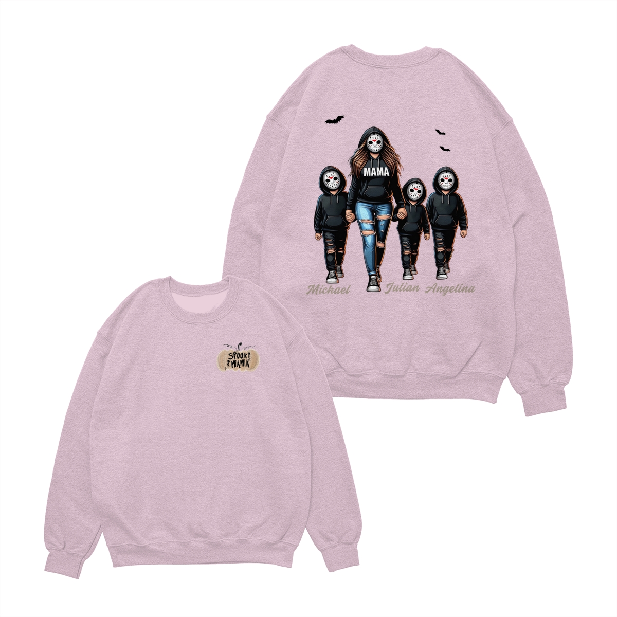 Spooky Mama Halloween Shirt – Custom Family Graphic with Mom and Kids in Masks, Matching Halloween Outfit, Gift for Spooky Season Menswear Tops