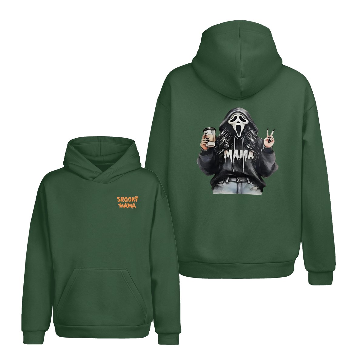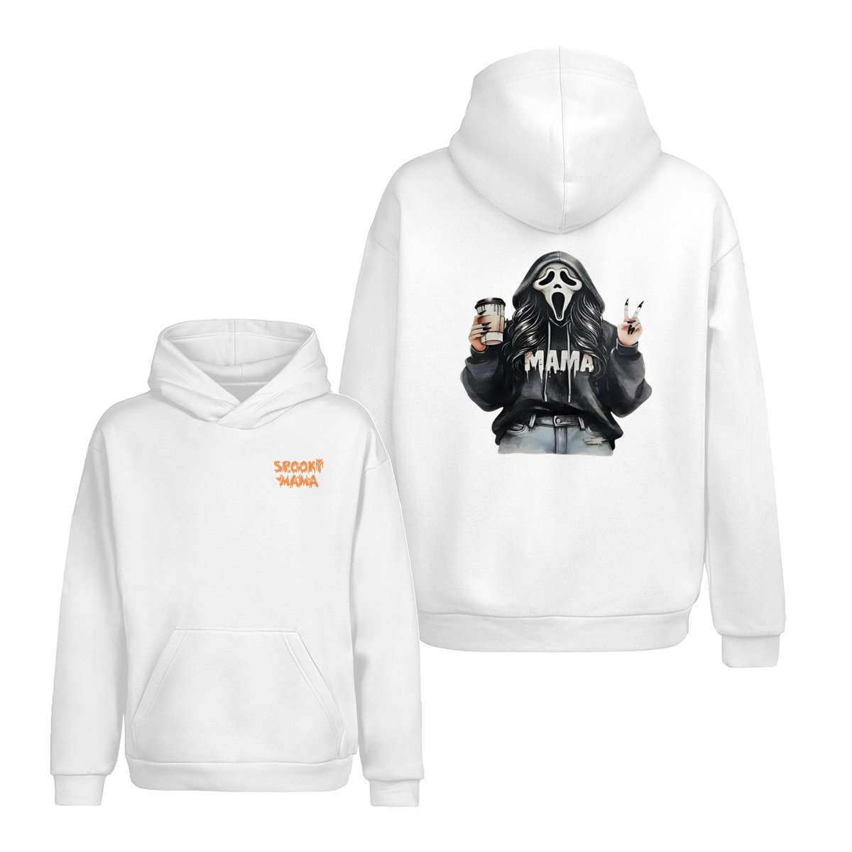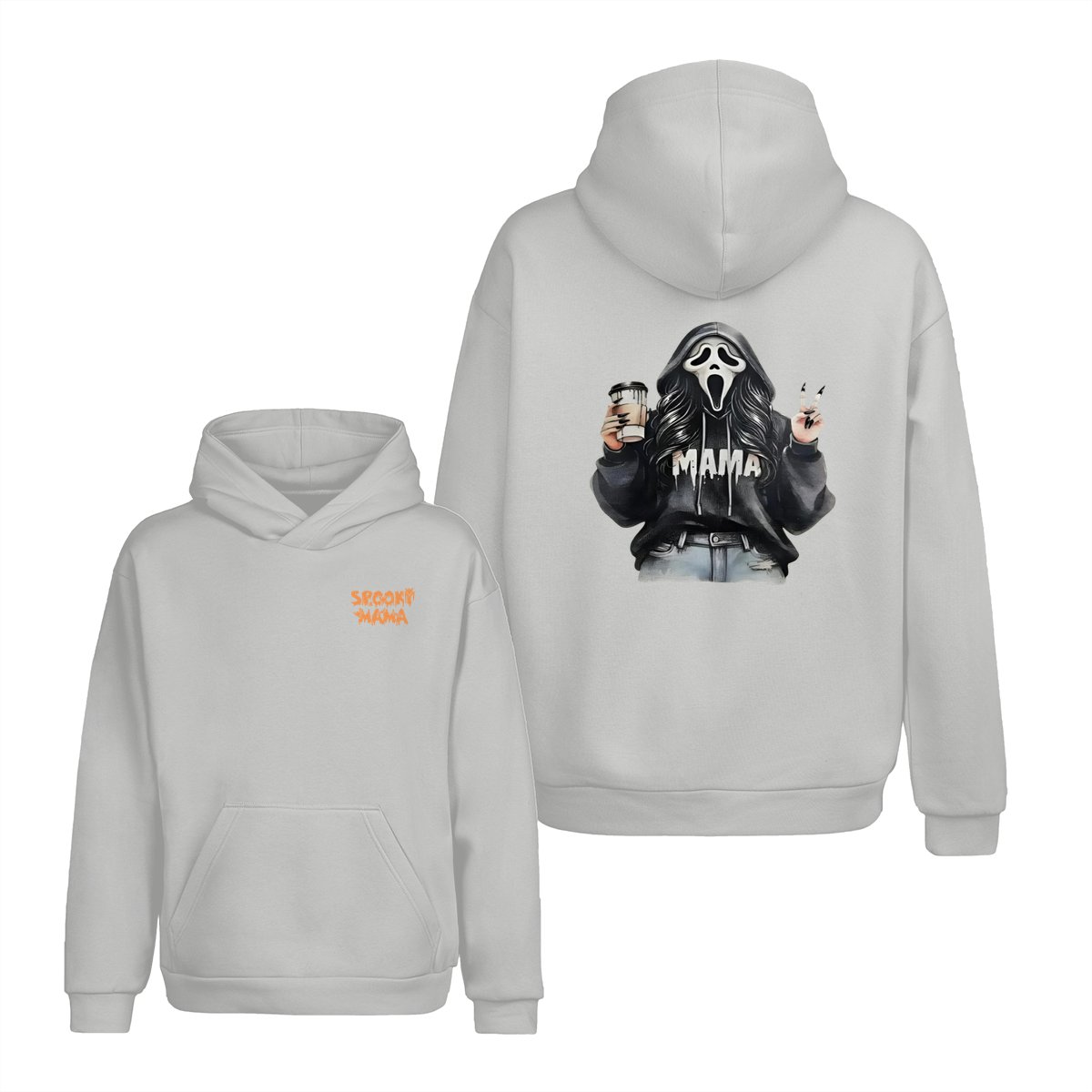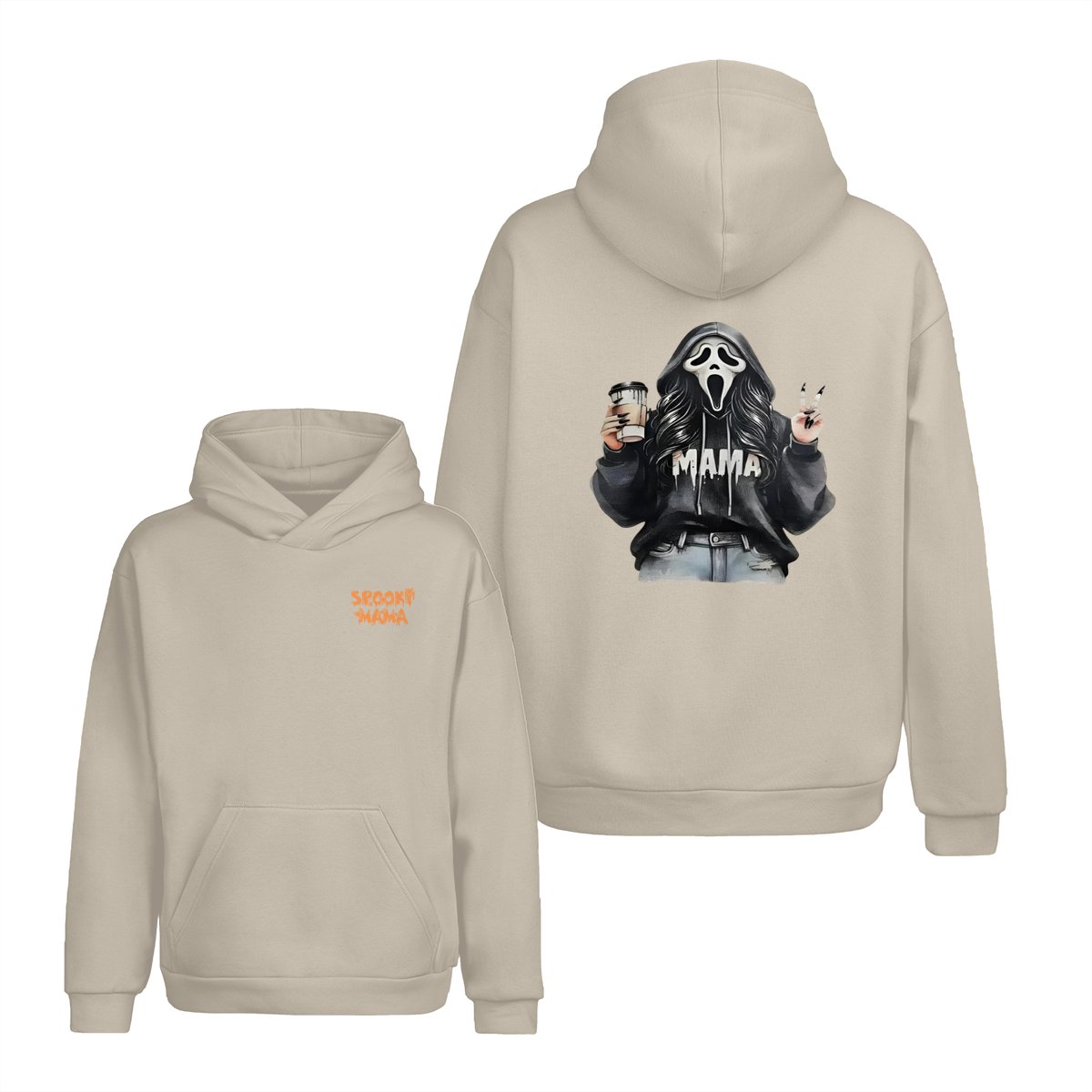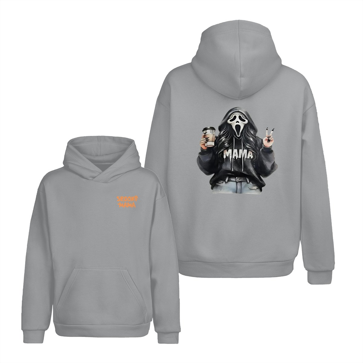 Spooky Mama Halloween Shirt, Ghostface Girl with Coffee Cup Graphic, Trendy Scary Mama Unisex Cotton Pullover for Women and Men, USA-Made & Printed Apparel