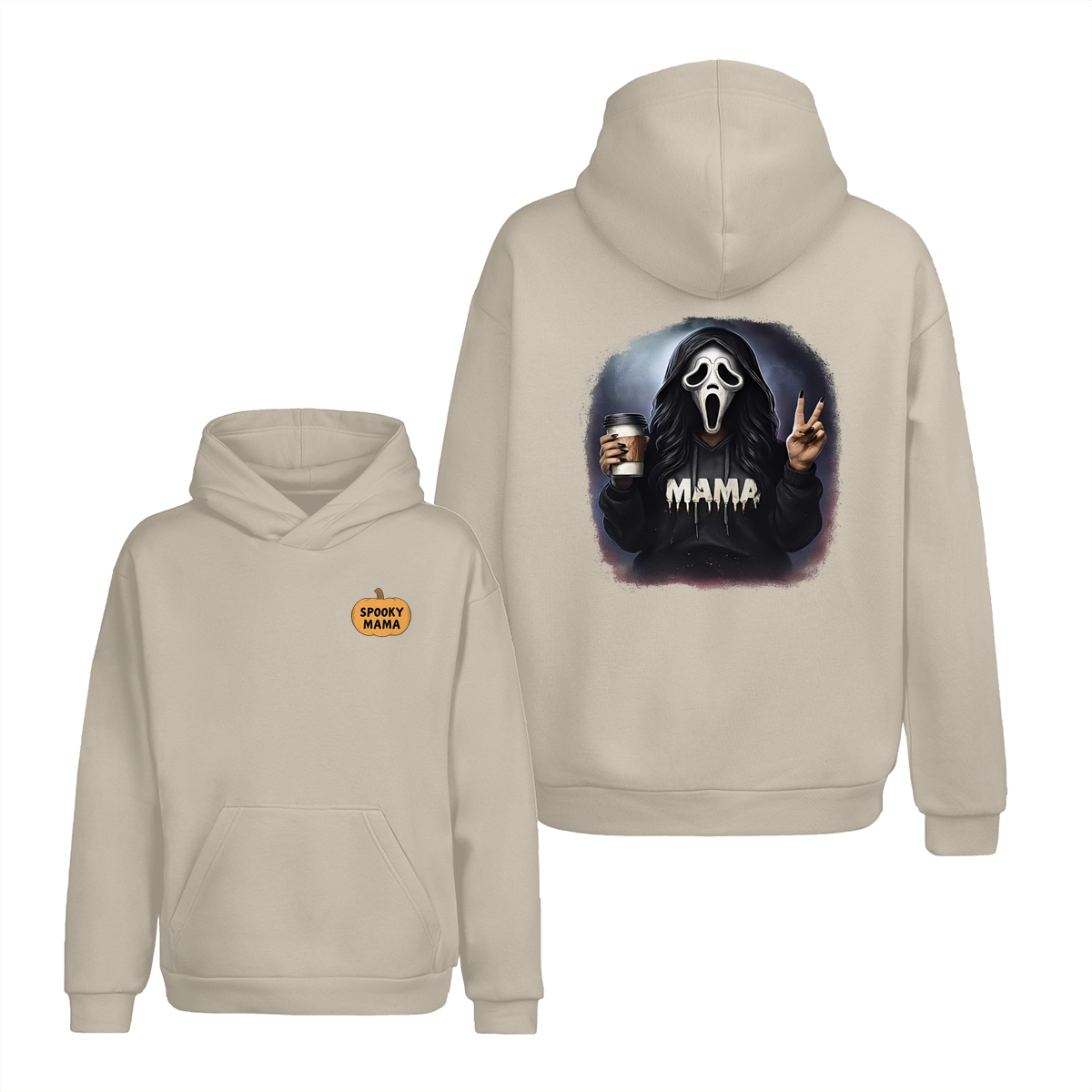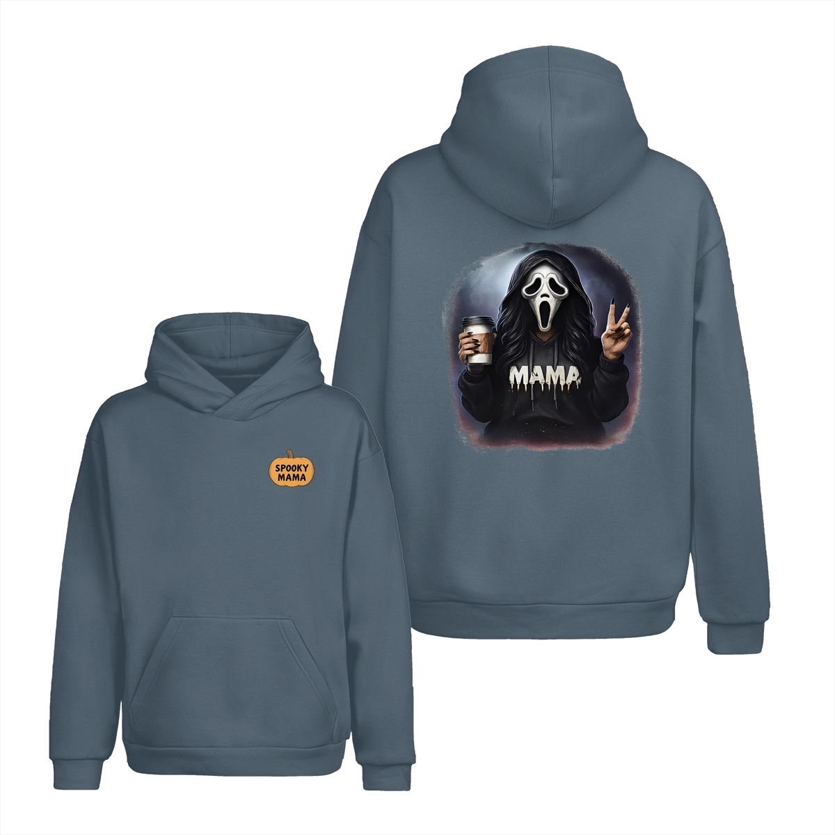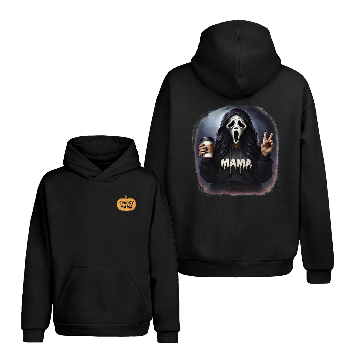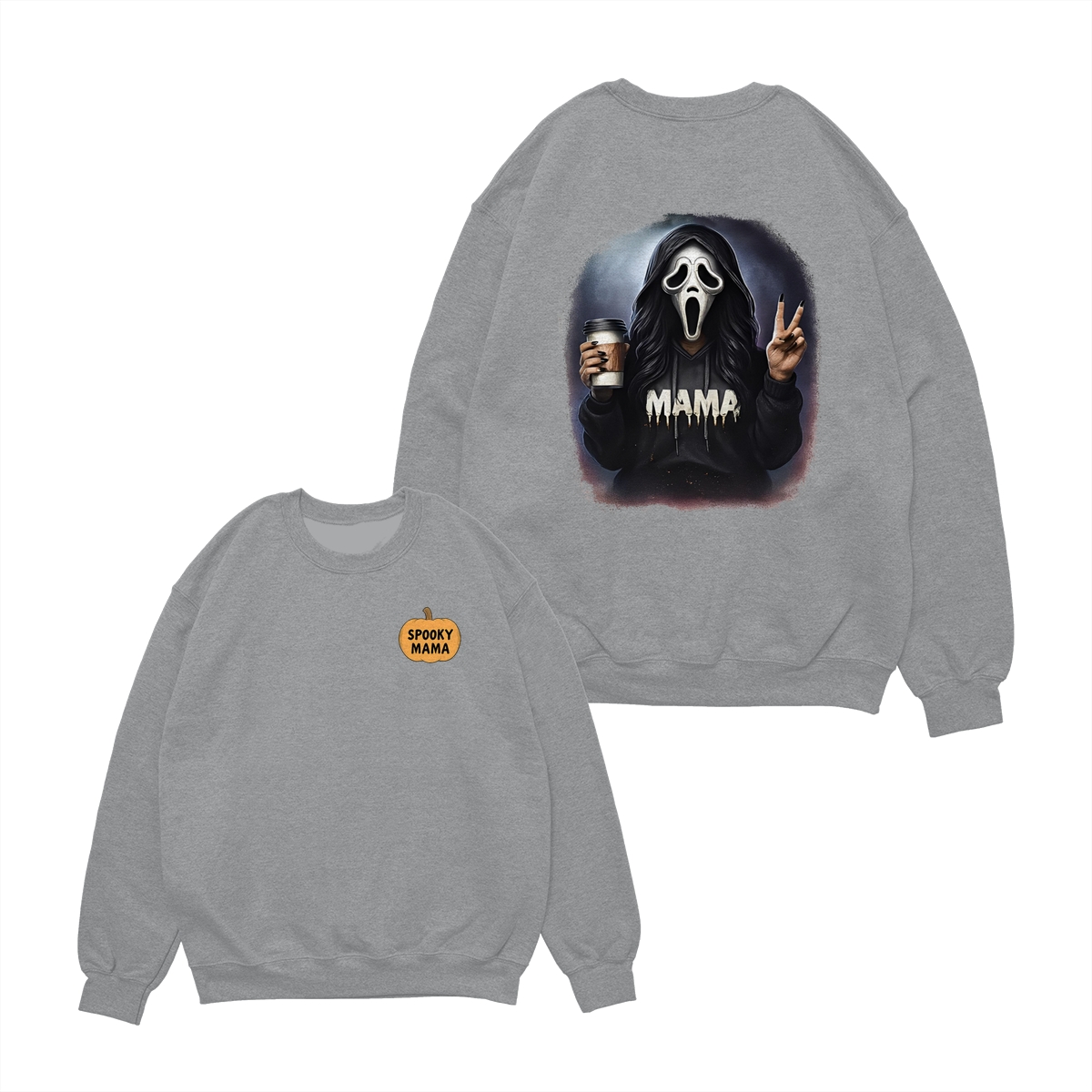 Spooky Mama Halloween T-Shirt, Scary Mask Graphic Tee with Coffee Cup, Horror Mom Shirt, Unisex Cotton Top, Fall Casual Outfit