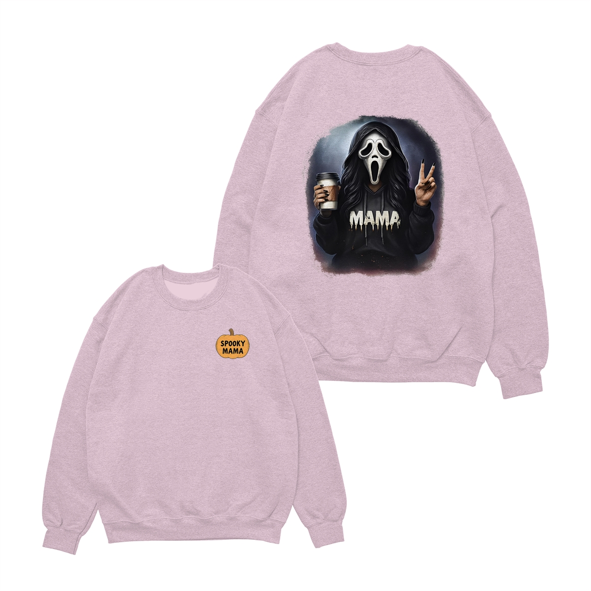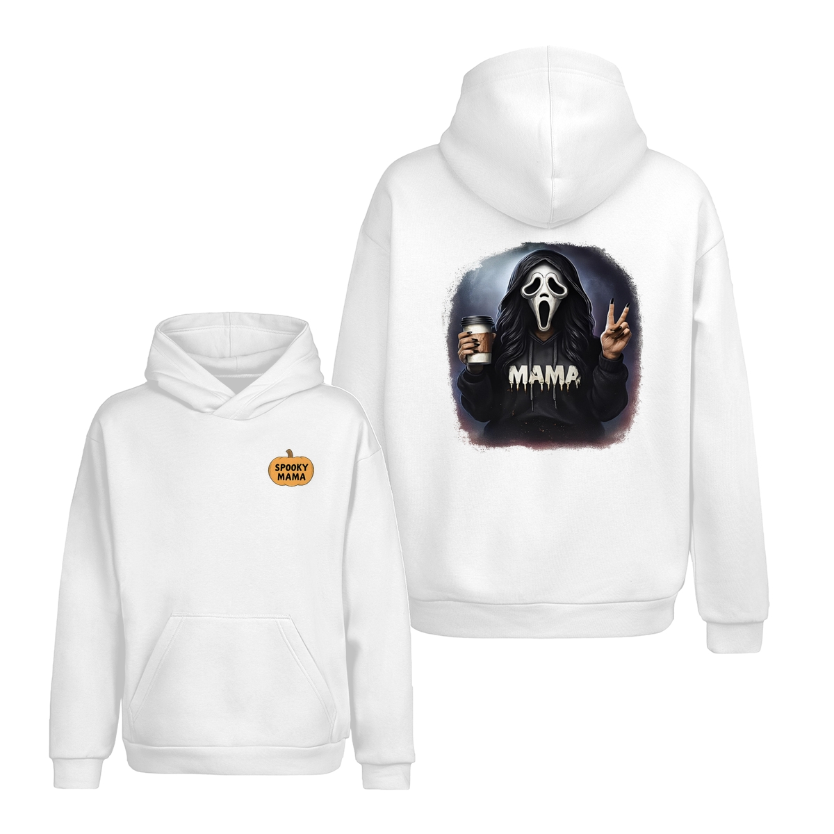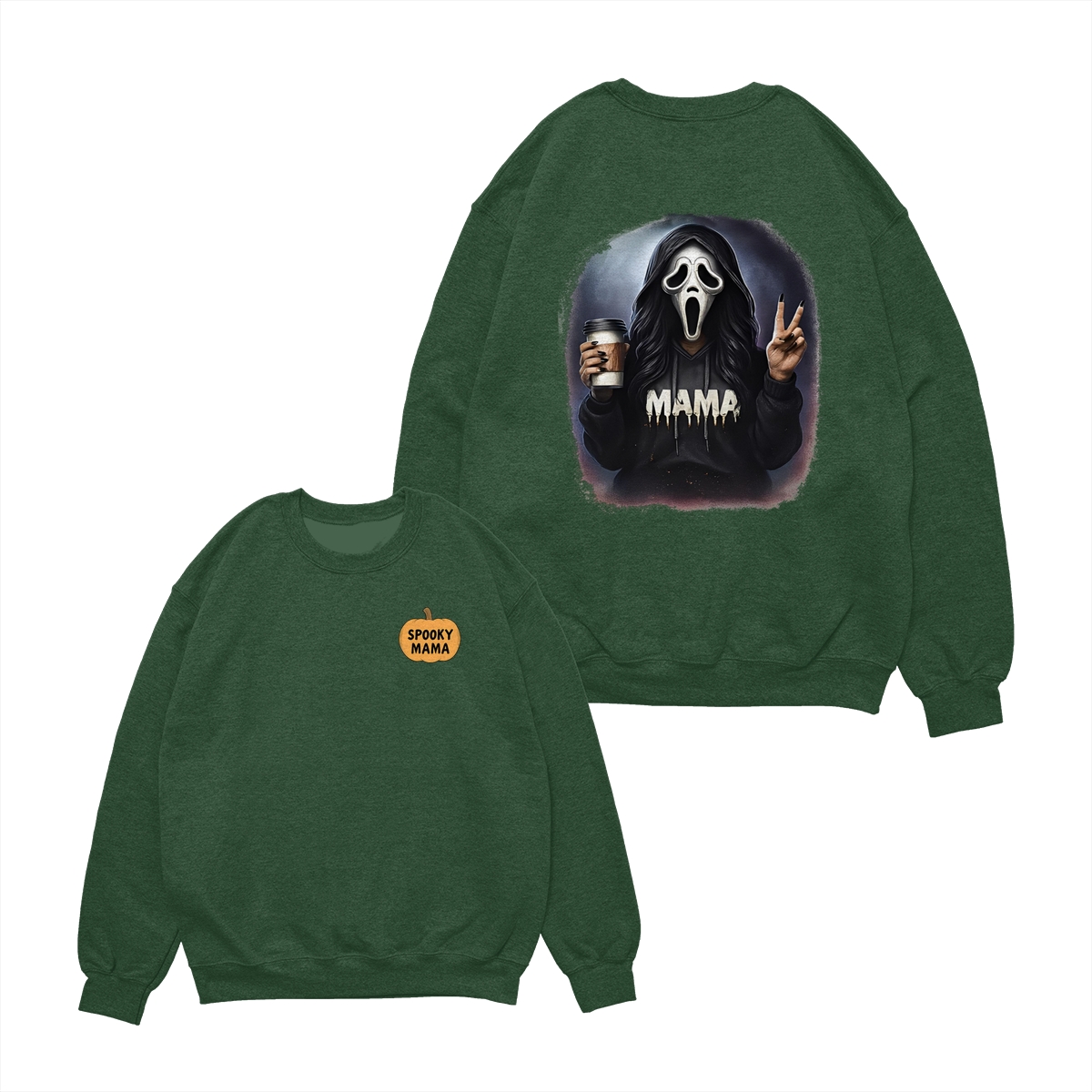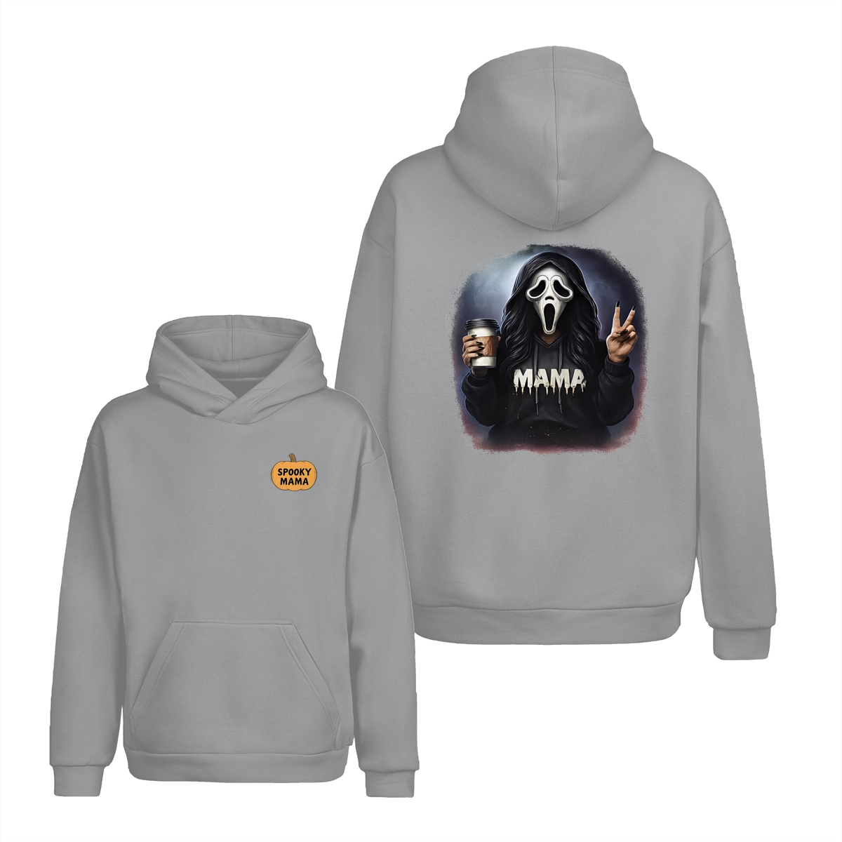 Spooky Mama Halloween T-Shirt, Scary Mask Graphic Tee with Coffee Cup, Horror Mom Shirt, Unisex Cotton Top, Fall Casual Outfit