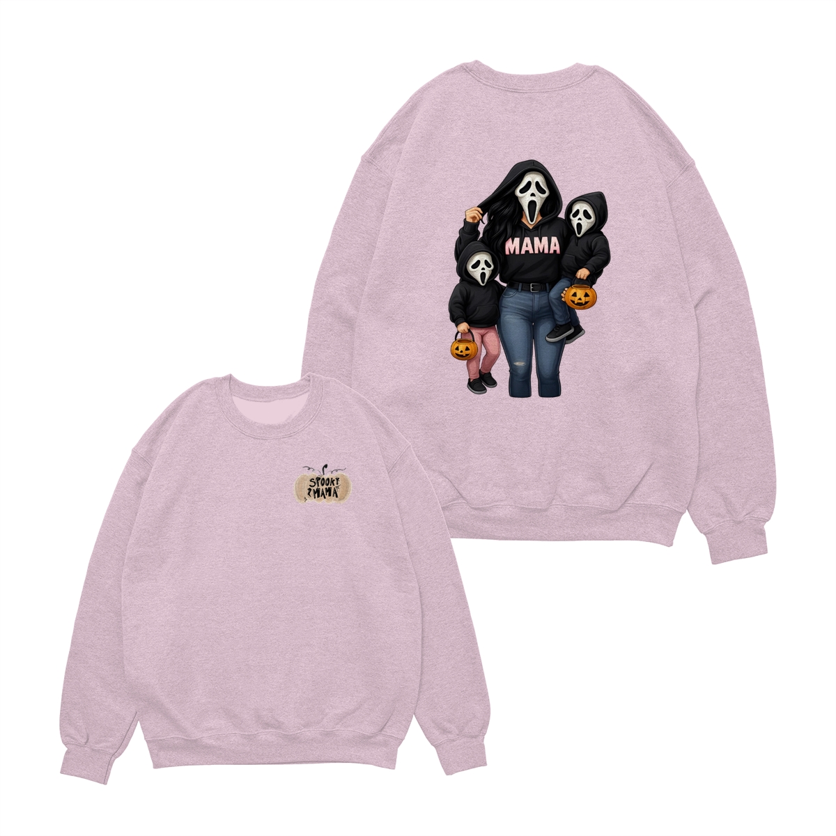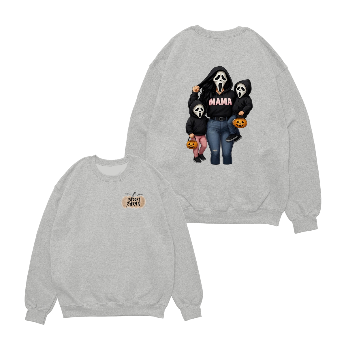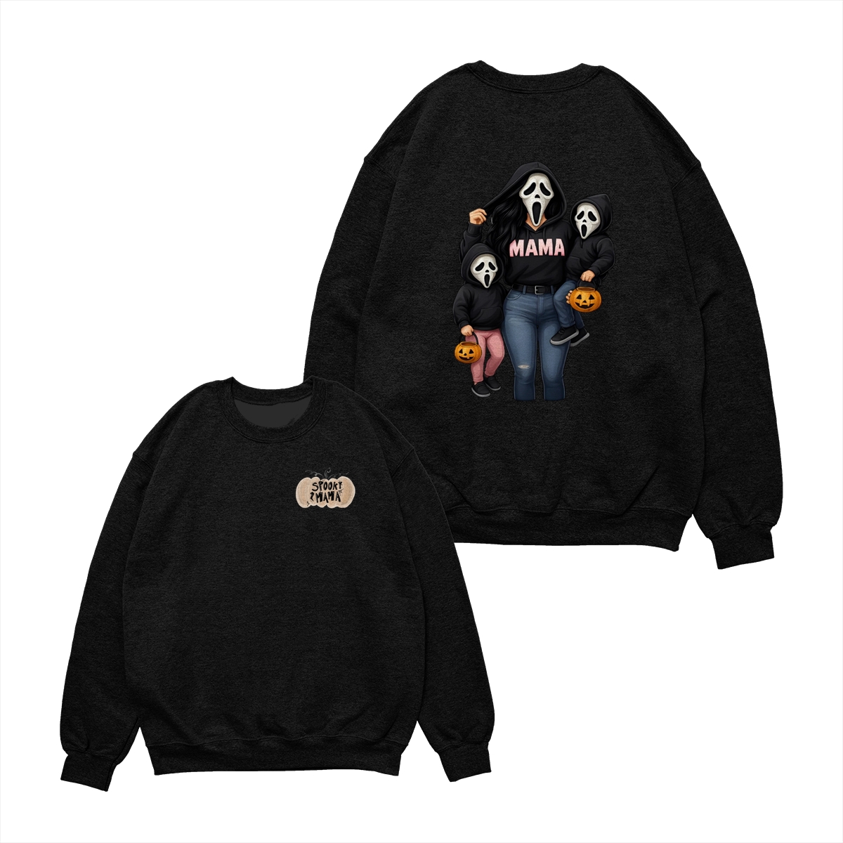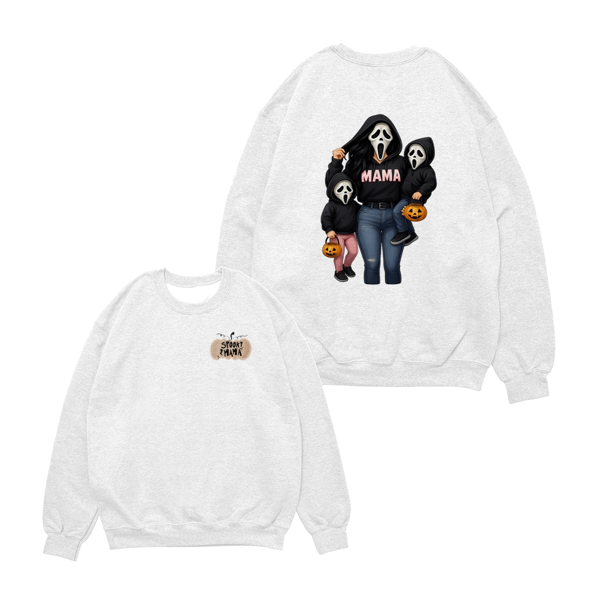 Spooky Mama Shirt – Cute Ghost Mask Family Design, Halloween Unisex Pullover for Moms, Perfect Gift for Trick or Treat Adventures, Fall Parties, and Family Matching Outfits