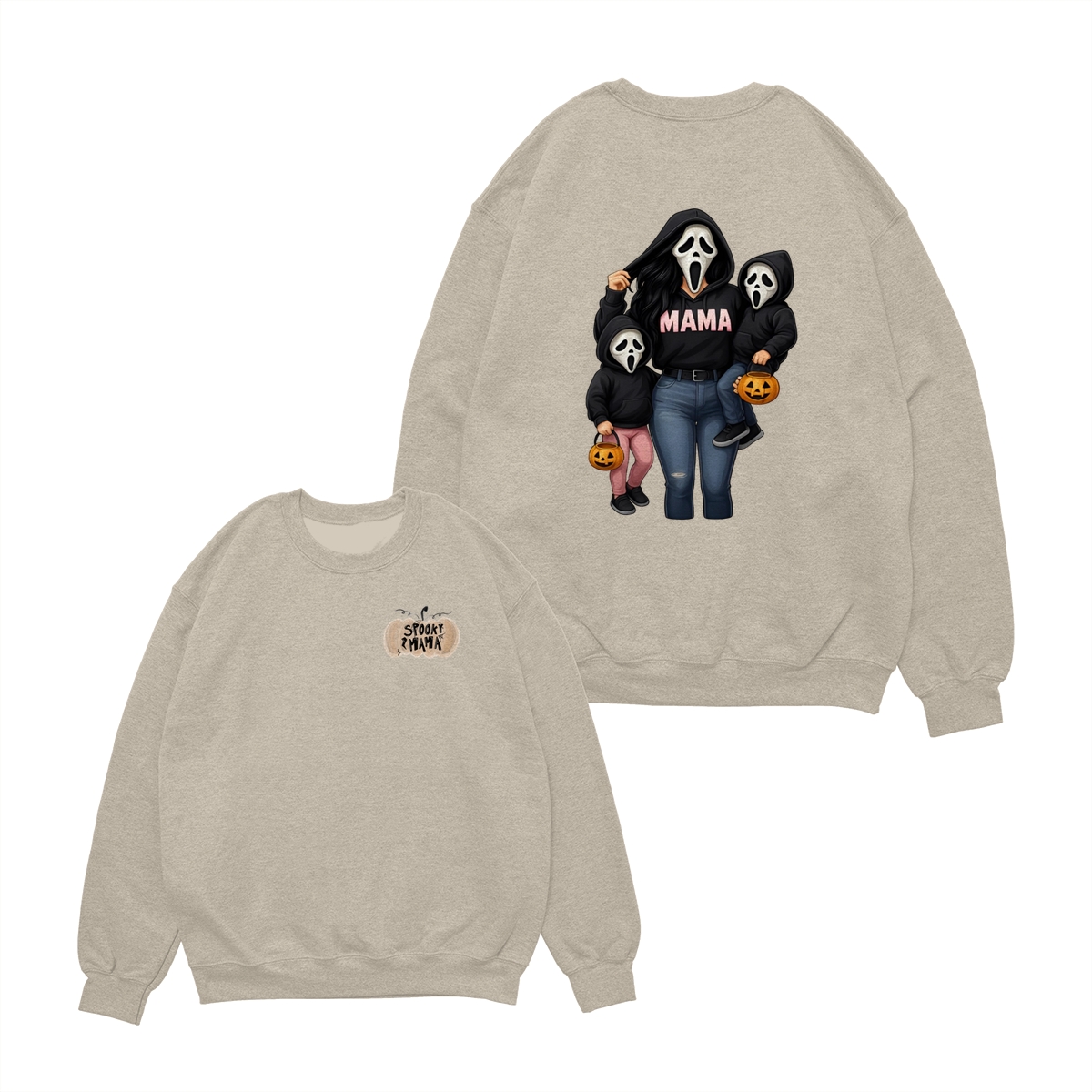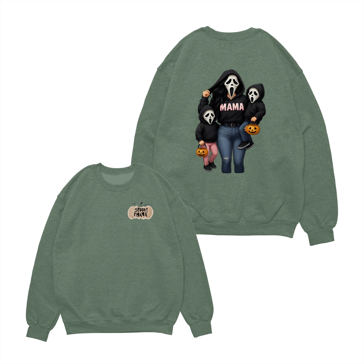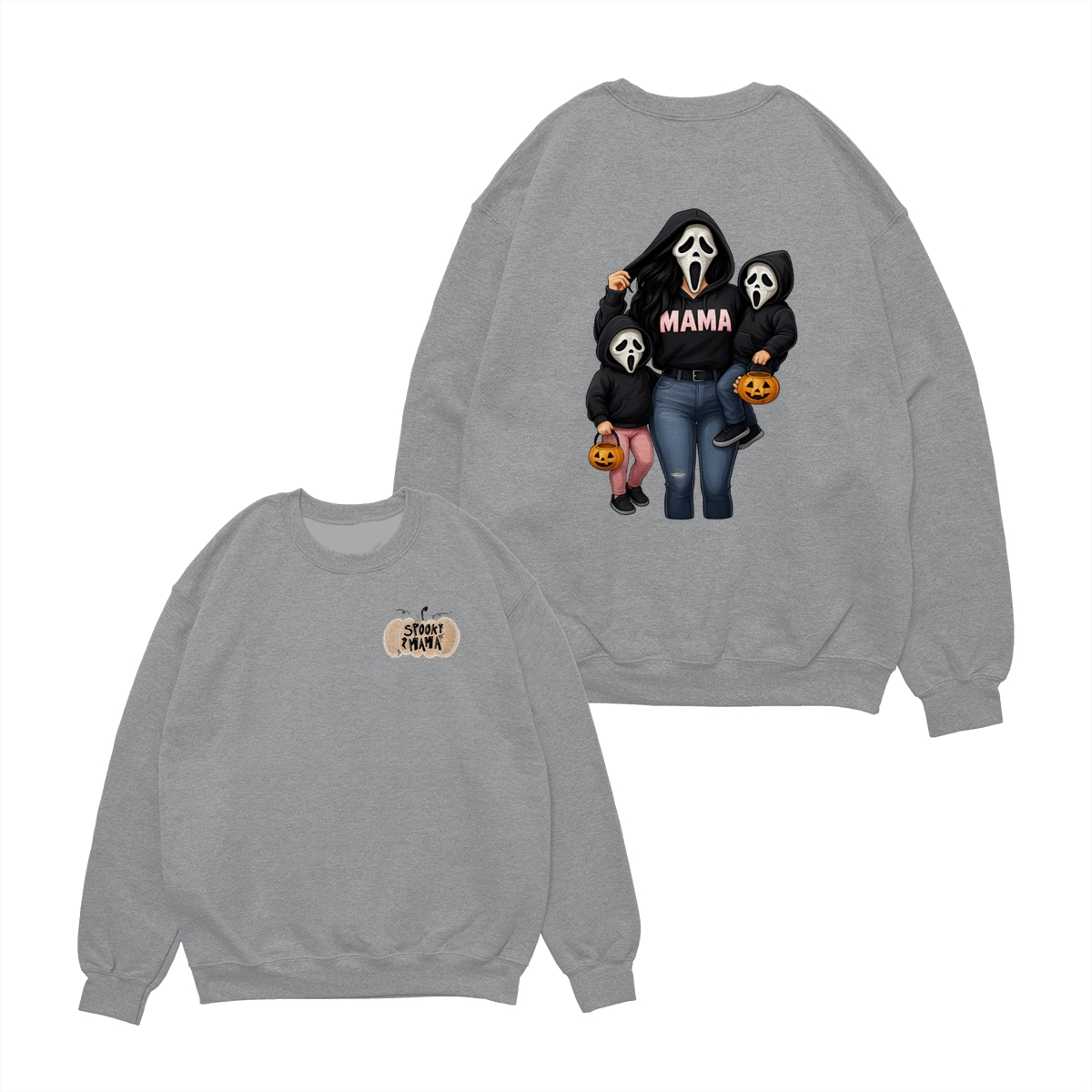 Spooky Mama Shirt – Cute Ghost Mask Family Design, Halloween Unisex Pullover for Moms, Perfect Gift for Trick or Treat Adventures, Fall Parties, and Family Matching Outfits