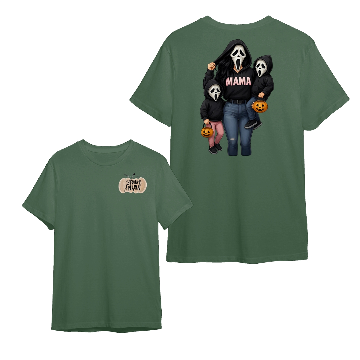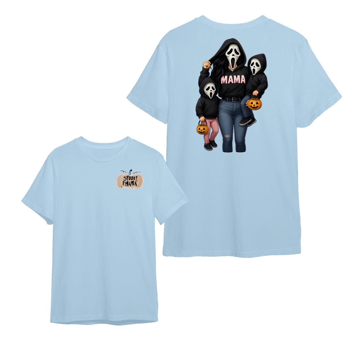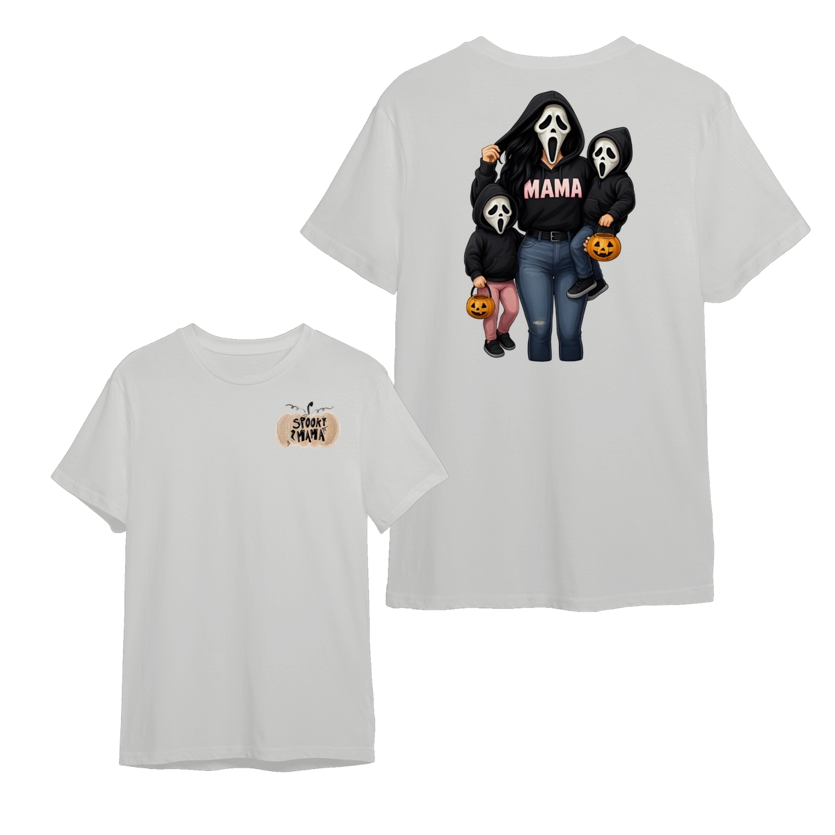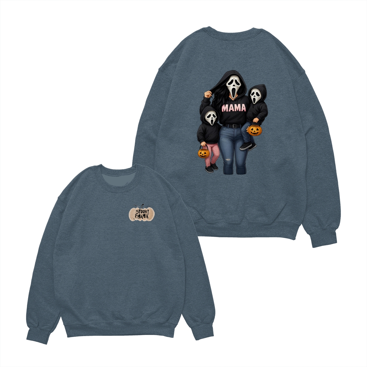 Spooky Mama Shirt – Cute Ghost Mask Family Design, Halloween Unisex Pullover for Moms, Perfect Gift for Trick or Treat Adventures, Fall Parties, and Family Matching Outfits