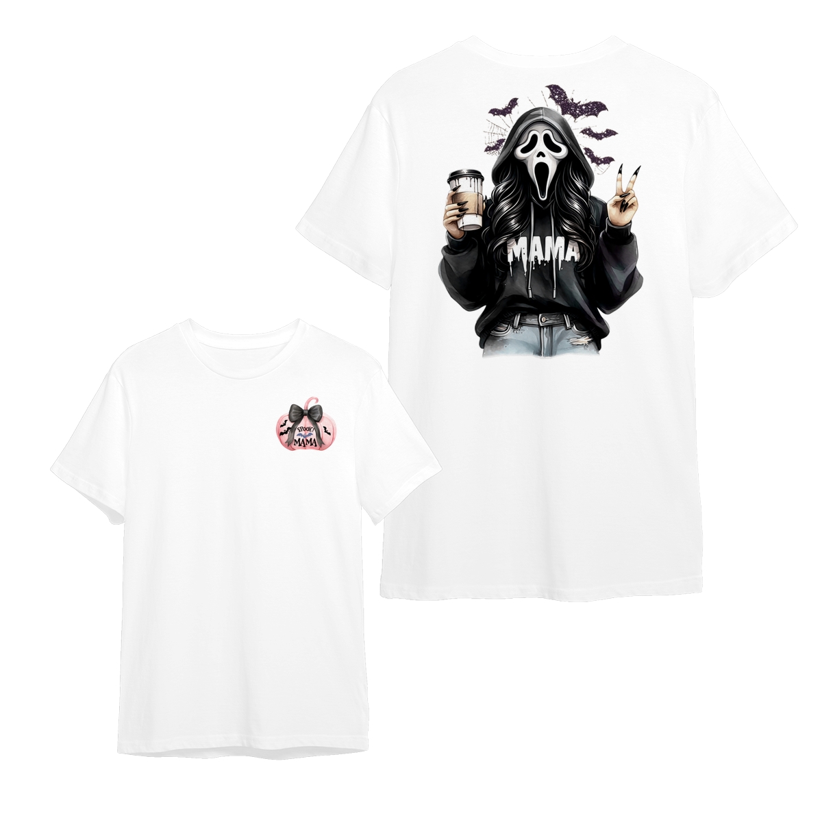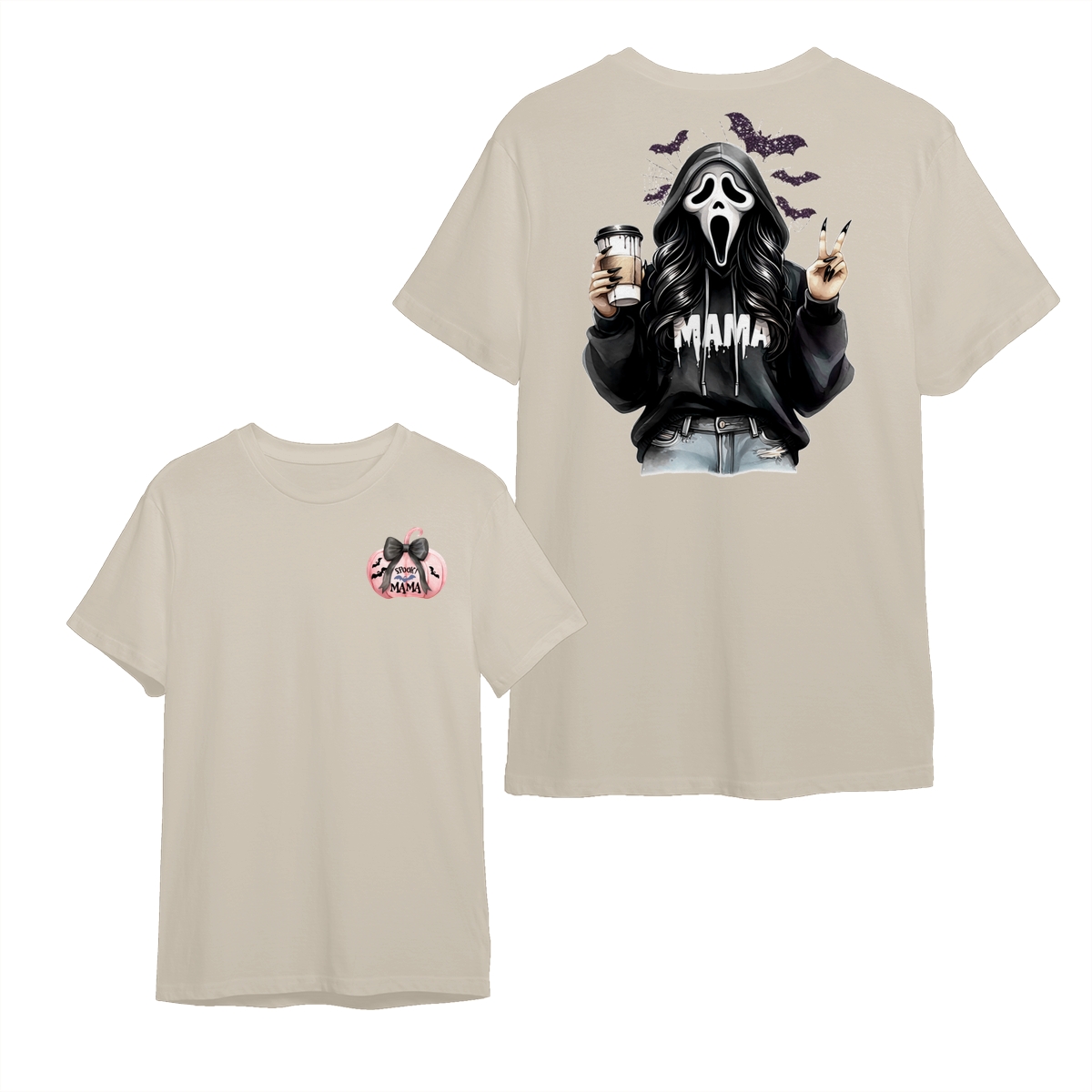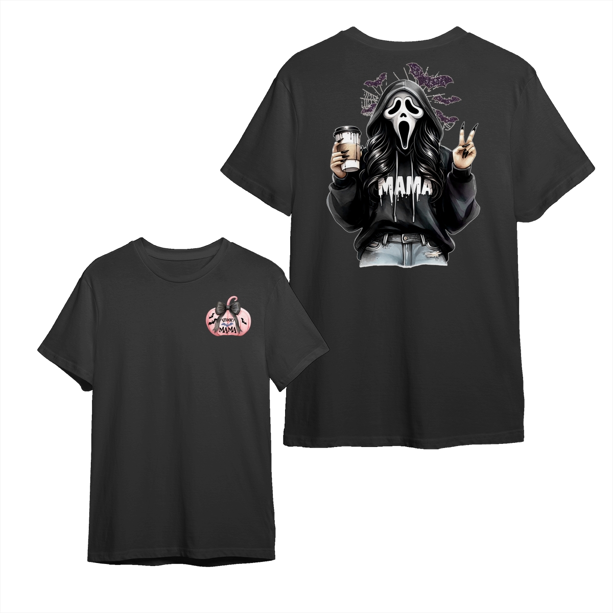 Spooky Mama Shirt – Halloween Coffee Lover Graphic Sweatshirt, Cute Scary Mom Fall Outfit, Cozy Streetwear for Women Tops