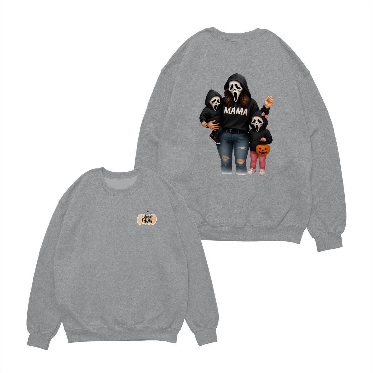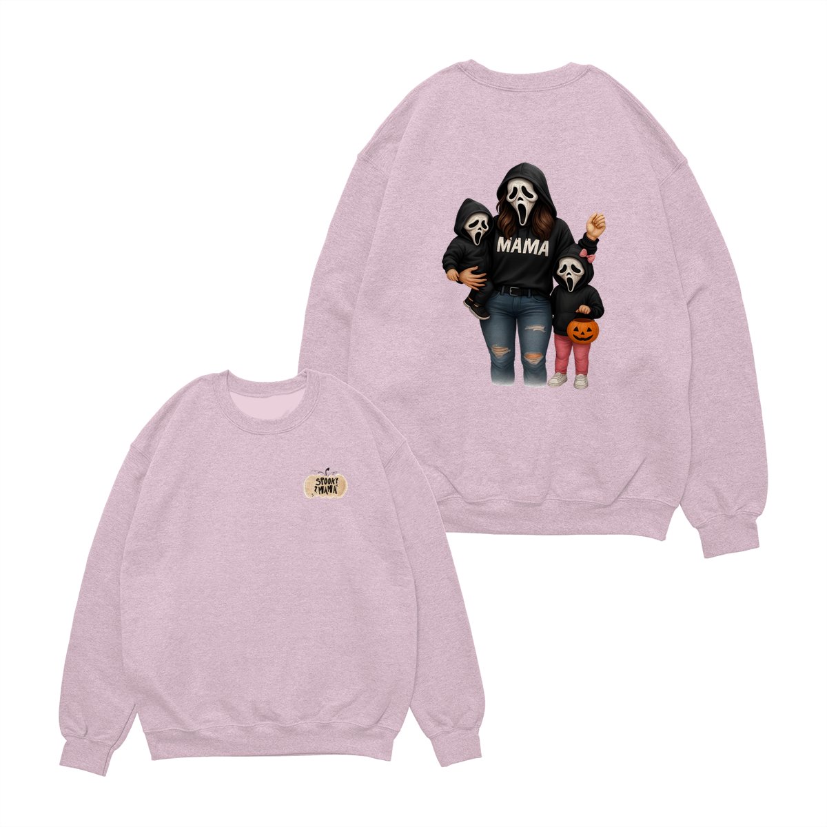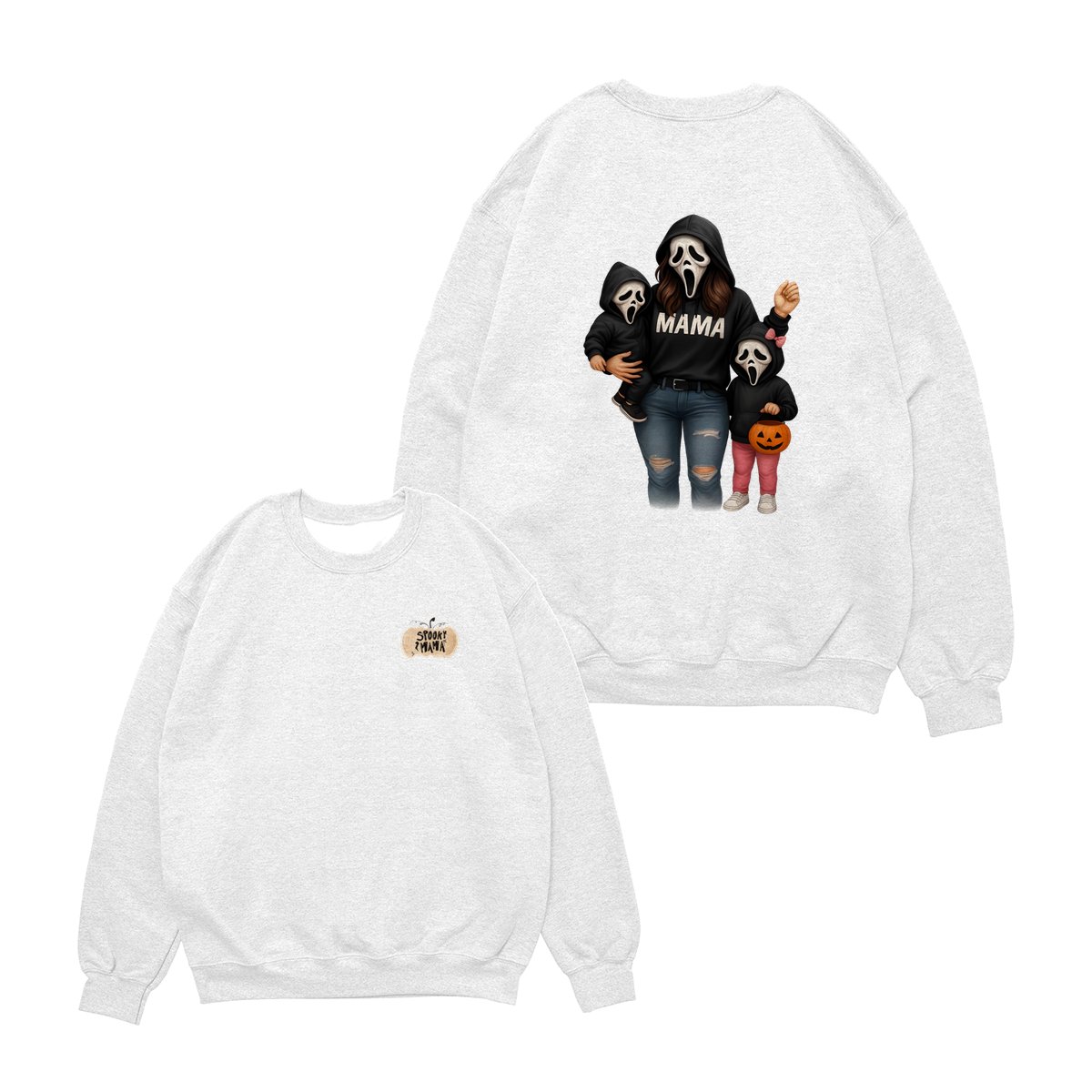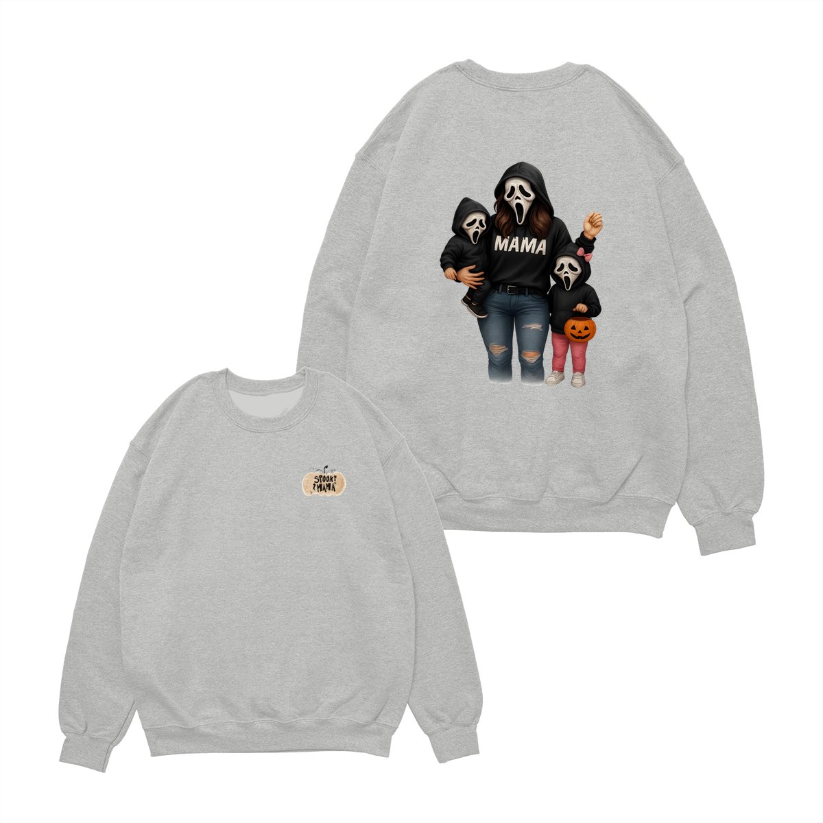 Spooky Mama Shirt – Halloween Family Ghost Face Design, Unisex Pullover Sweatshirt for Moms, Great Trick or Treat Outfit and Gift Idea for Fall Season Celebrations