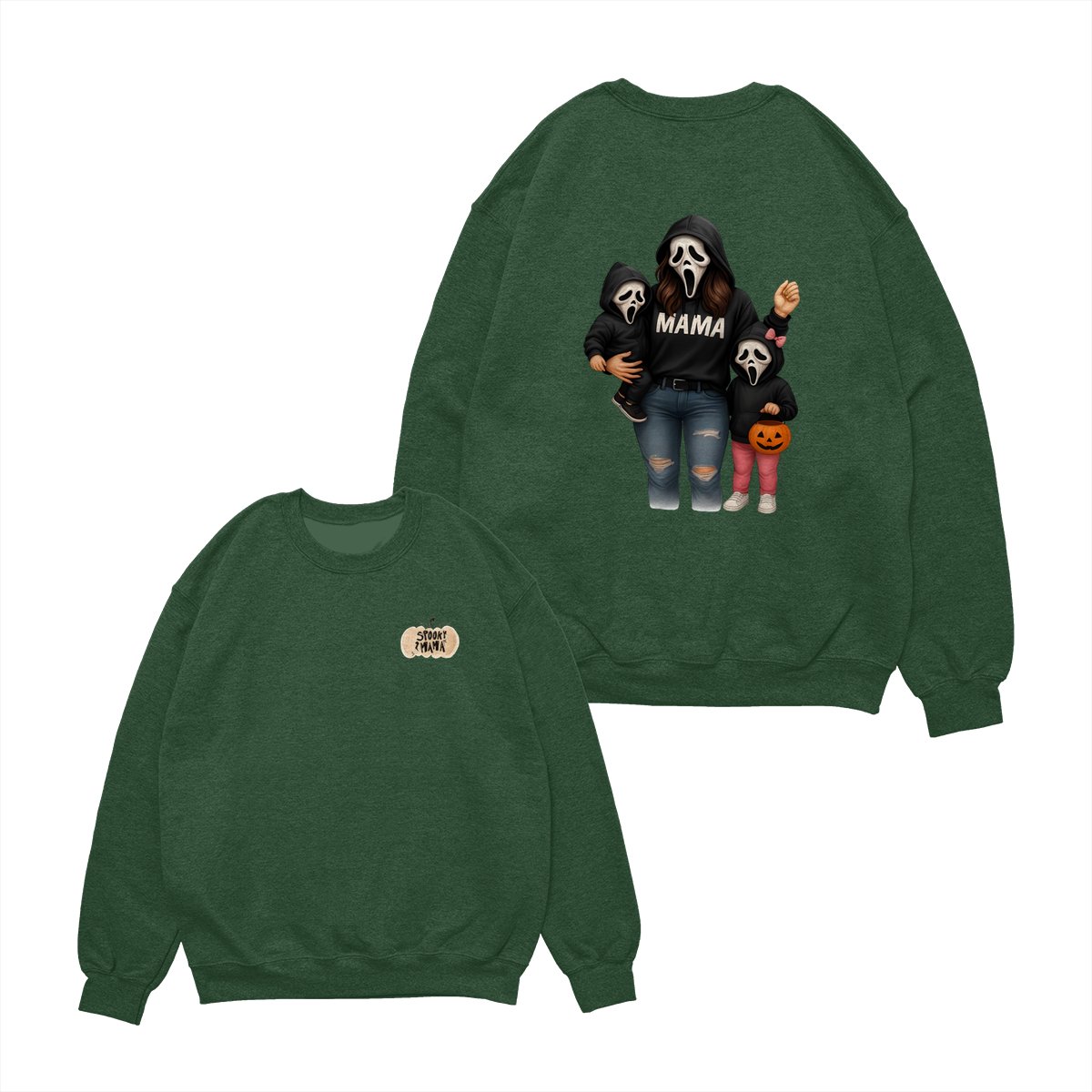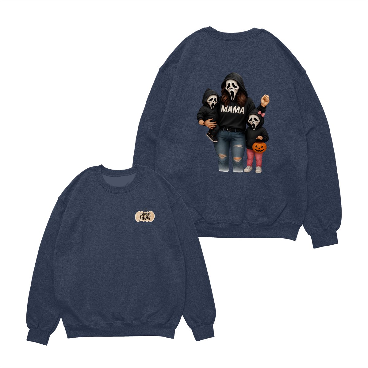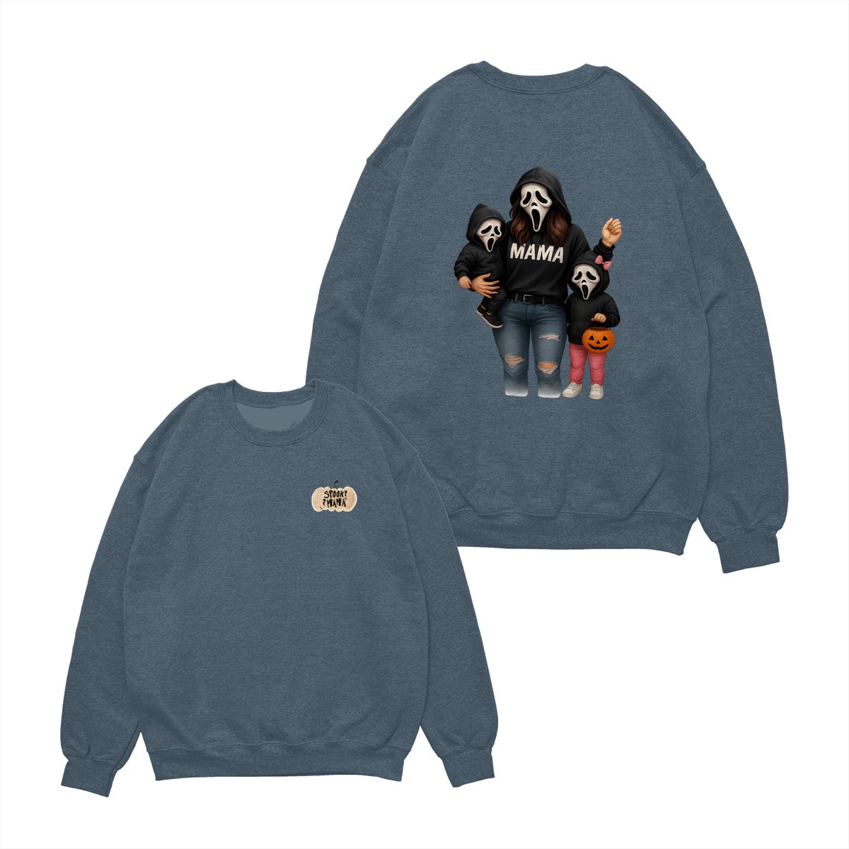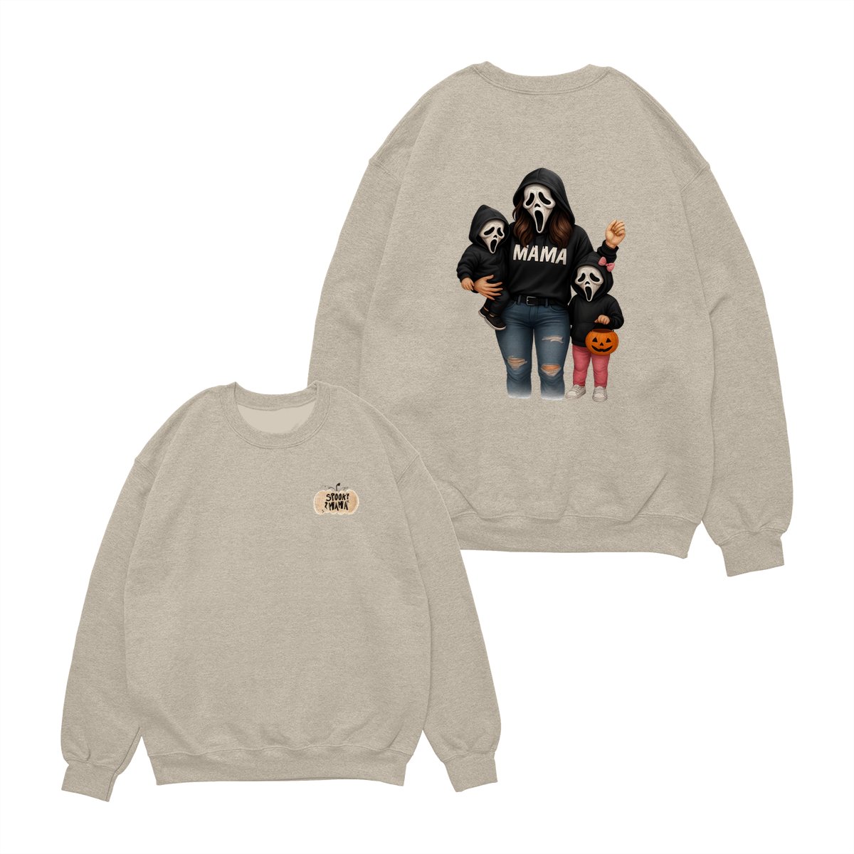 Spooky Mama Shirt – Halloween Family Ghost Face Design, Unisex Pullover Sweatshirt for Moms, Great Trick or Treat Outfit and Gift Idea for Fall Season Celebrations