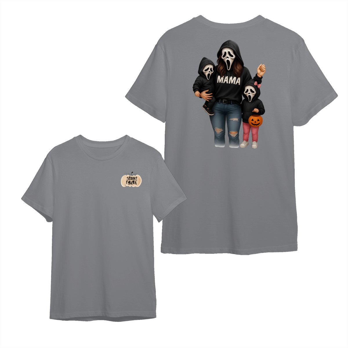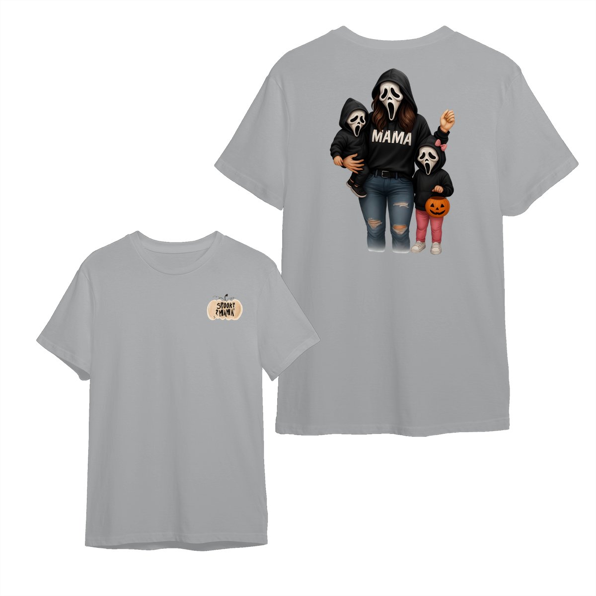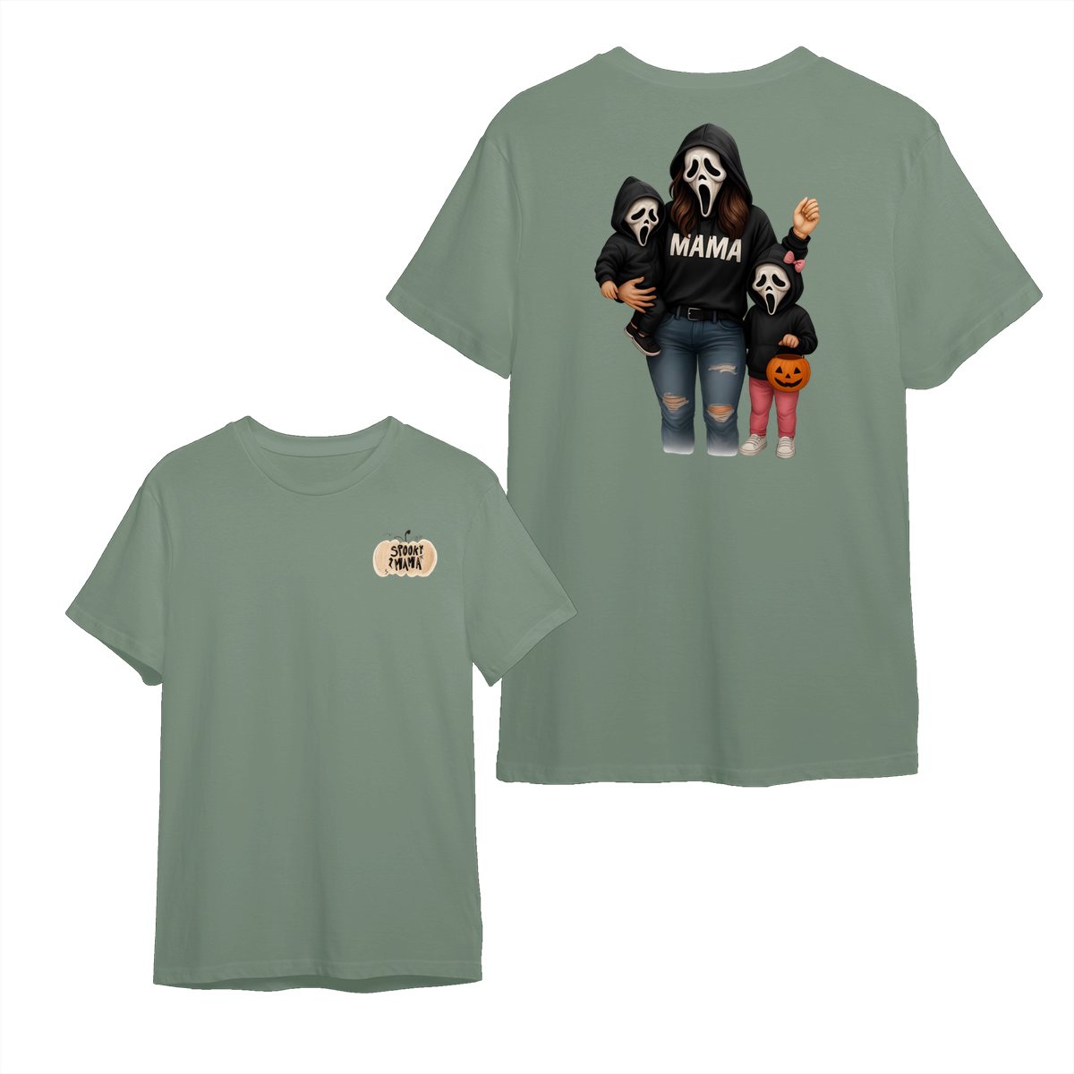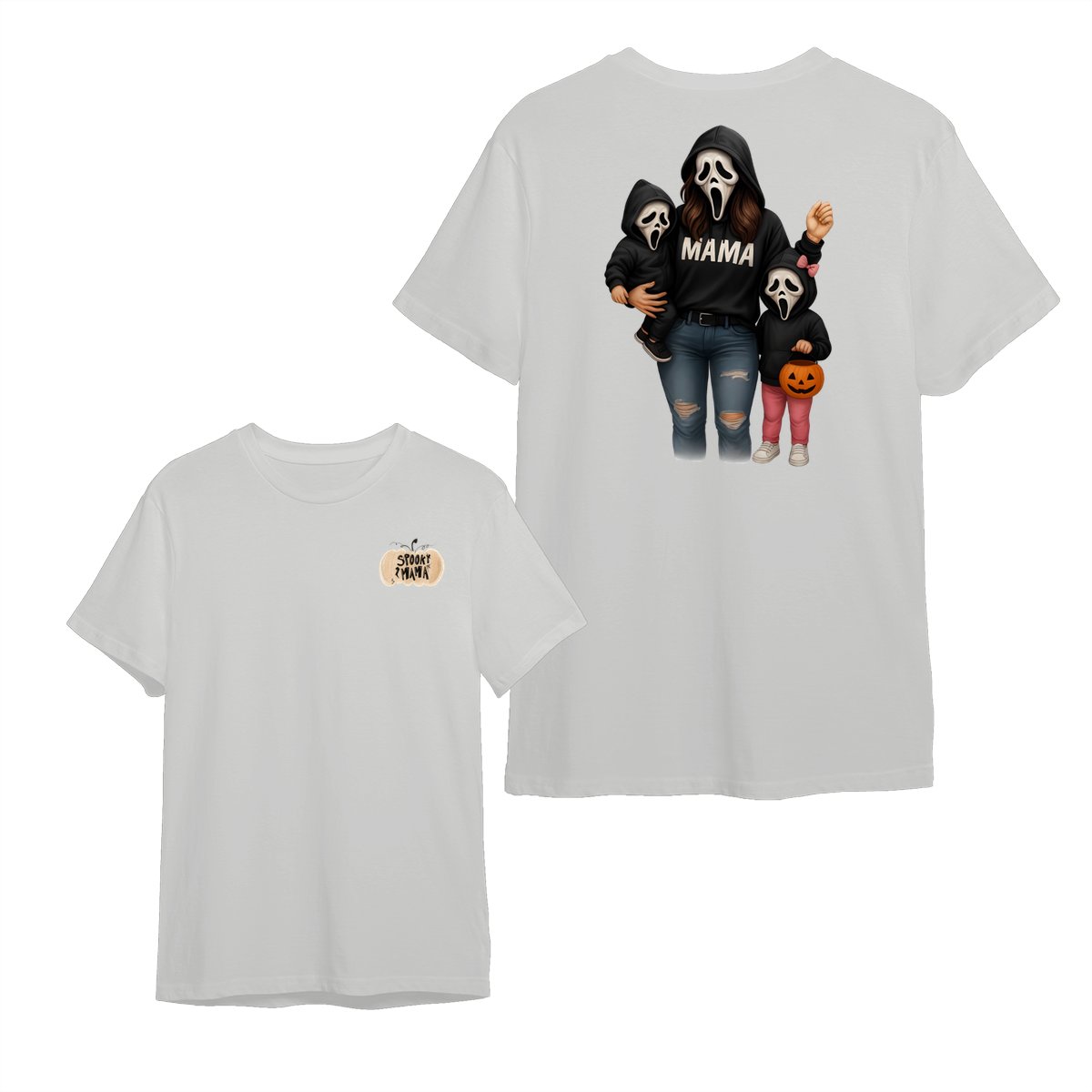 Spooky Mama Shirt – Halloween Family Ghost Face Design, Unisex Pullover Sweatshirt for Moms, Great Trick or Treat Outfit and Gift Idea for Fall Season Celebrations