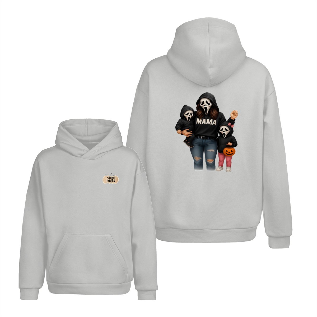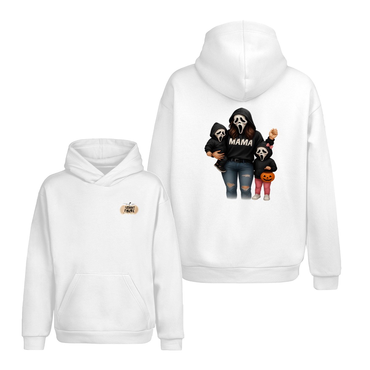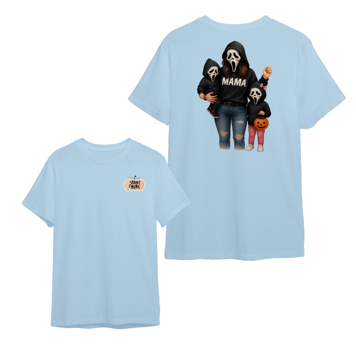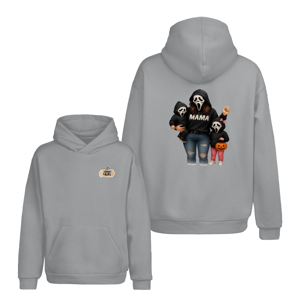 Spooky Mama Shirt – Halloween Family Ghost Face Design, Unisex Pullover Sweatshirt for Moms, Great Trick or Treat Outfit and Gift Idea for Fall Season Celebrations