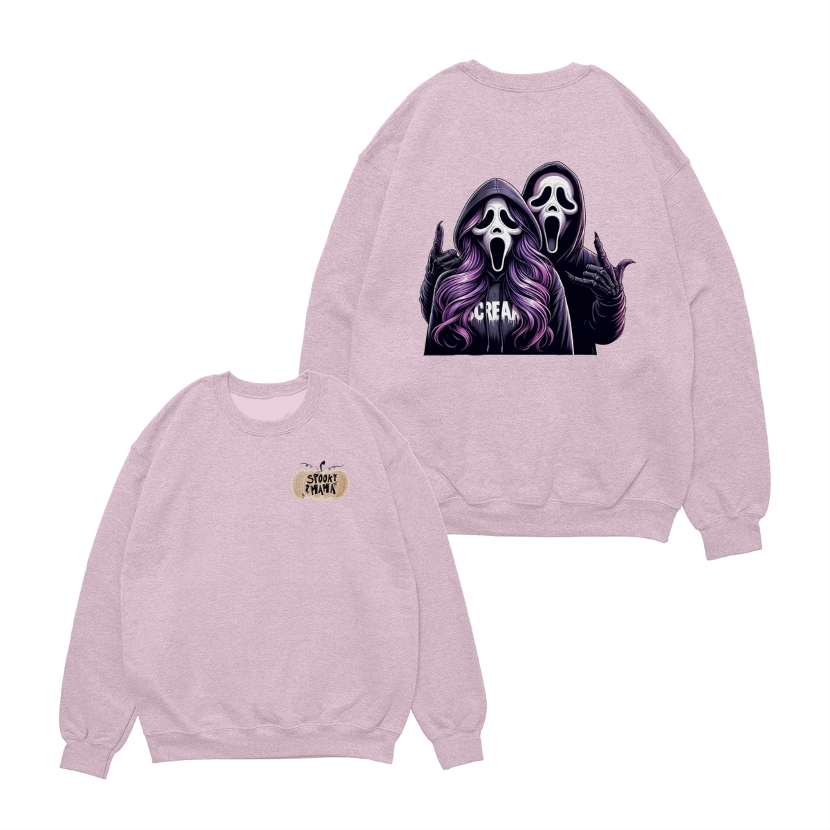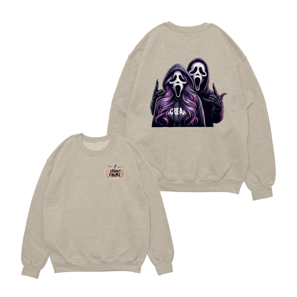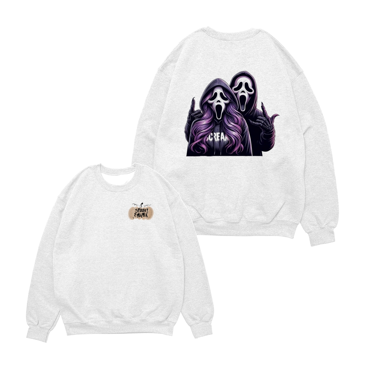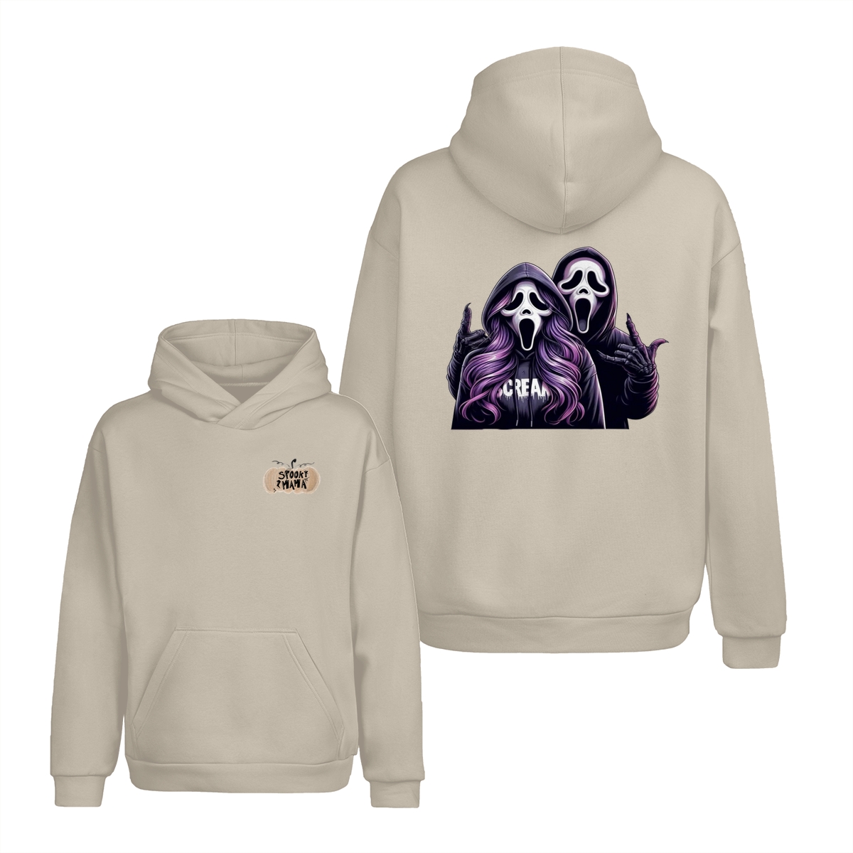 Spooky Mama Shirt – Sweatshirt – Hoodie, Funny Halloween Sweatshirt With Two Ghost Faces, Scary Season Coffee Lover Outfit, Fall Hoodie For Moms, Halloween Gift