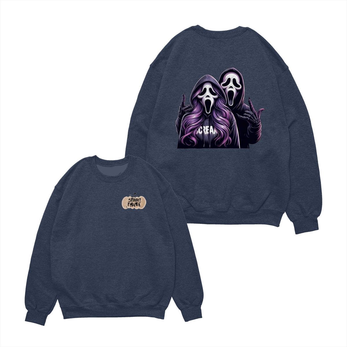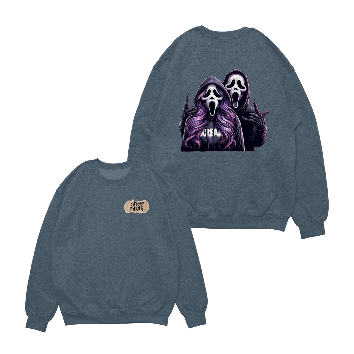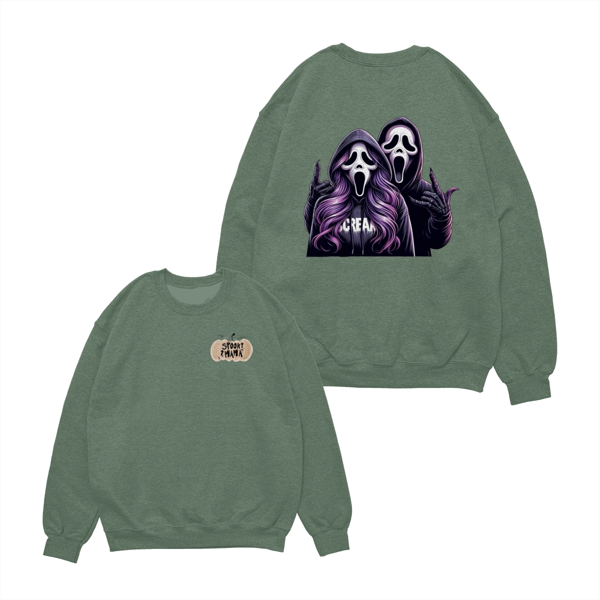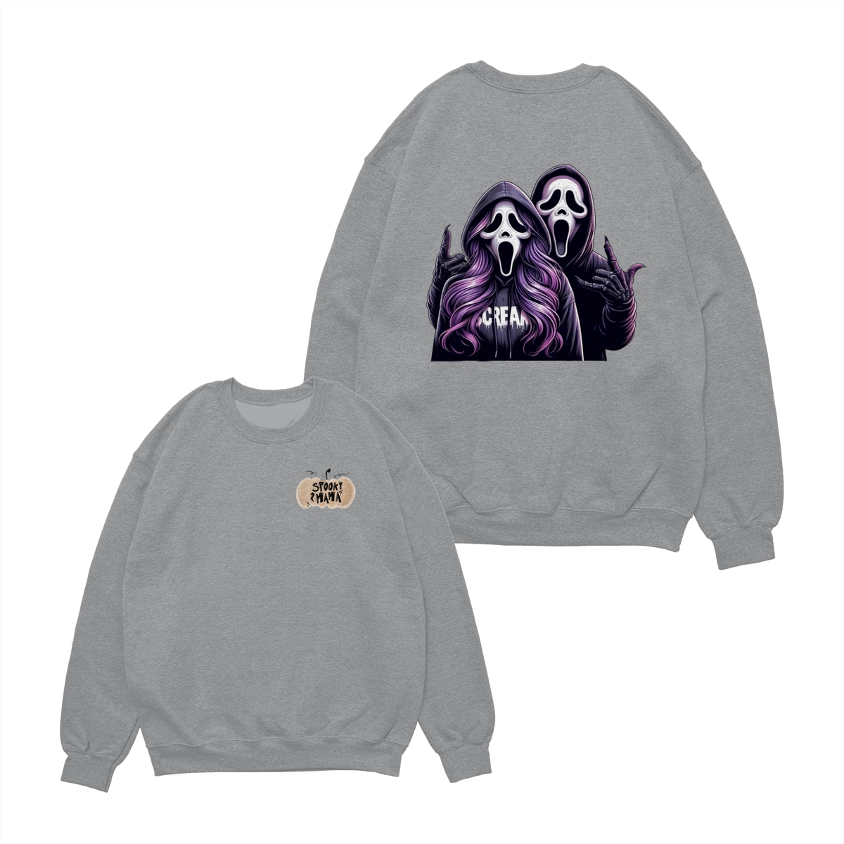Spooky Mama Shirt – Sweatshirt – Hoodie, Funny Halloween Sweatshirt With Two Ghost Faces, Scary Season Coffee Lover Outfit, Fall Hoodie For Moms, Halloween Gift