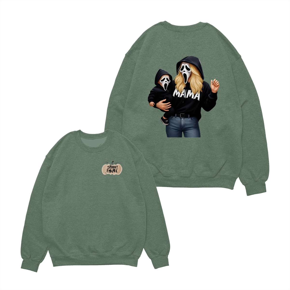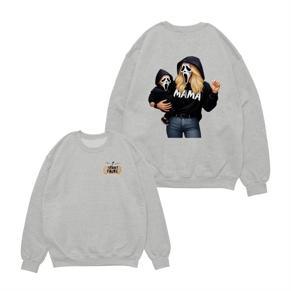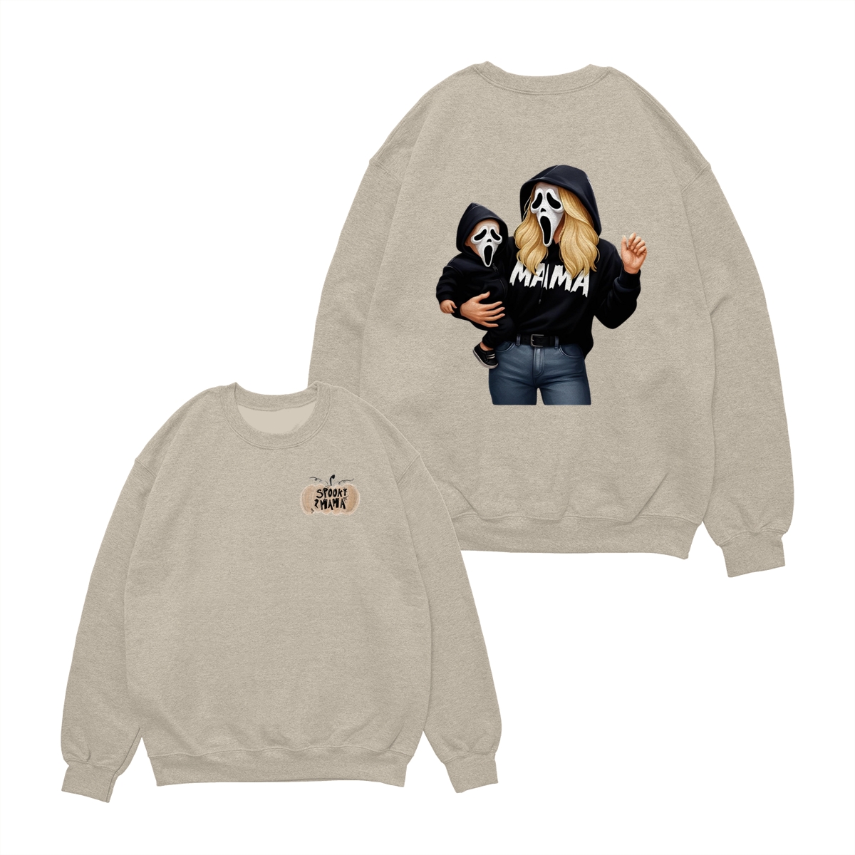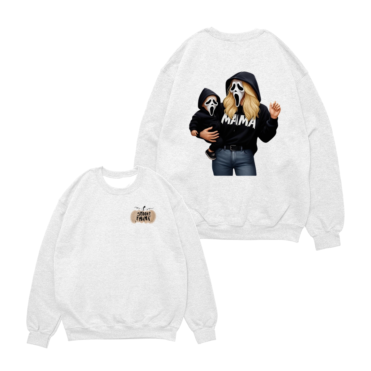Spooky Mama Shirt with Child Ghost Face Design – Fun Halloween Matching Outfit for Mom and Kid, Cozy Fall Sweatshirt, Scary Cute Family Costume