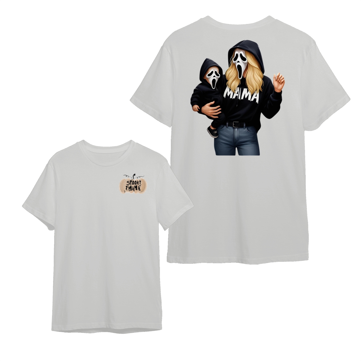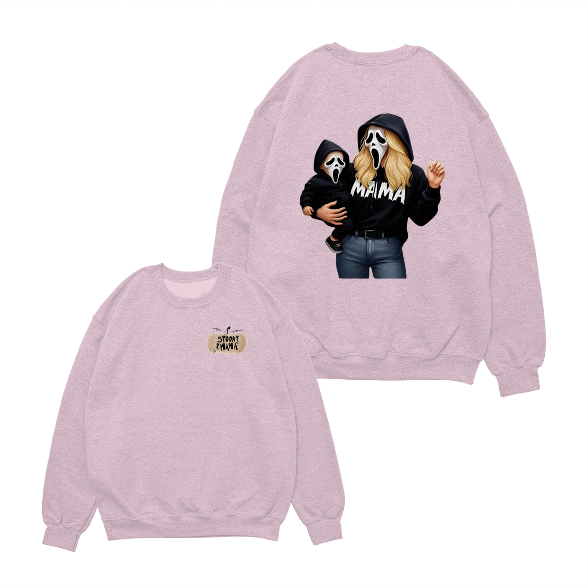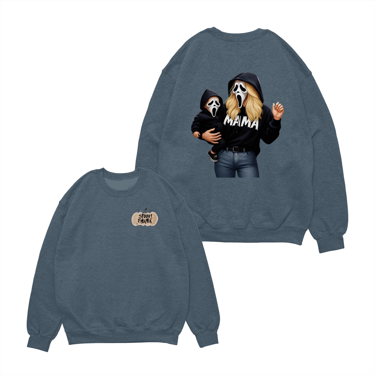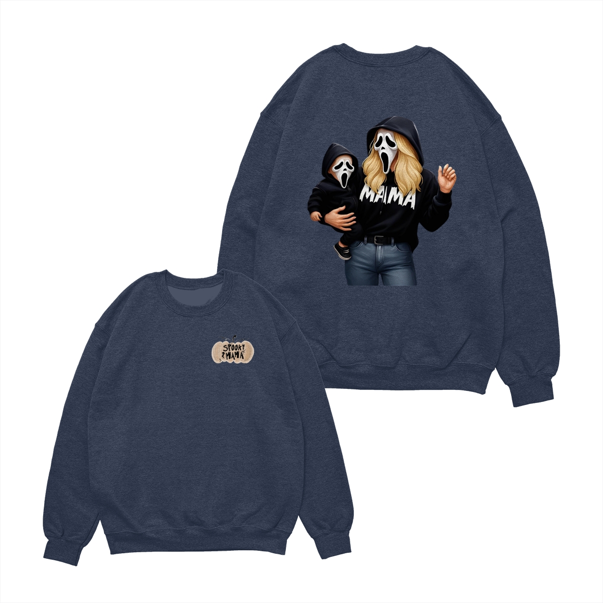 Spooky Mama Shirt with Child Ghost Face Design – Fun Halloween Matching Outfit for Mom and Kid, Cozy Fall Sweatshirt, Scary Cute Family Costume