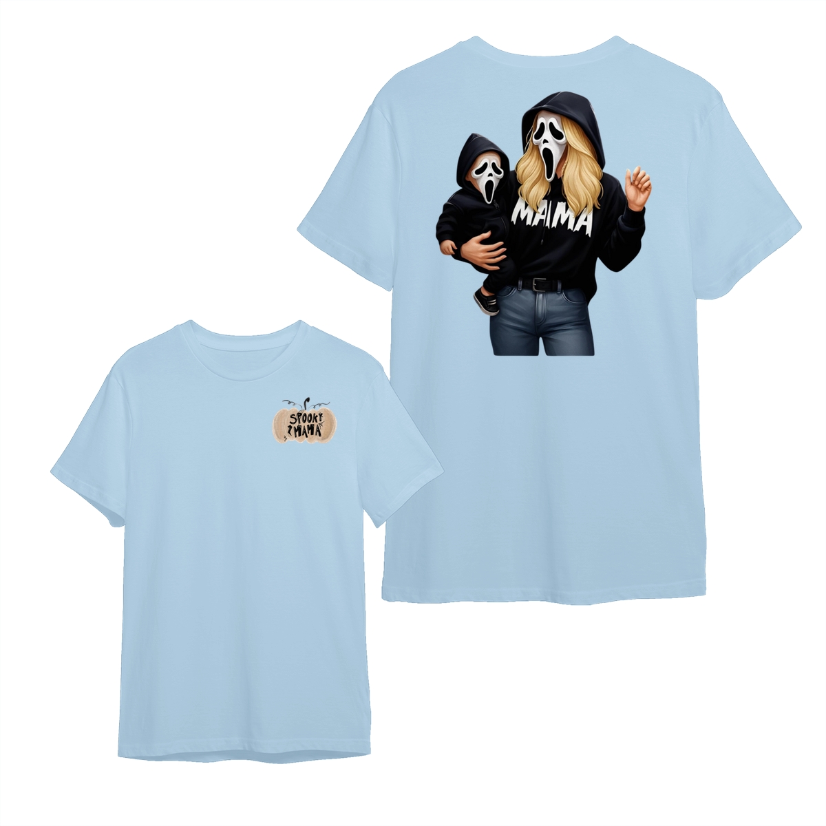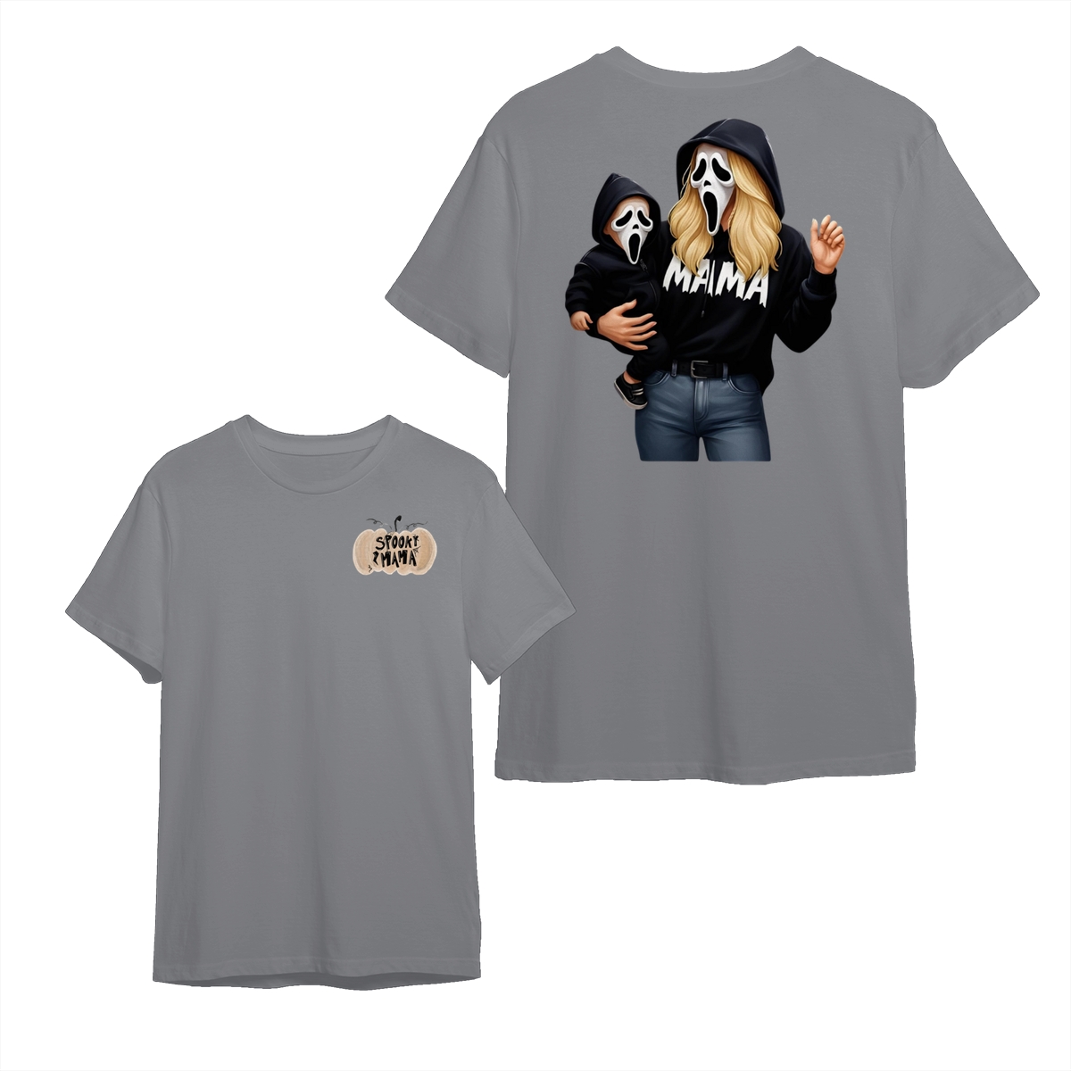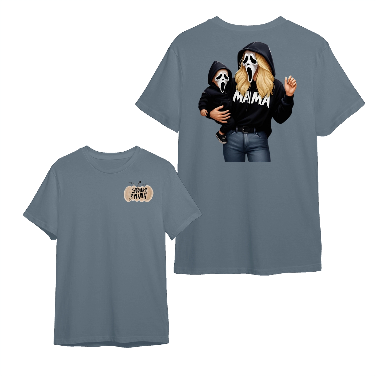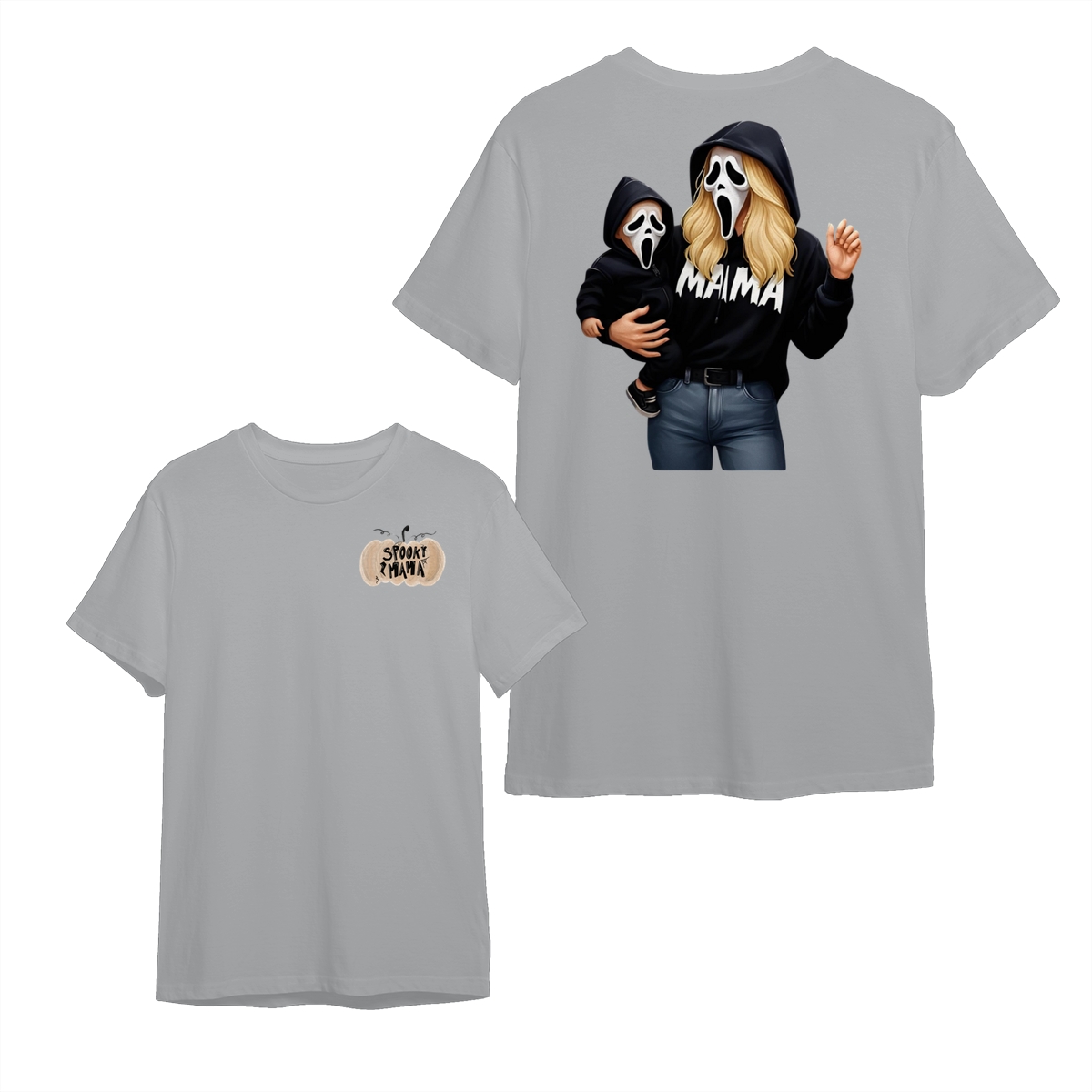 Spooky Mama Shirt with Child Ghost Face Design – Fun Halloween Matching Outfit for Mom and Kid, Cozy Fall Sweatshirt, Scary Cute Family Costume