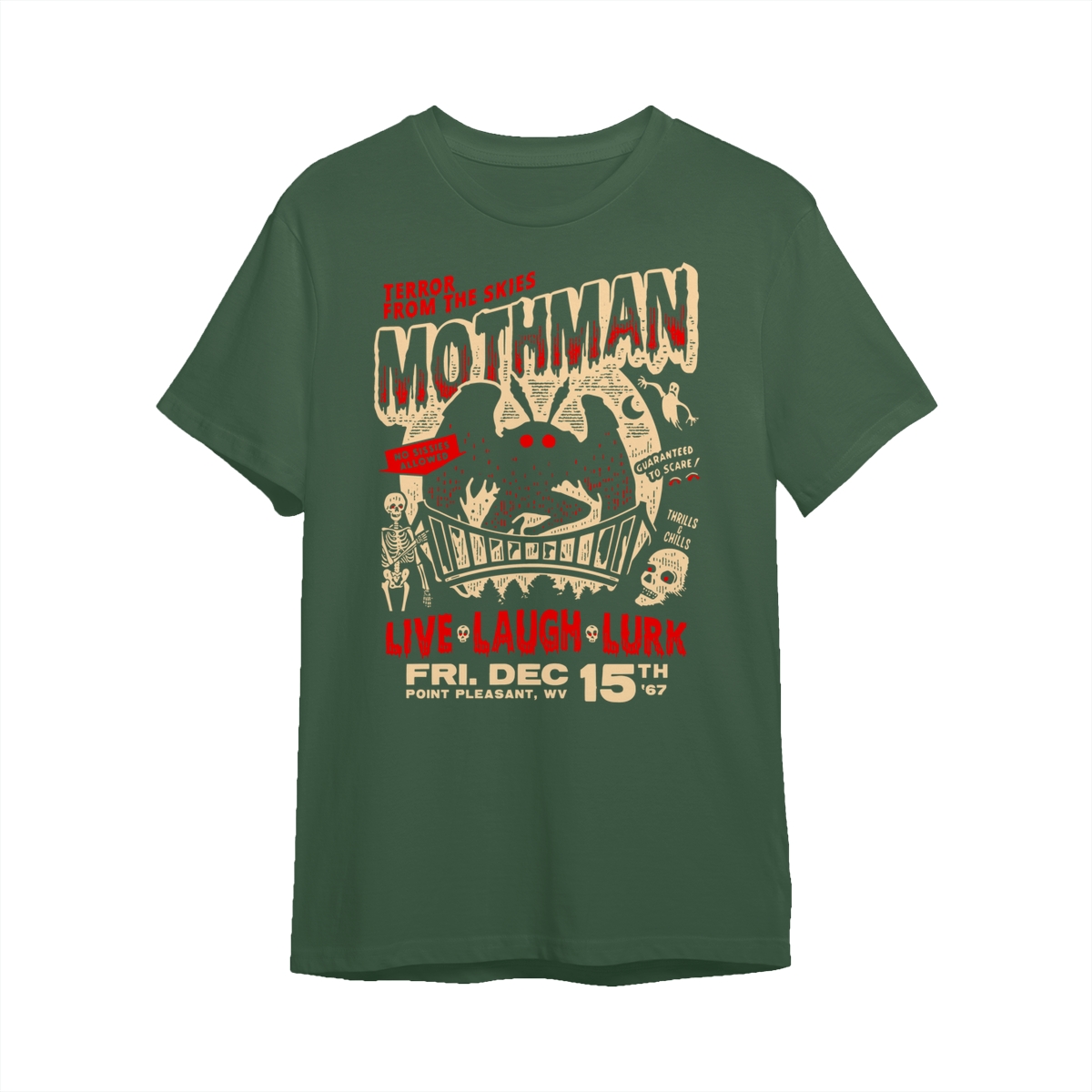 Spooky Mothman Spookshow Tee – Halloween Graphic T-Shirt – Cotton, Classic, Full Color , Full Size ,For Men, Women