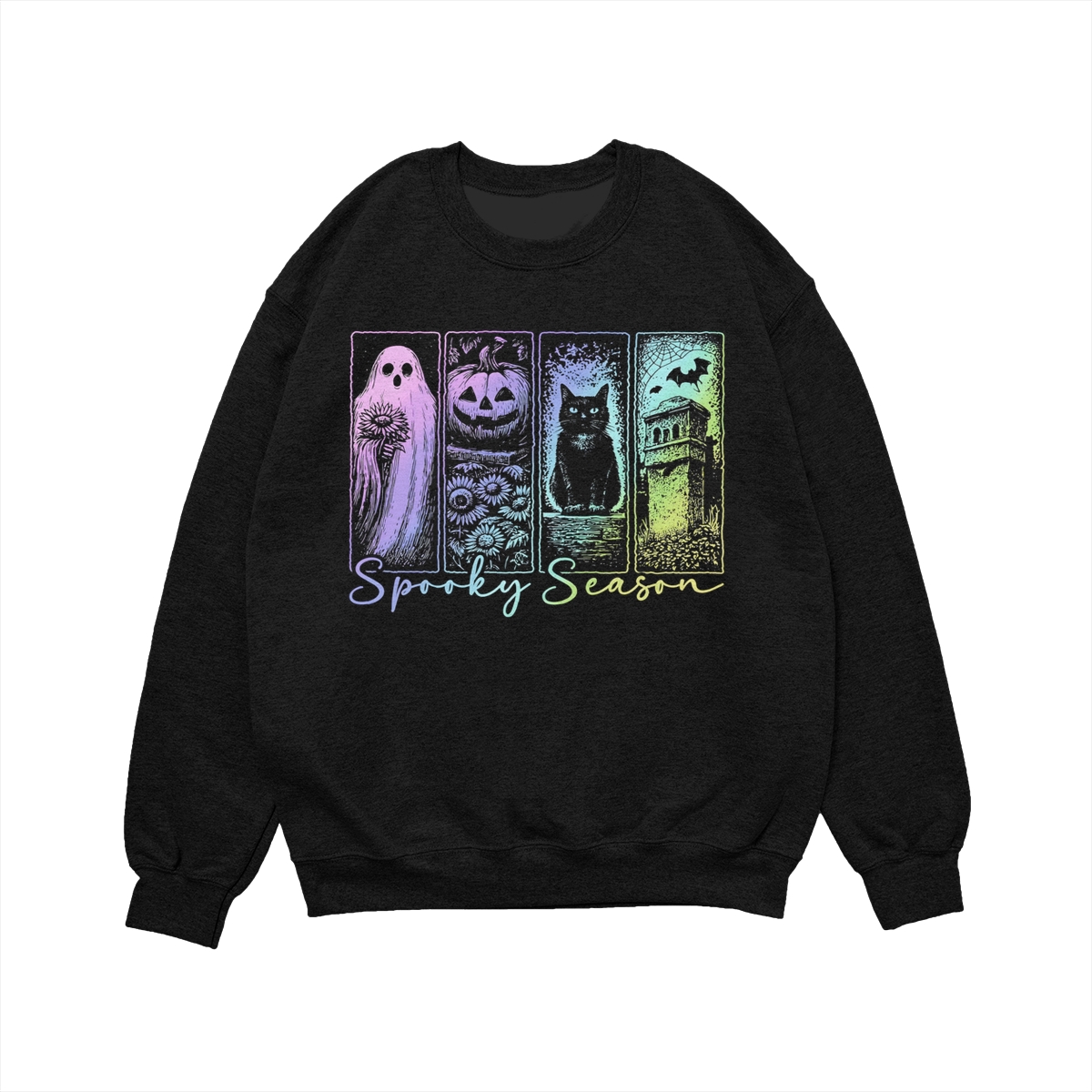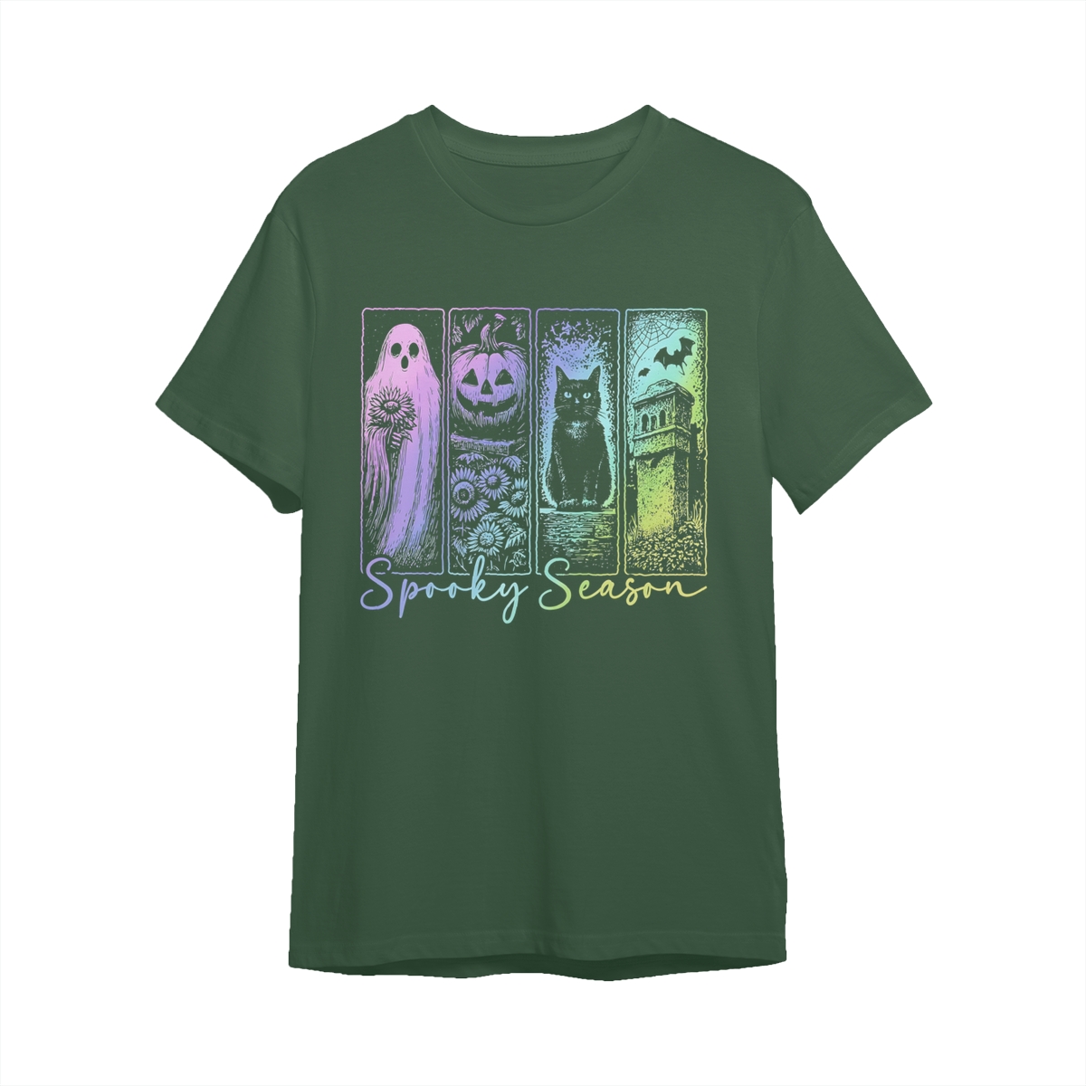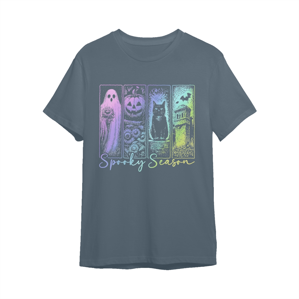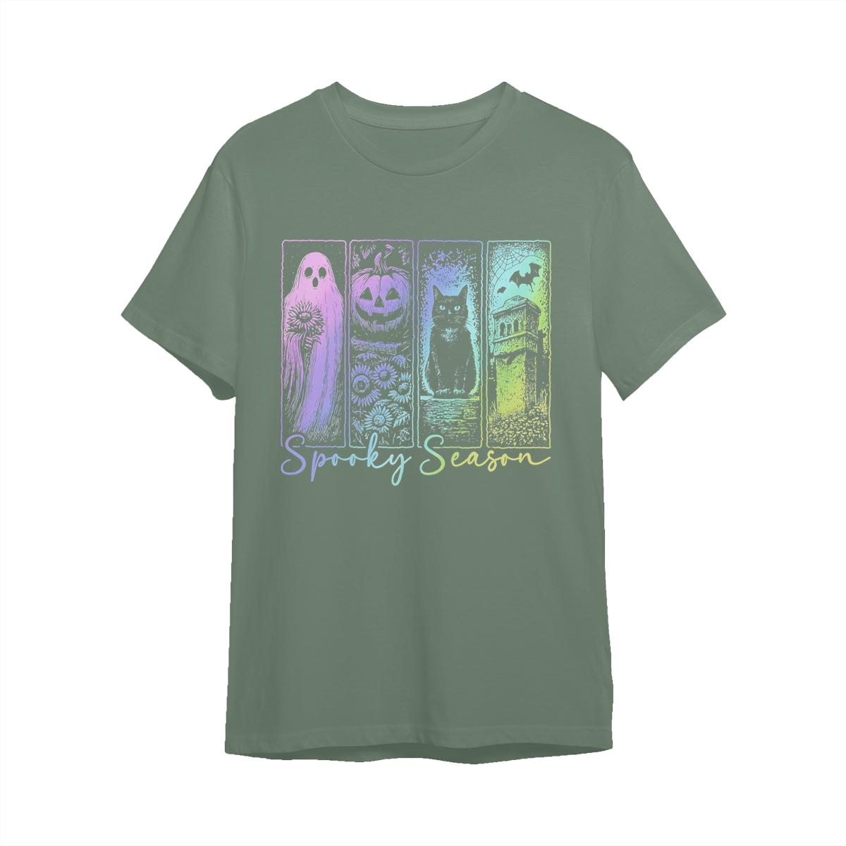 Spooky Season Shirt, Vintage Halloween Gothic Graphic Tee, Black Cat Fall Aesthetic T-Shirt, October Witchcore Gift Idea Casual Cotton