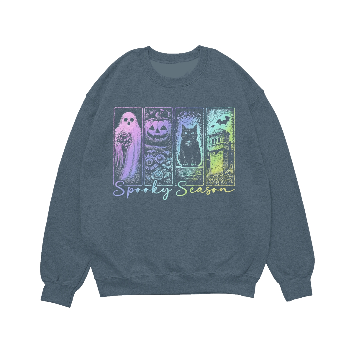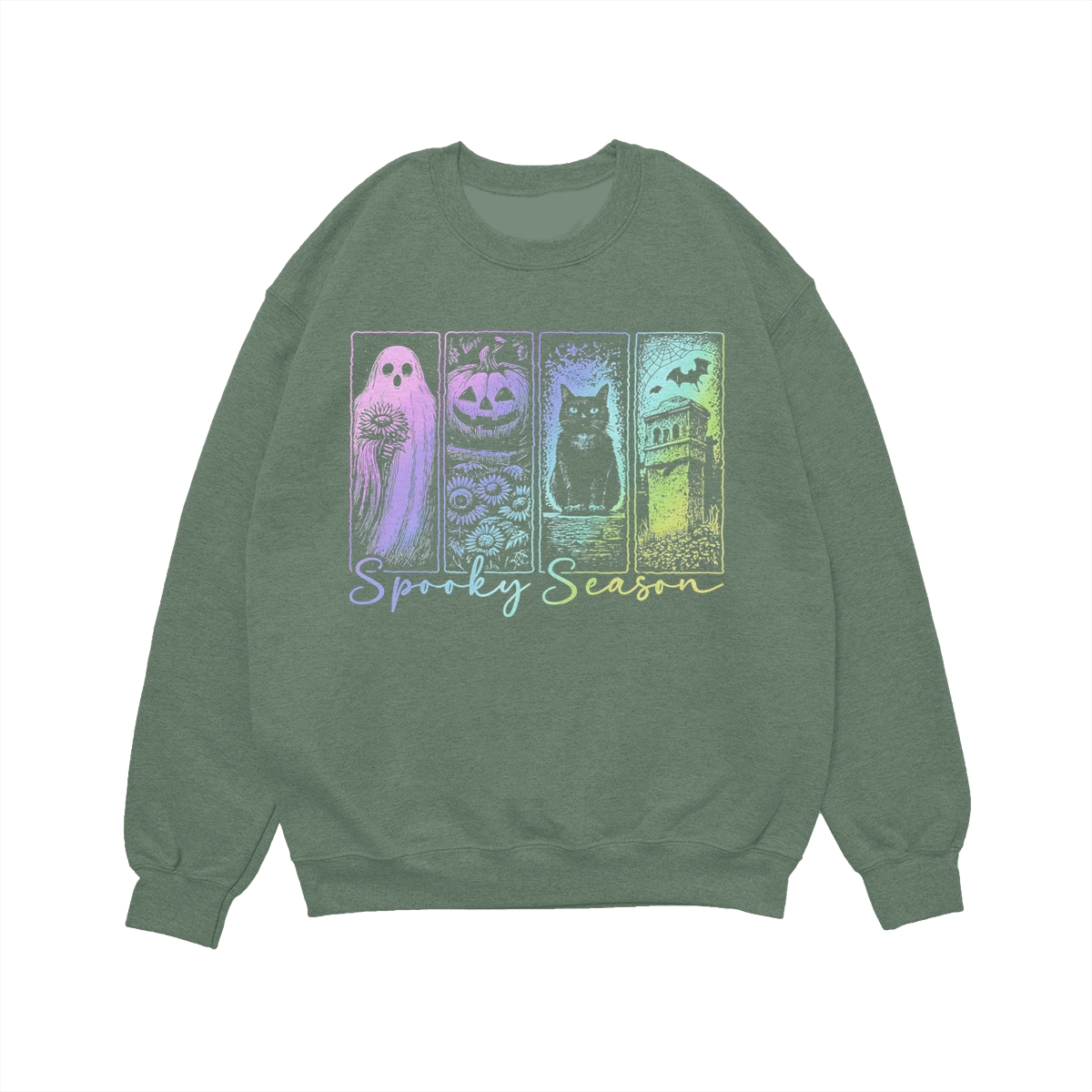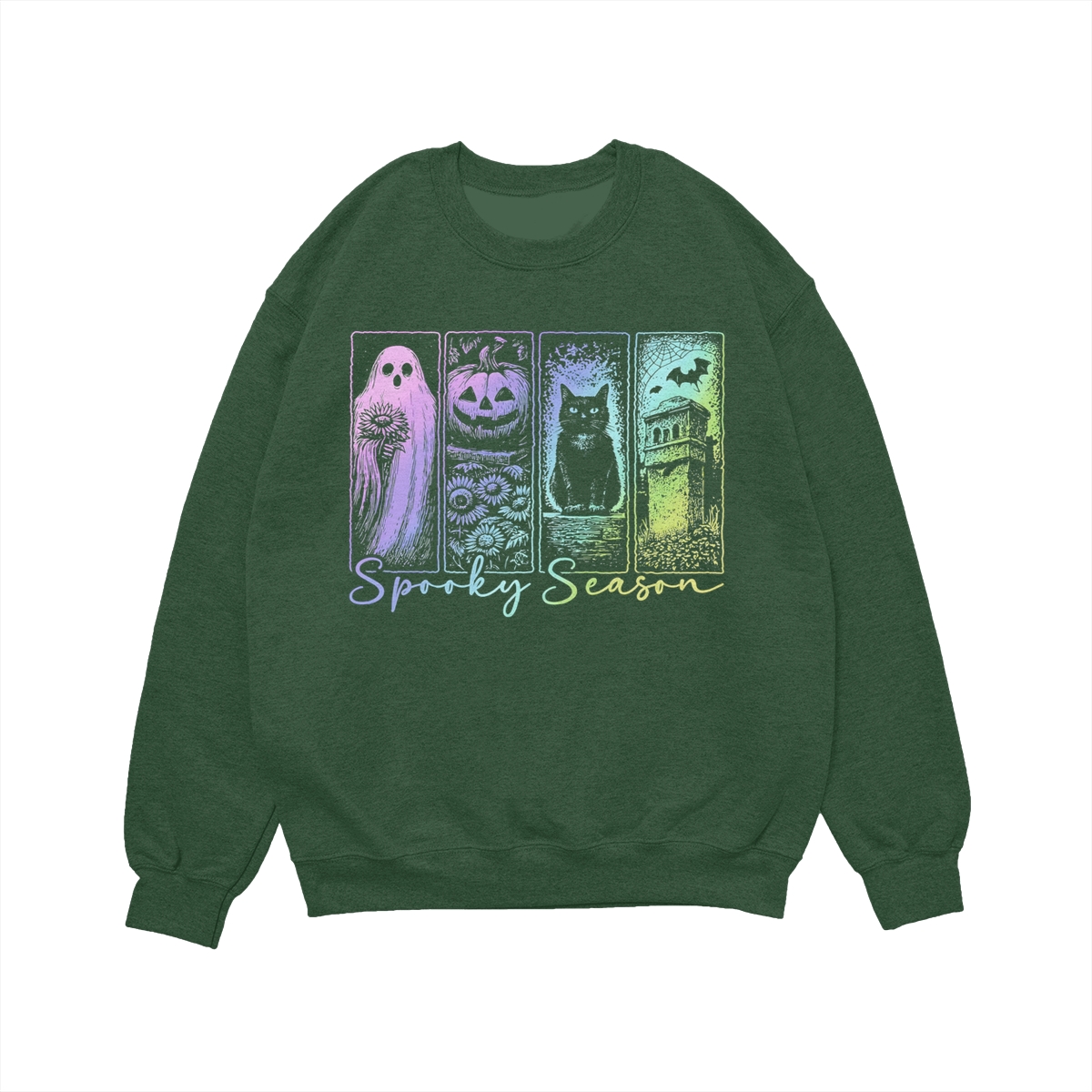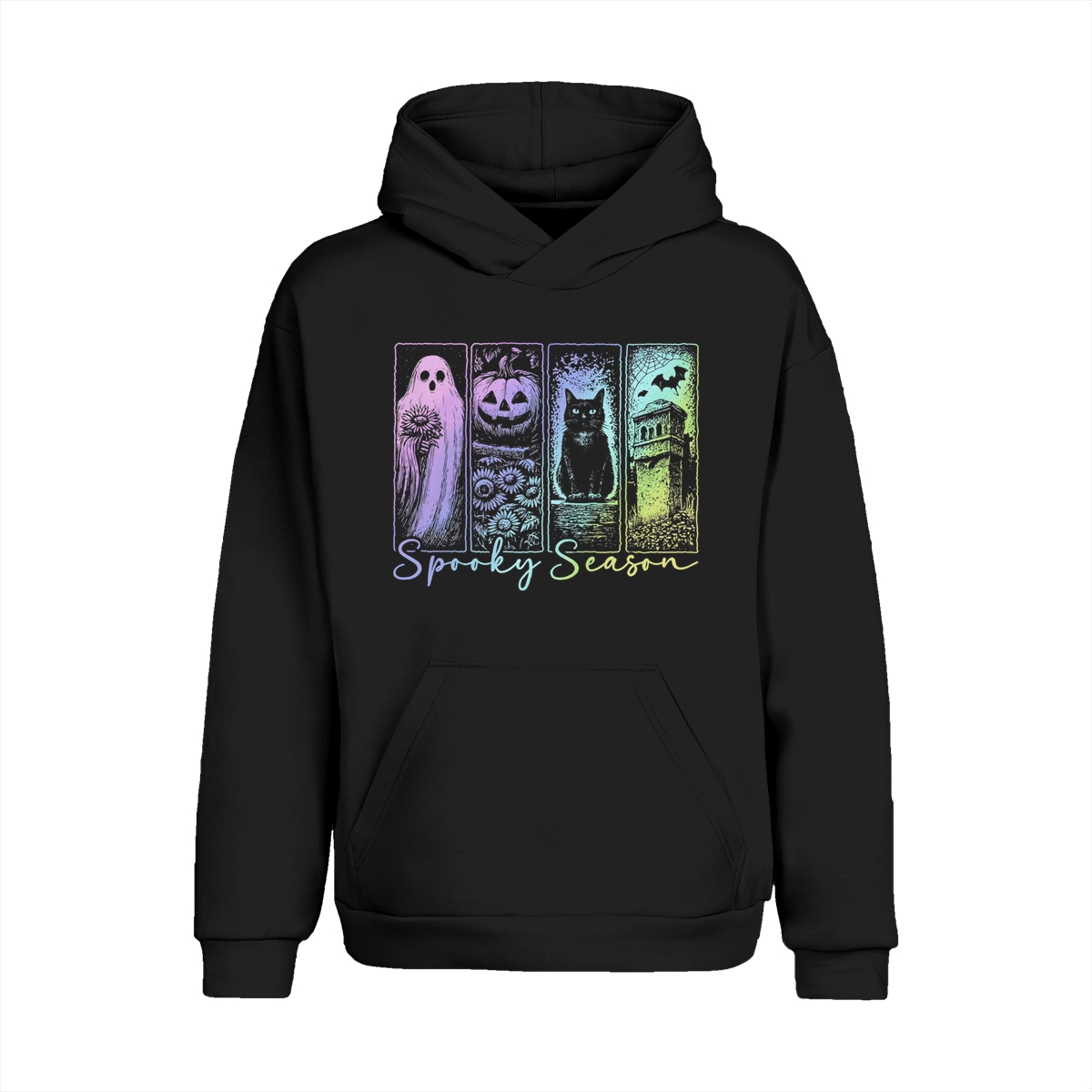 Spooky Season Shirt, Vintage Halloween Gothic Graphic Tee, Black Cat Fall Aesthetic T-Shirt, October Witchcore Gift Idea Casual Cotton