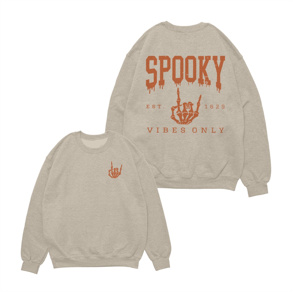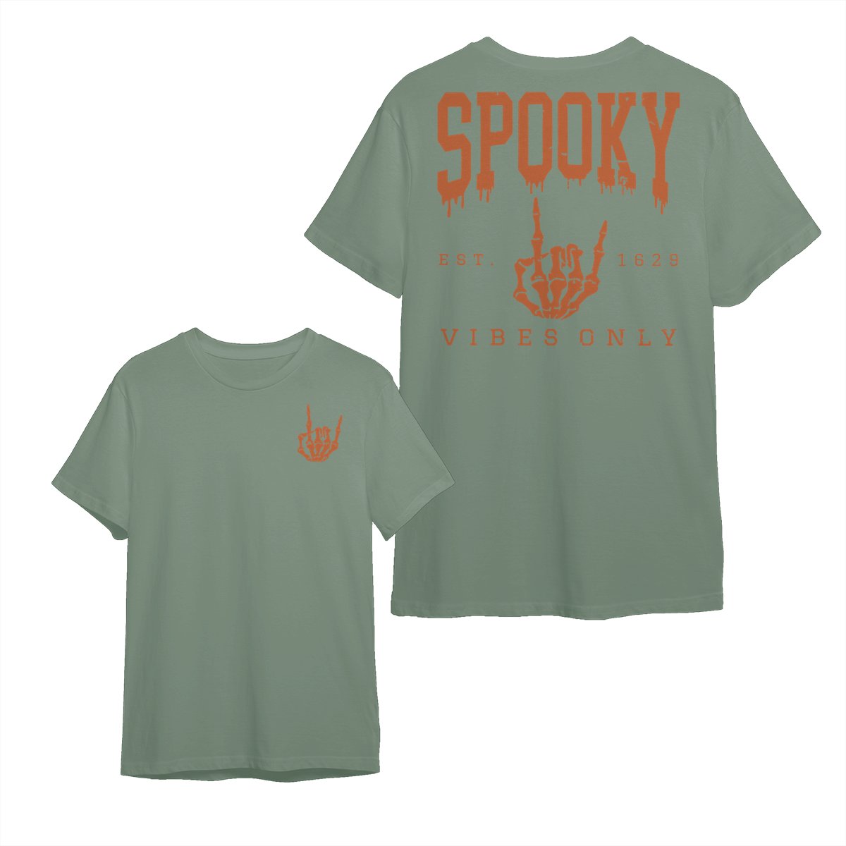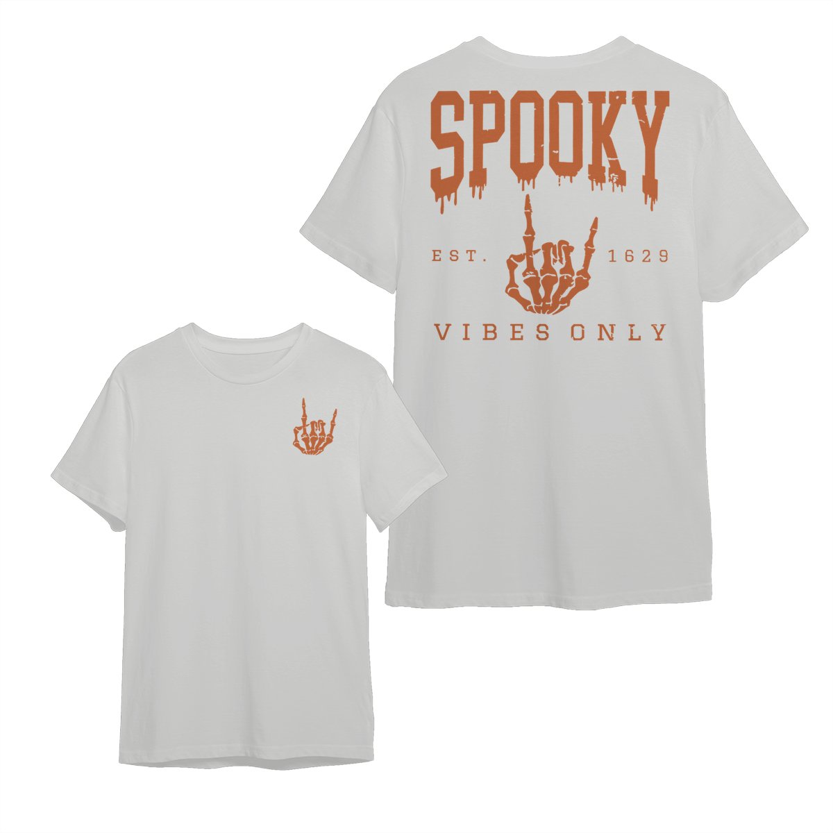 Spooky Vibes Only 2 Sides T-Shirt, Skeleton Hand Halloween Graphic, Cozy Unisex Pullover, Autumn Streetwear, Menswear
