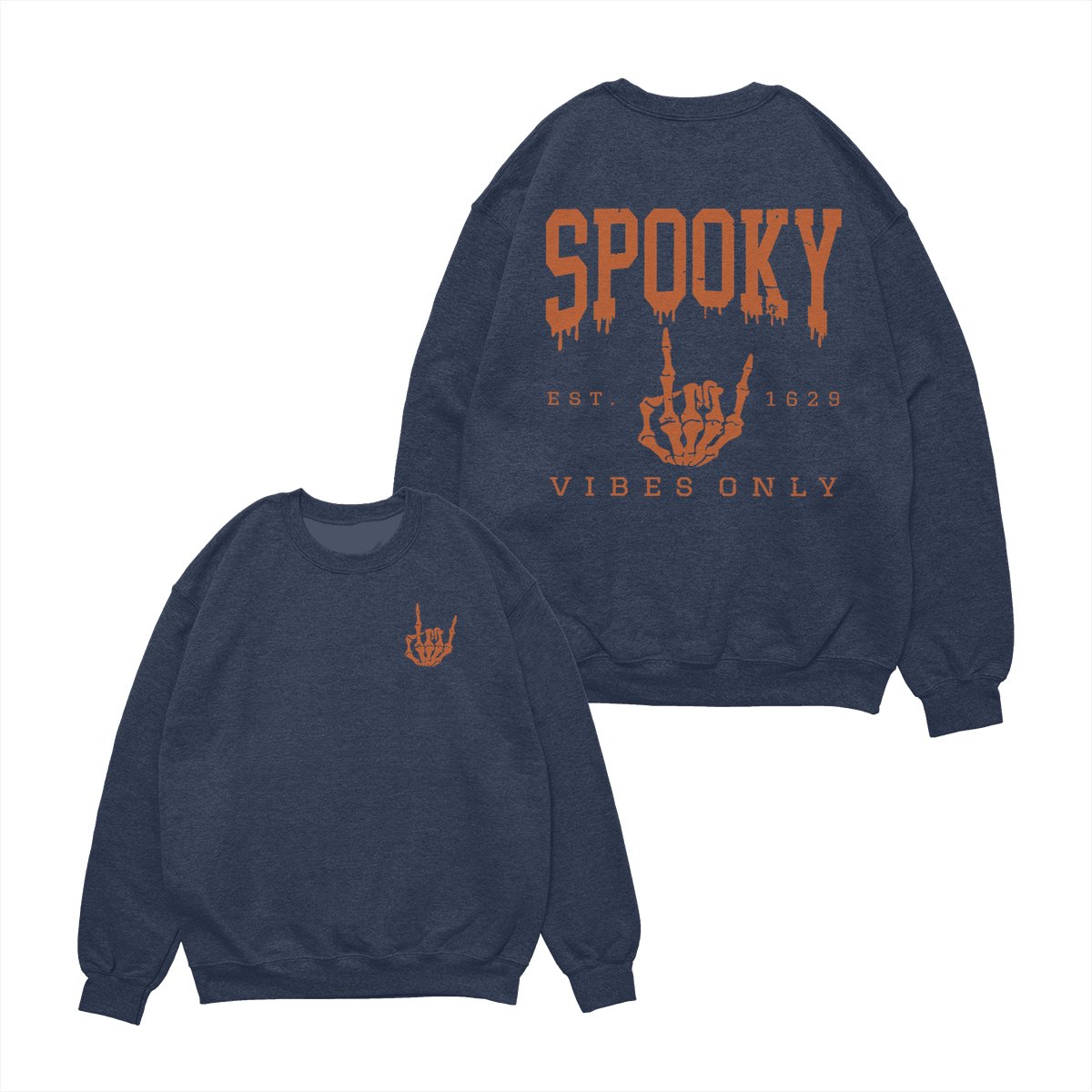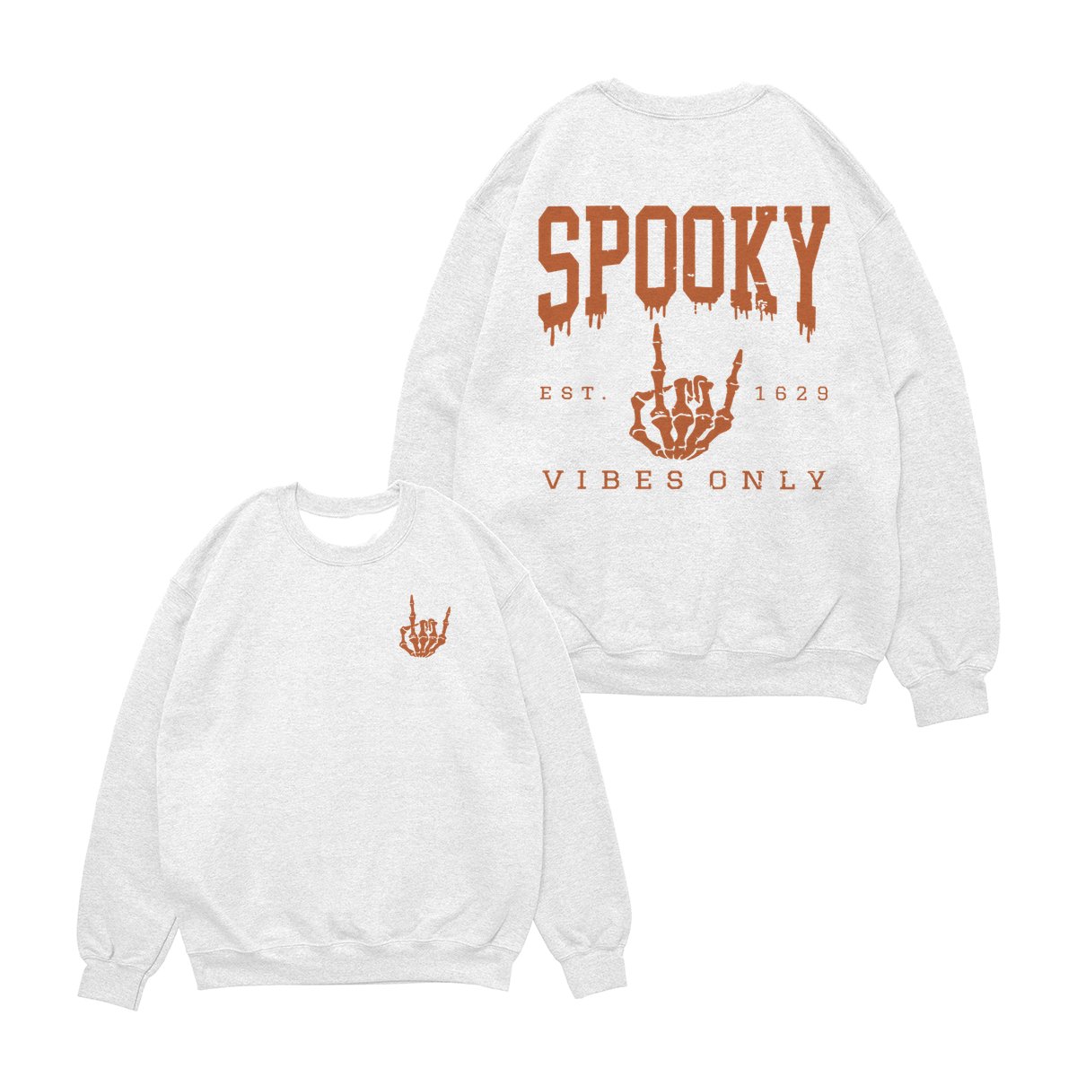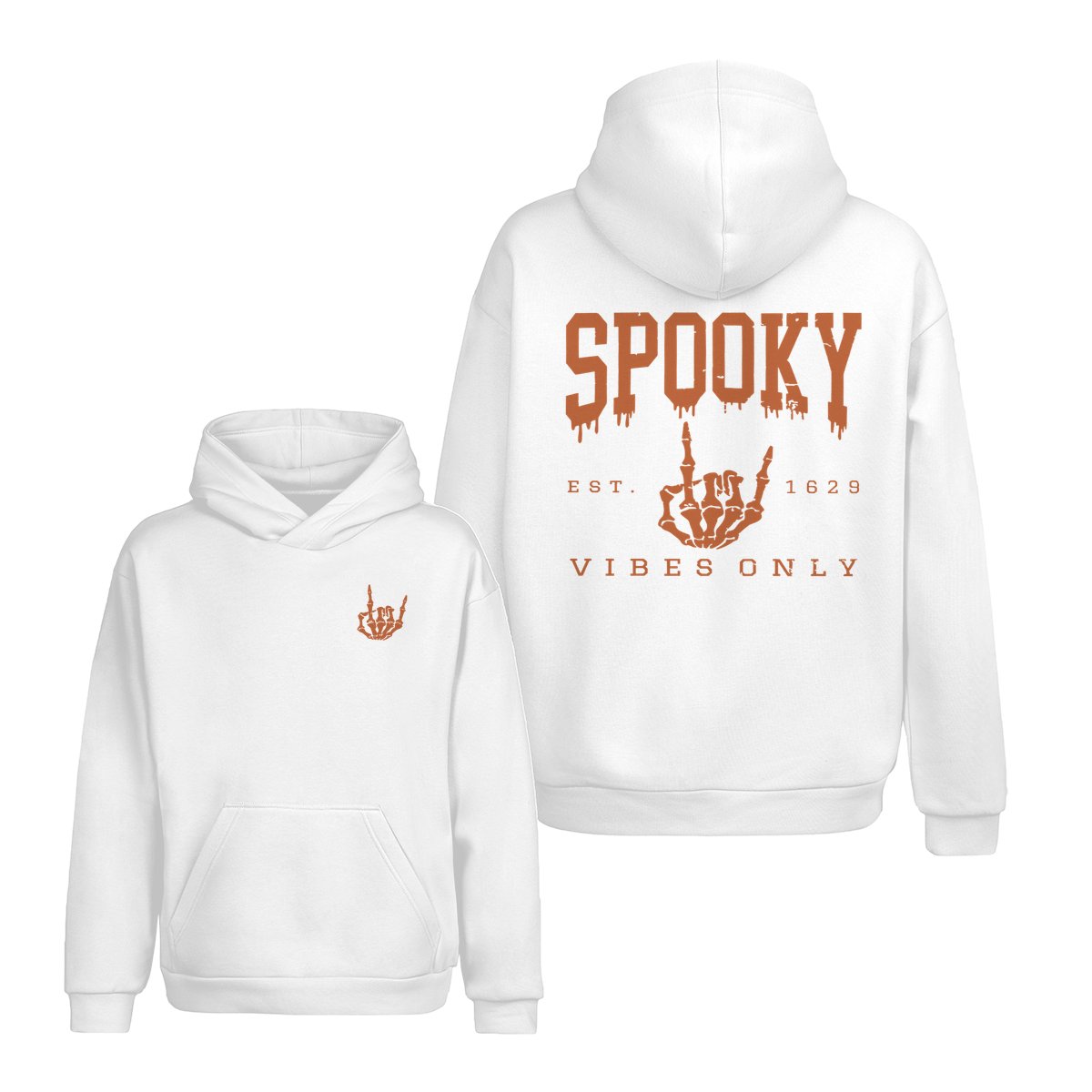 Spooky Vibes Only 2 Sides T-Shirt, Skeleton Hand Halloween Graphic, Cozy Unisex Pullover, Autumn Streetwear, Menswear
