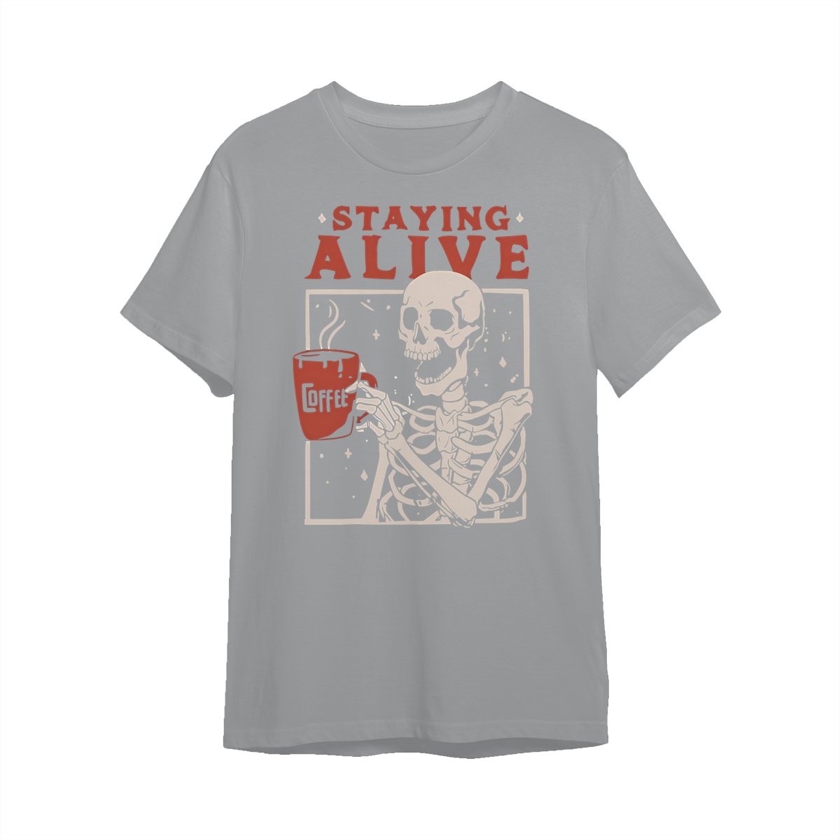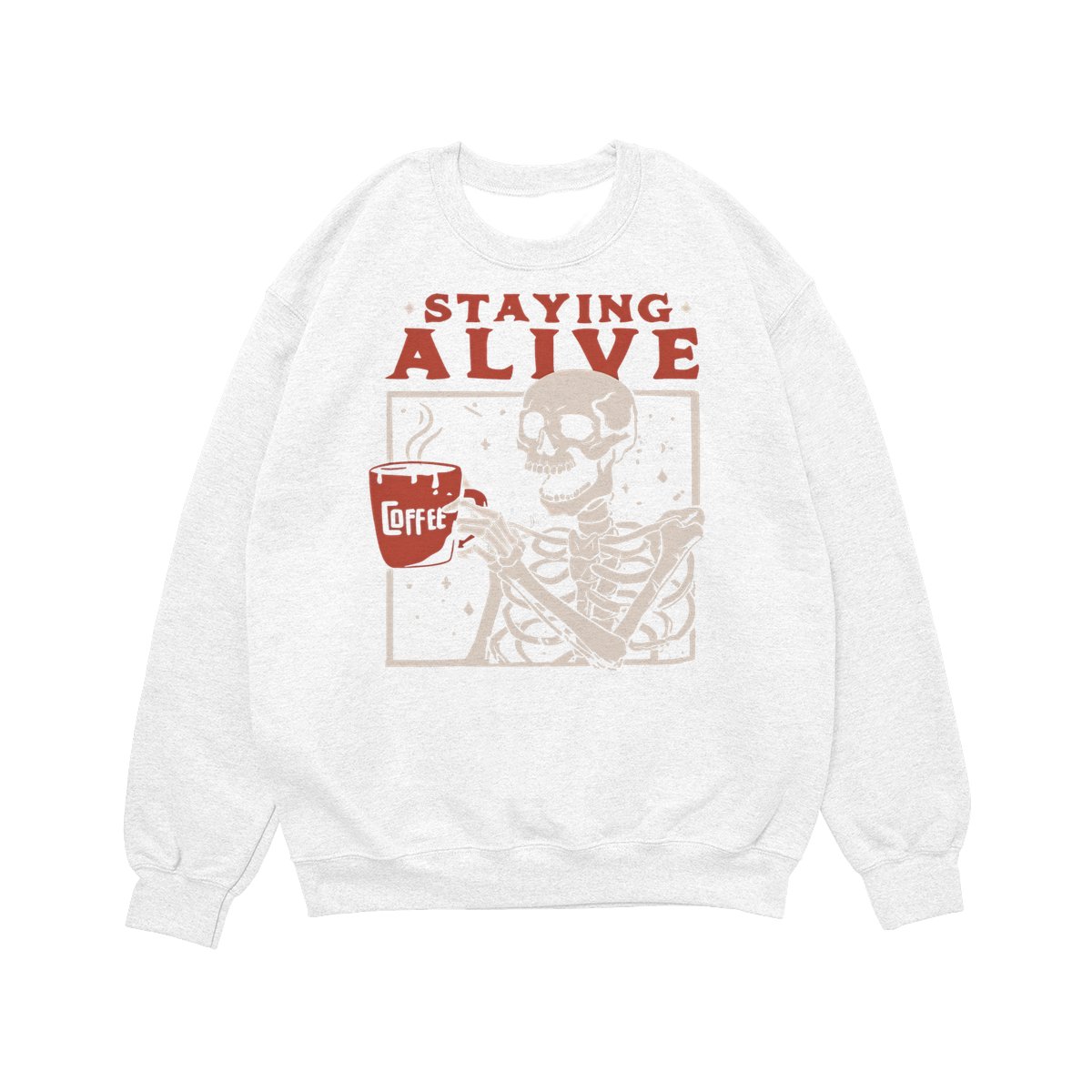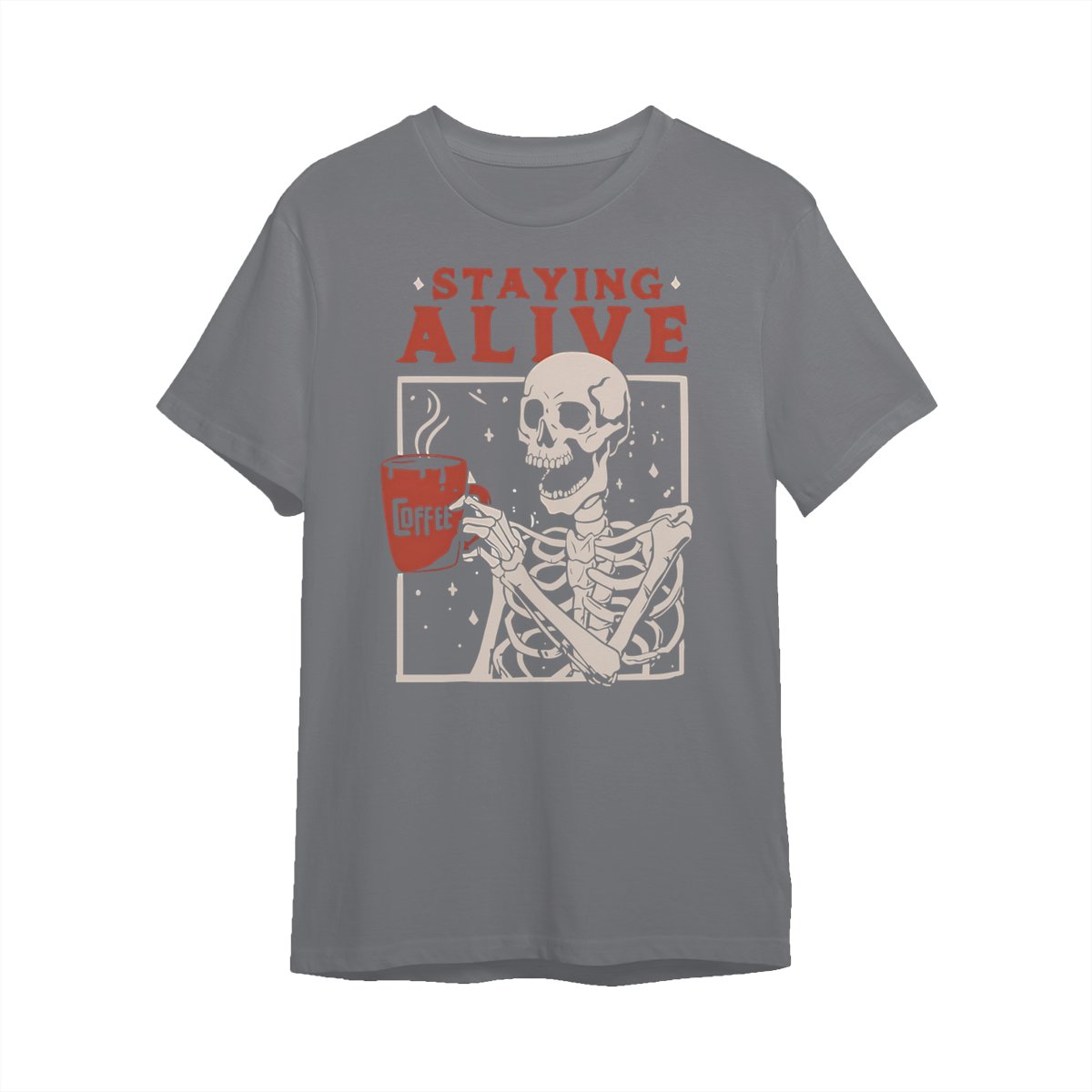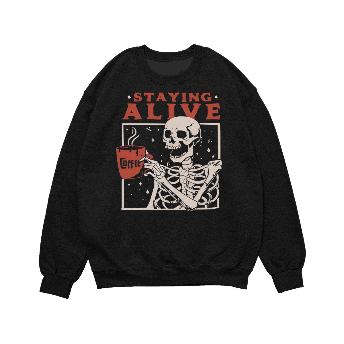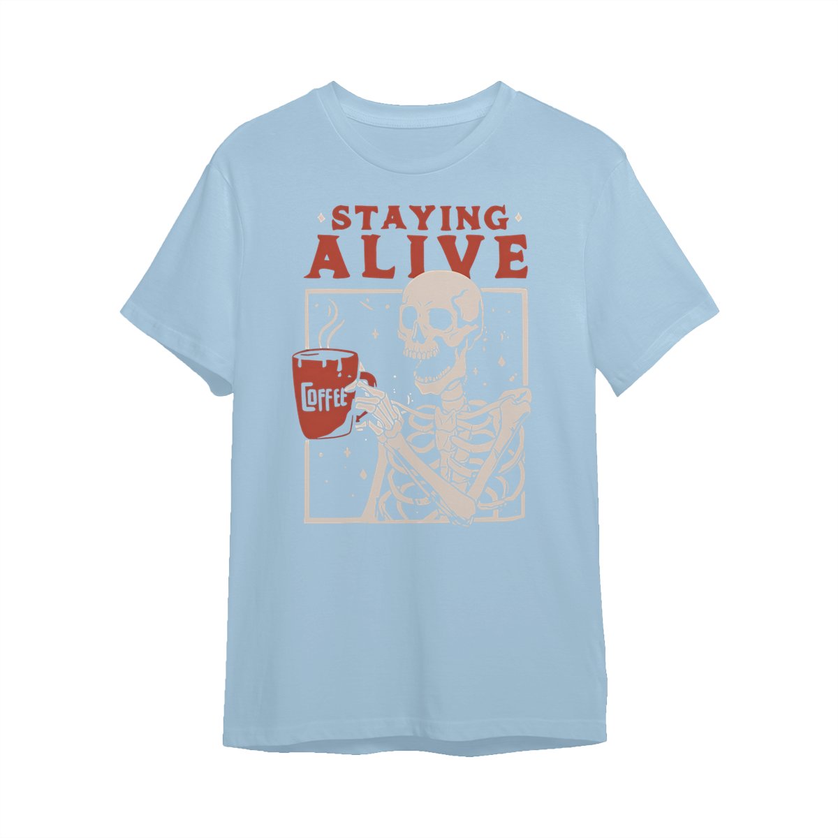 Staying Alive Shirt, Trendy Coffee Shirt, Funny Skeleton T-Shirt, Coffee Lovers Gift Skull Halloween Tshirt Women Comfort Sweatshirt Cotton T Shirt Tee Comfy