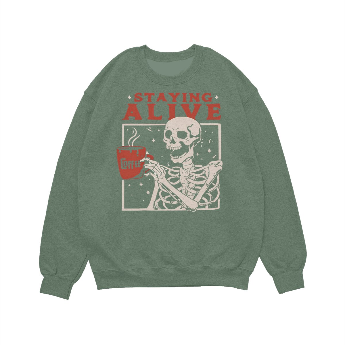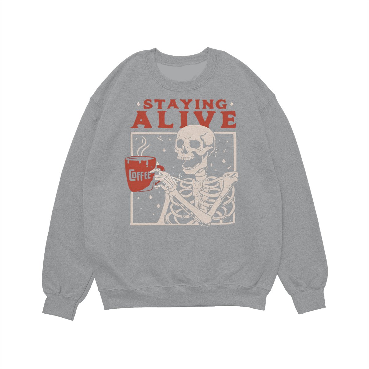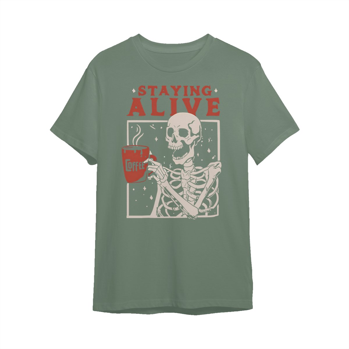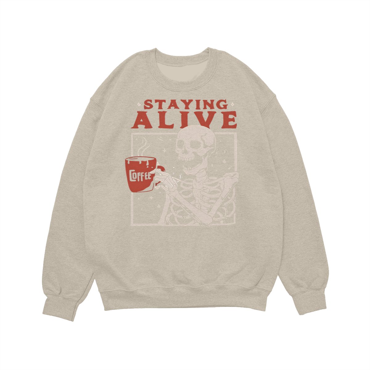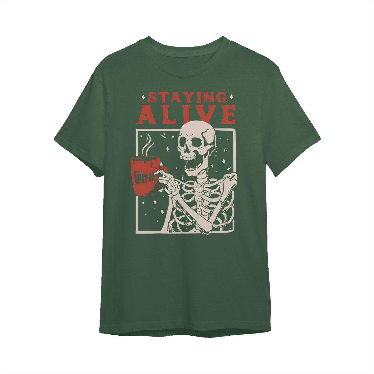 Staying Alive Shirt, Trendy Coffee Shirt, Funny Skeleton T-Shirt, Coffee Lovers Gift Skull Halloween Tshirt Women Comfort Sweatshirt Cotton T Shirt Tee Comfy