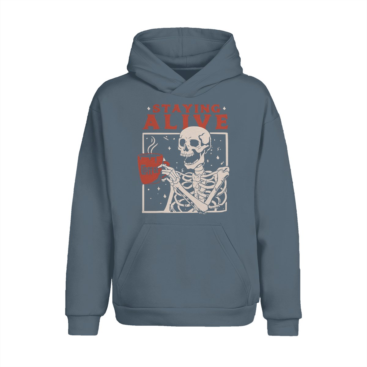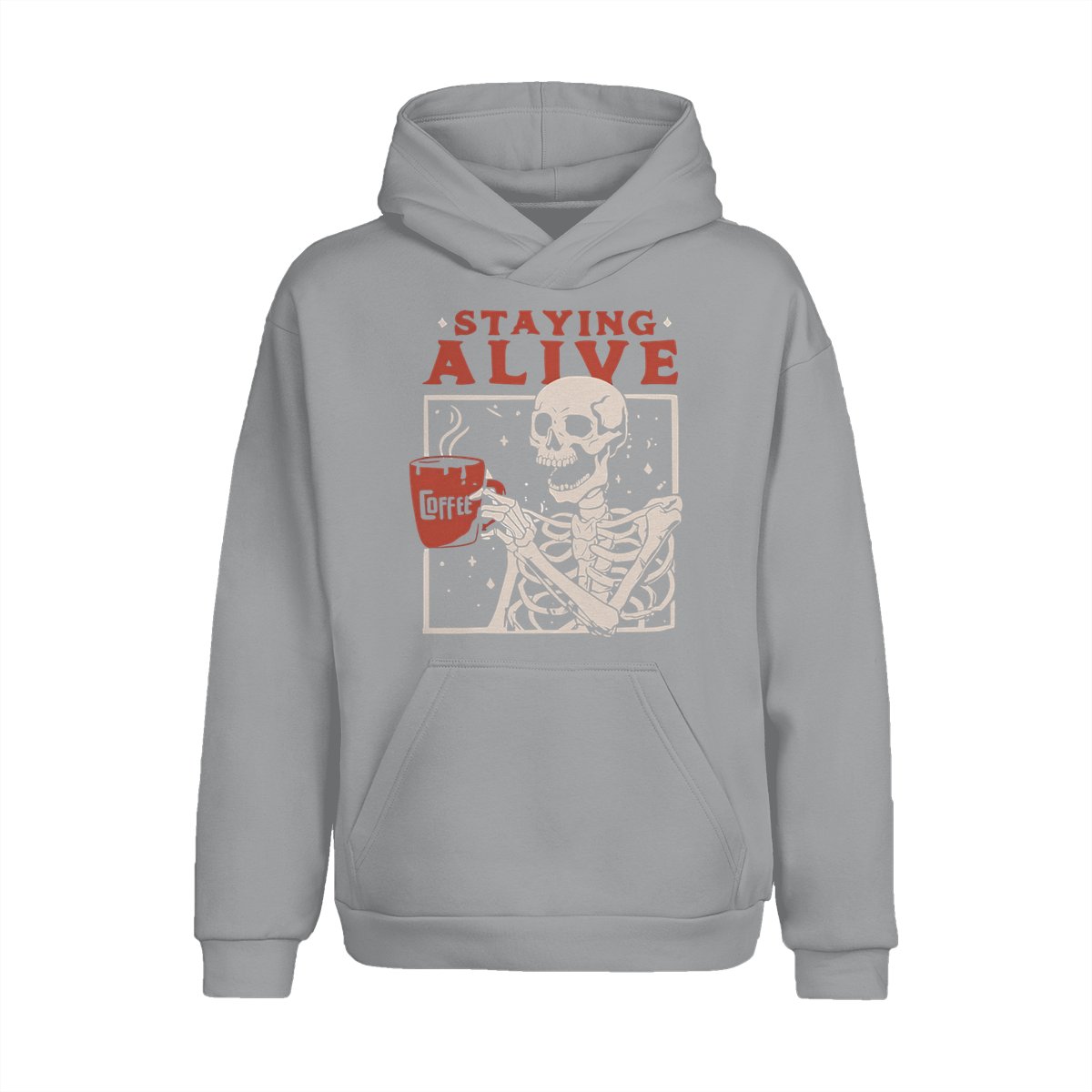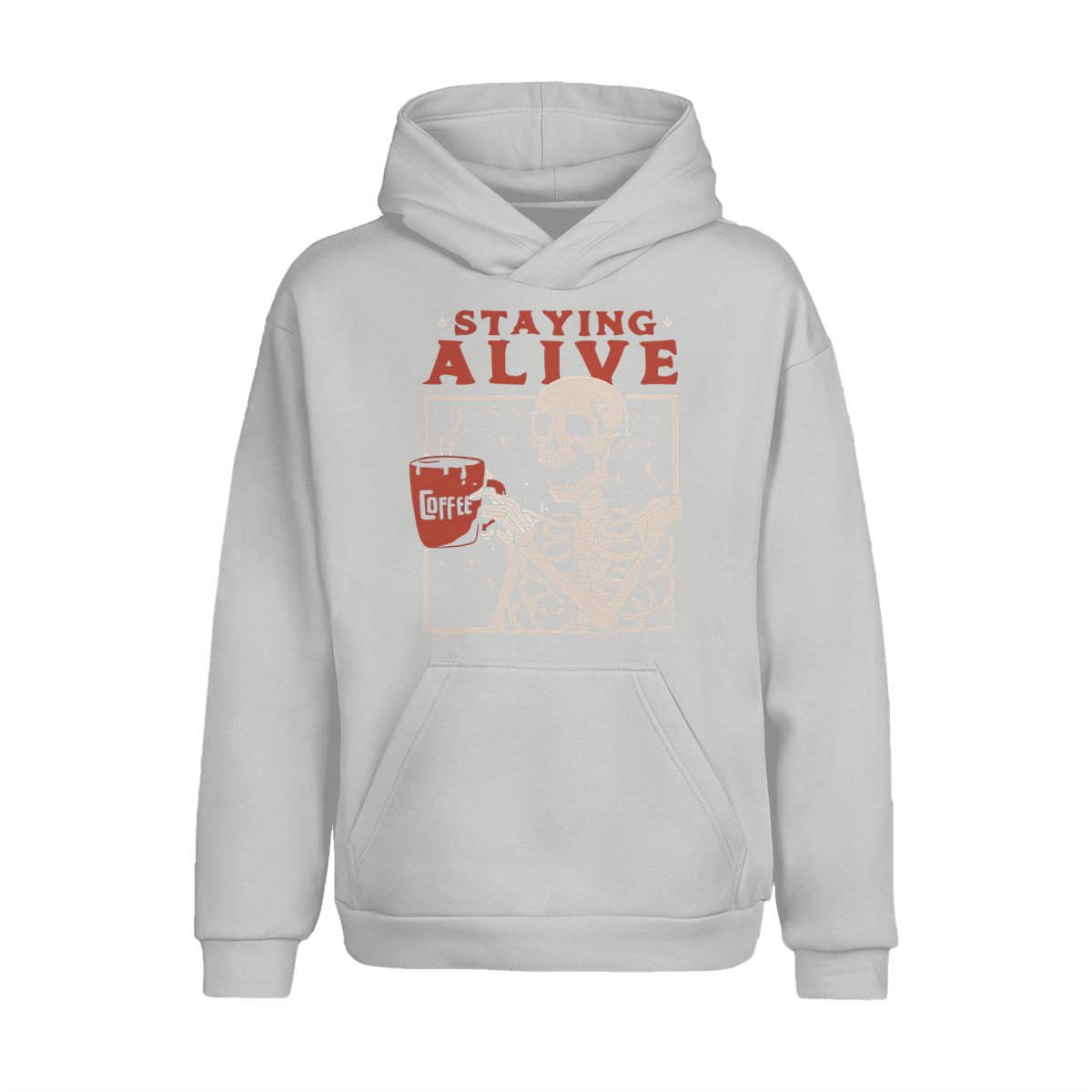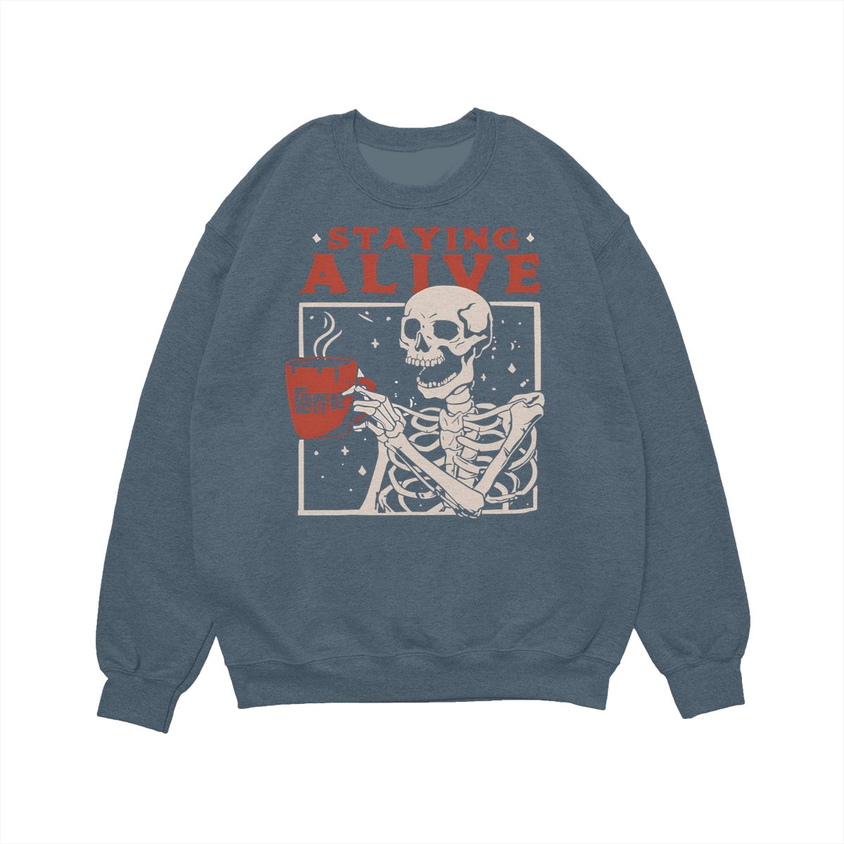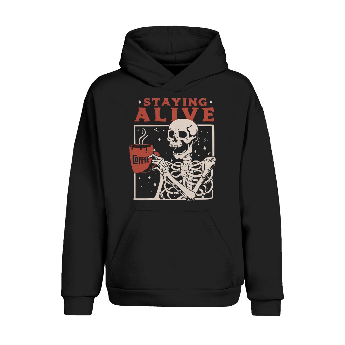 Staying Alive Shirt, Trendy Coffee Shirt, Funny Skeleton T-Shirt, Coffee Lovers Gift Skull Halloween Tshirt Women Comfort Sweatshirt Cotton T Shirt Tee Comfy