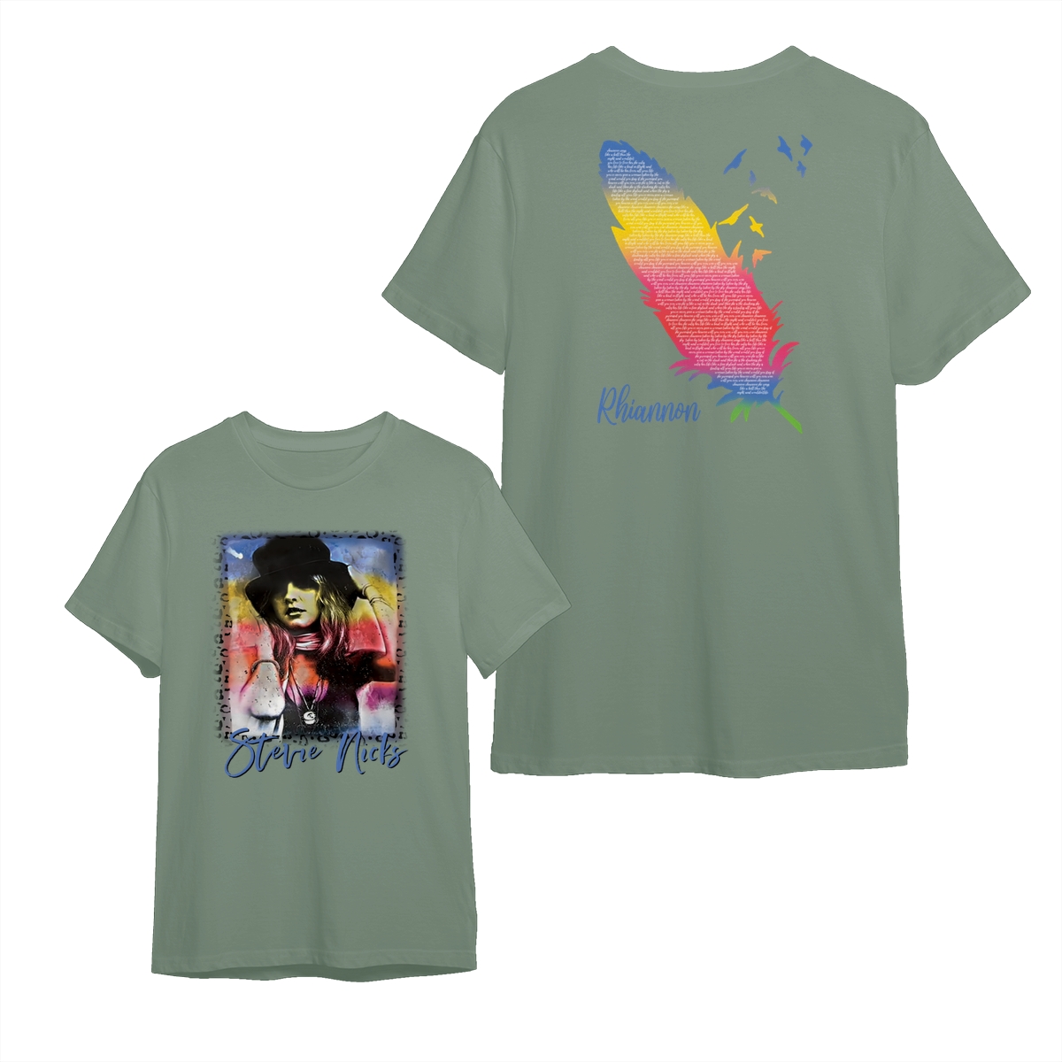 Stevie Nicks Rhiannon Vibrant Feather Lyrics Print Double-sided – Vintage Rock Lyrics Shirt, Music Tribute Outfit, T-Shirt, Sweatshirt & Hoodie