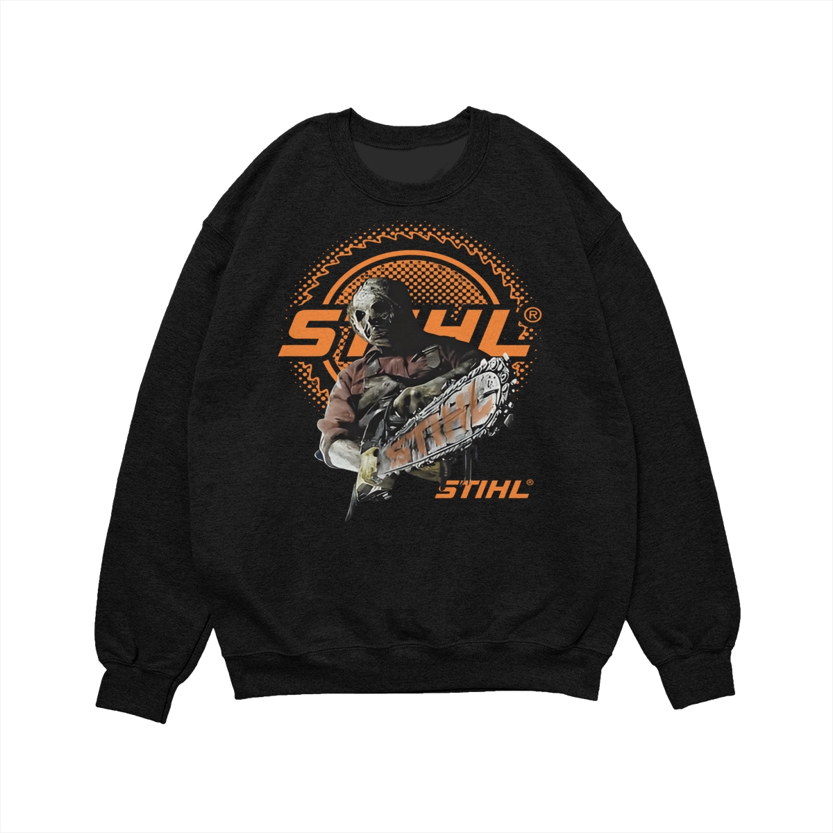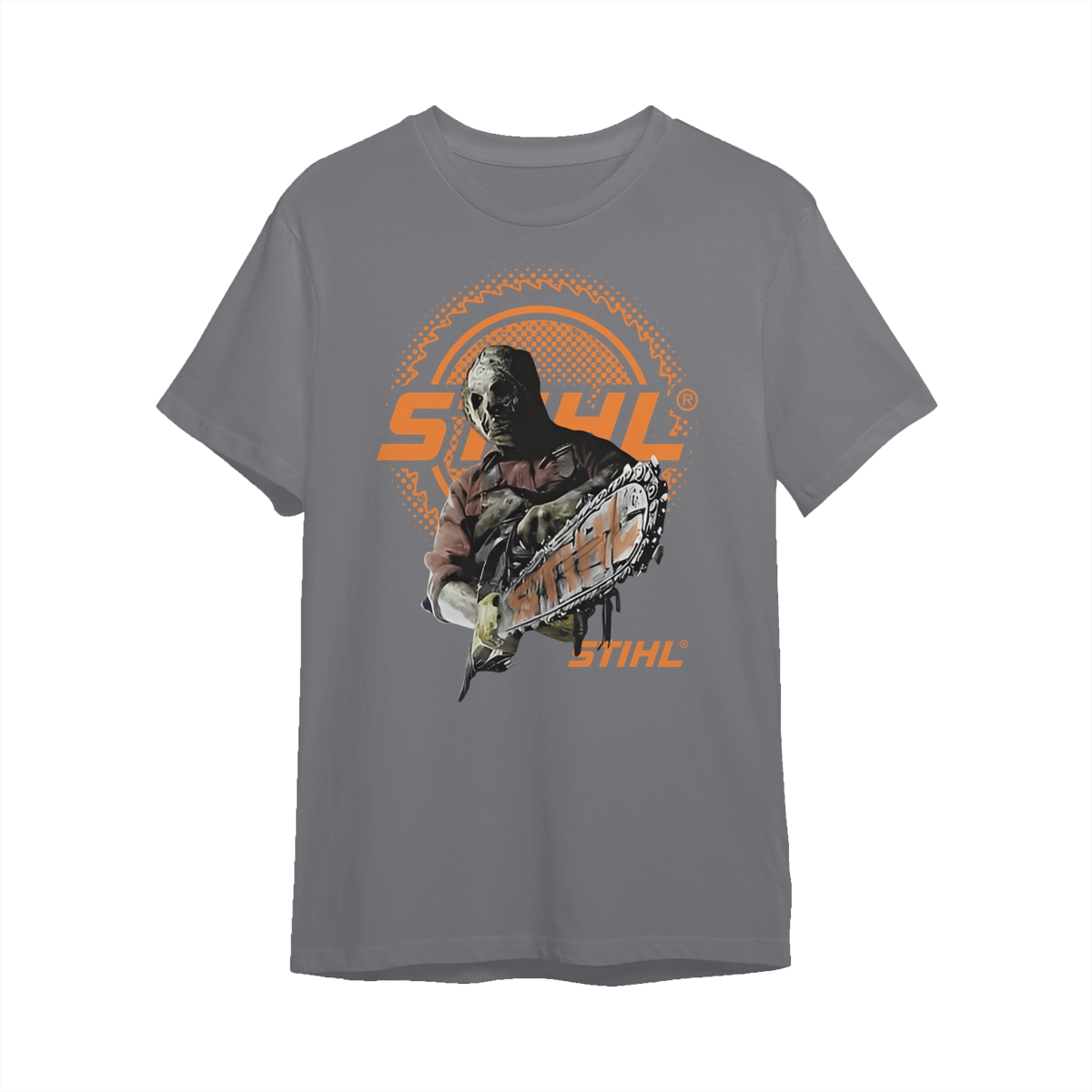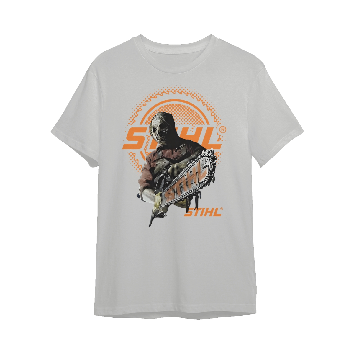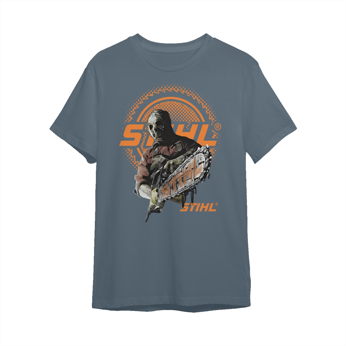 STIHL Leatherface T-Shirt – Sweatshirt – Hoodie, Streetwear – Horror Chainsaw Parody Tee, Bold Orange Saw Blade Logo, Funny Graphic for Tool Fans & Scary Movie Lovers